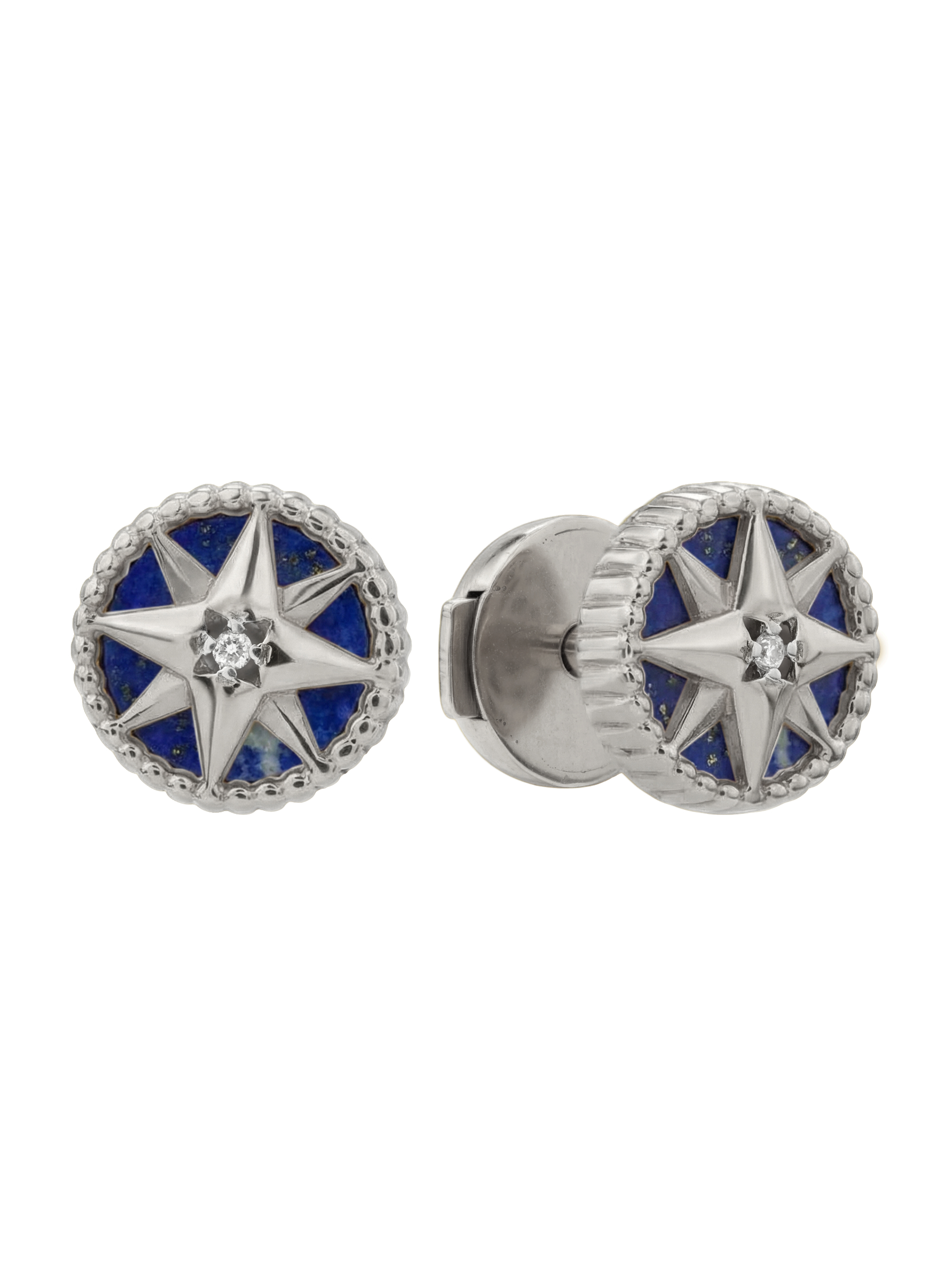 Серьги из белого золота 585 пробы c бриллиантами и лазуритом