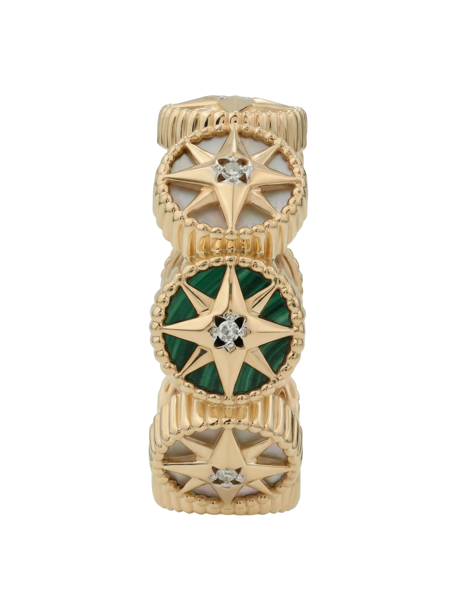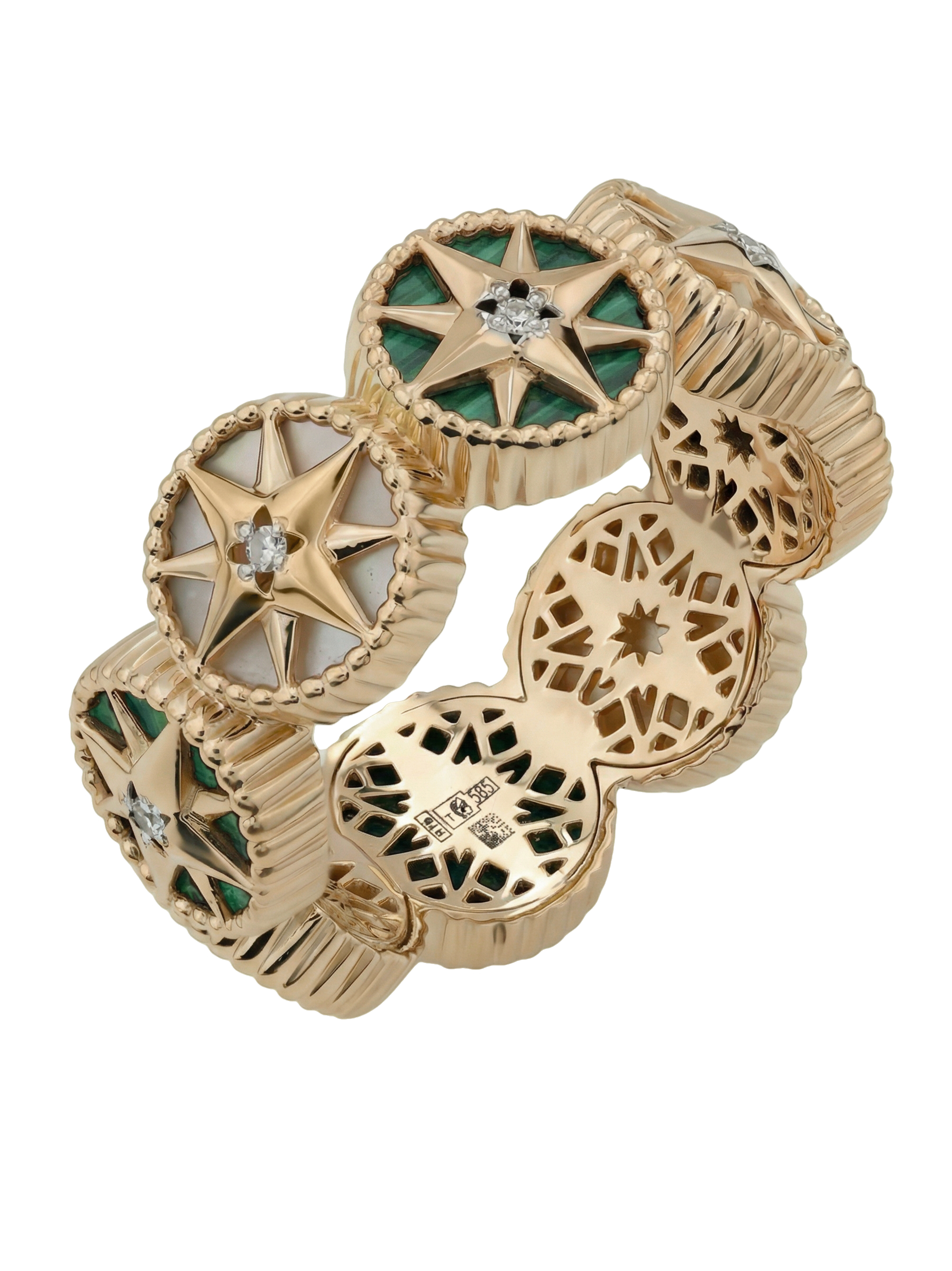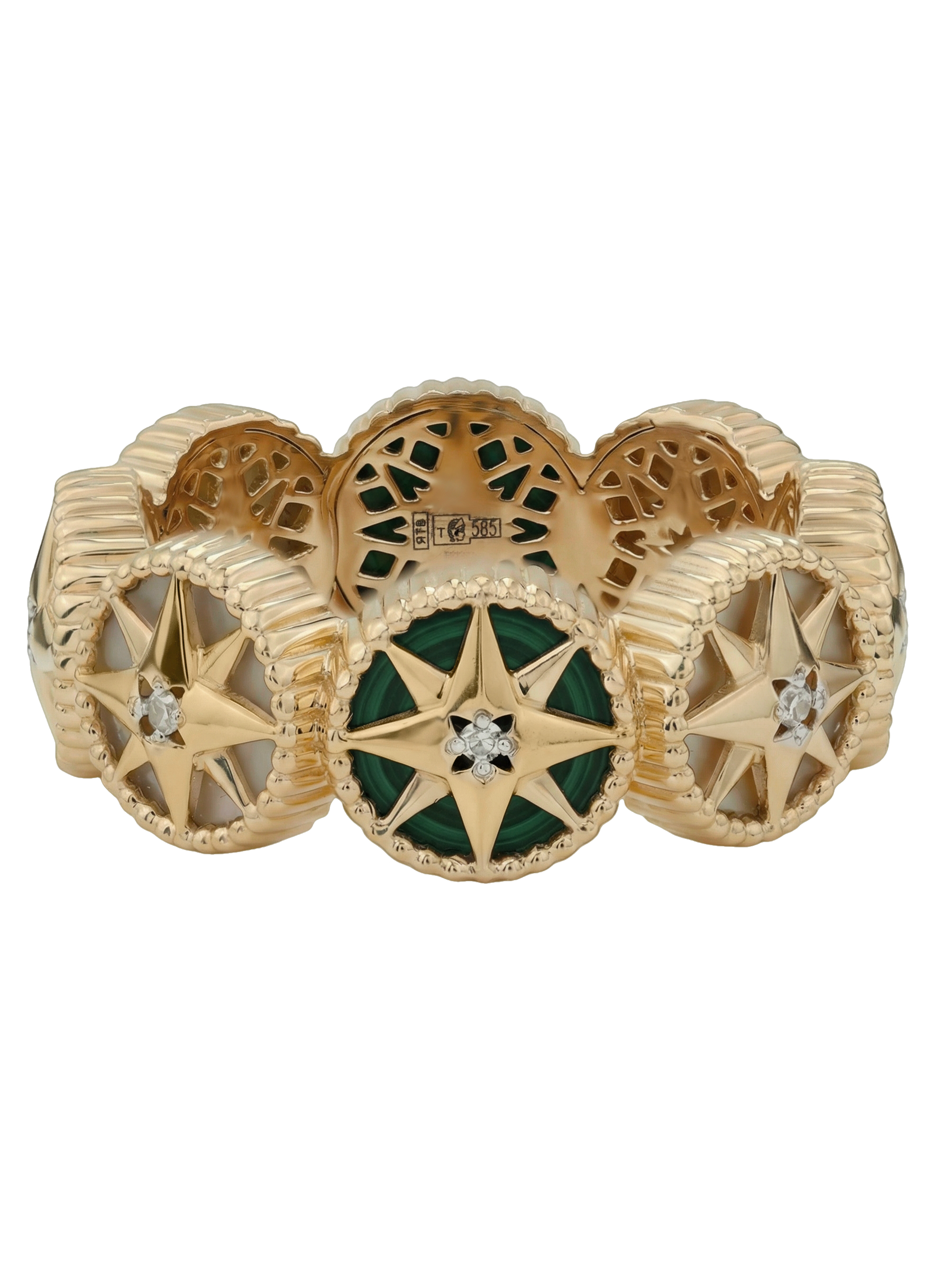 Кольцо из красного золота 585 пробы c бриллиантами, малахитом и перламутром