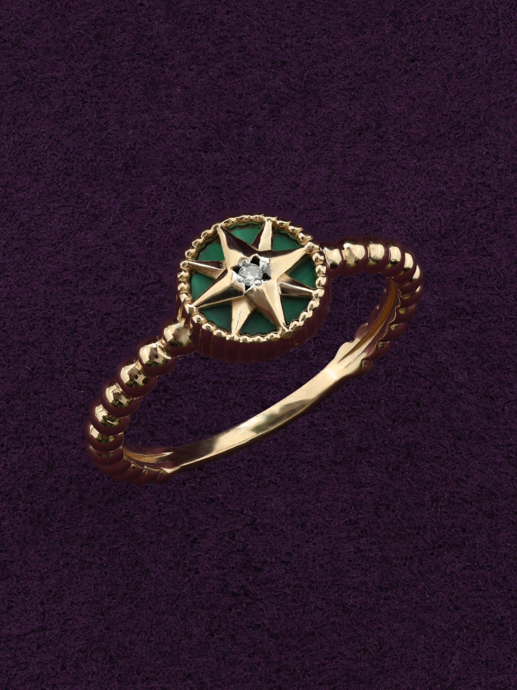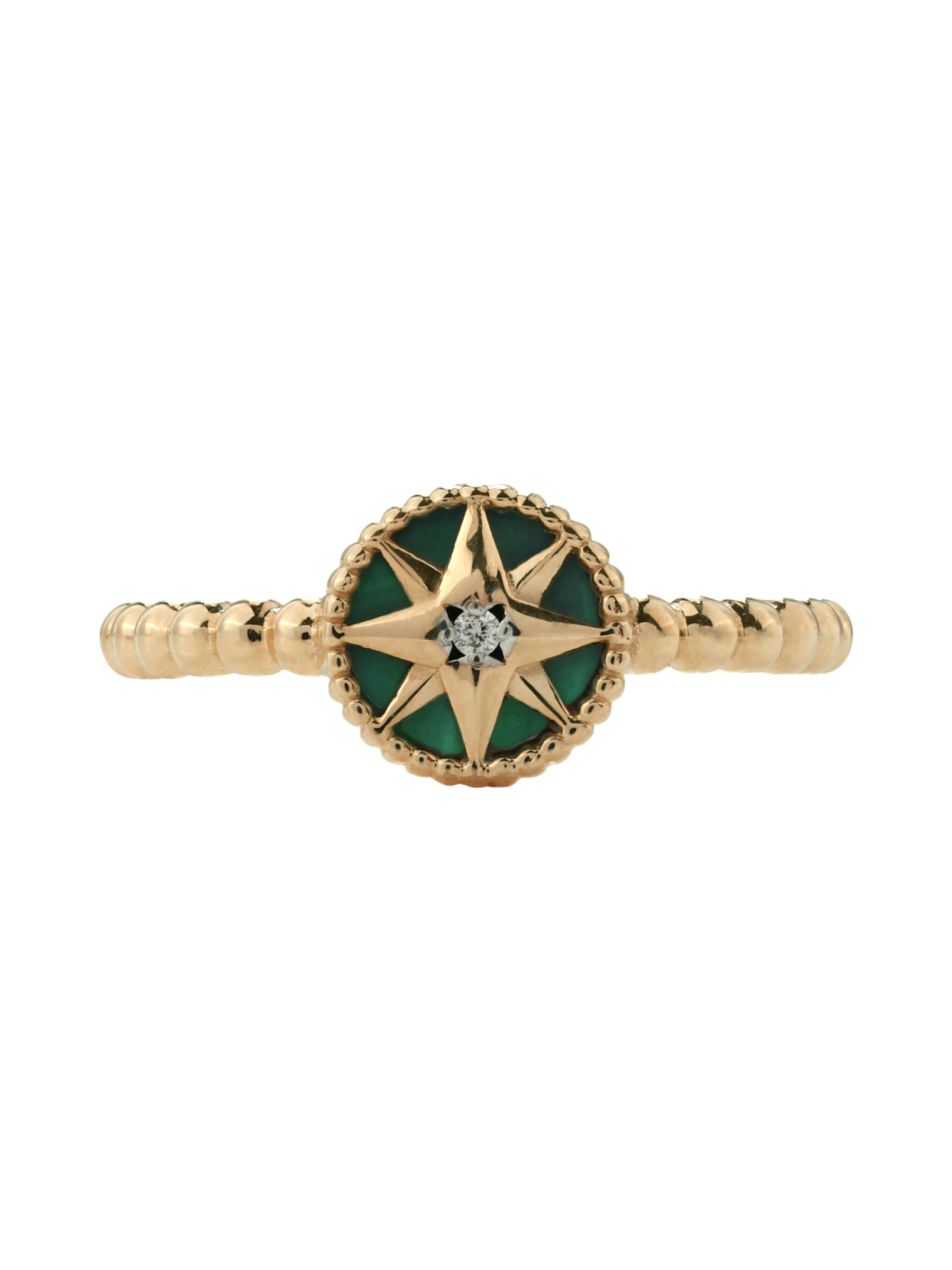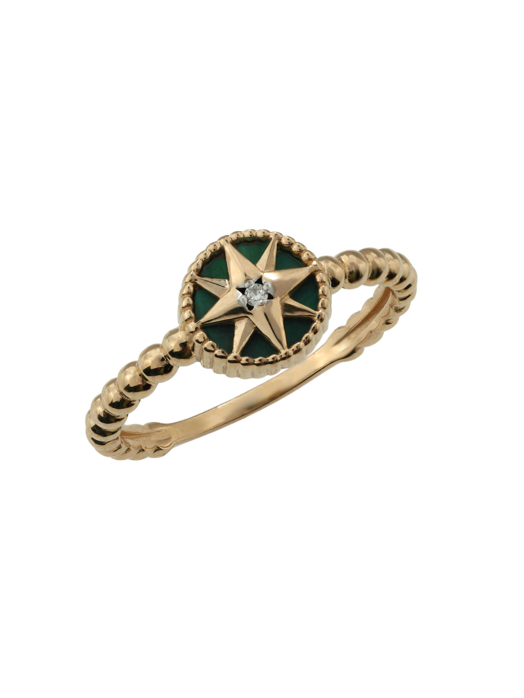 Кольцо из красного золота 585 пробы c бриллиантами и малахитом