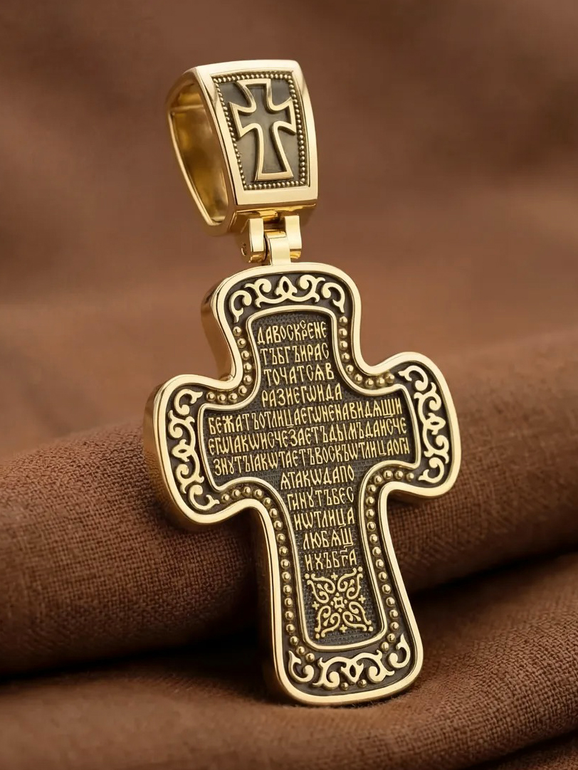 На обороте креста написаны слова молитвы «Да воскреснет Бог» (Псалом 67): «Да воскреснет Бог, и расточатся врази Его, и да бежат от лица Его ненавидящии Его. Яко исчезает дым, да исчезнут; яко тает воск от лица огня, тако да погибнут беси от лица любящих Бога.»