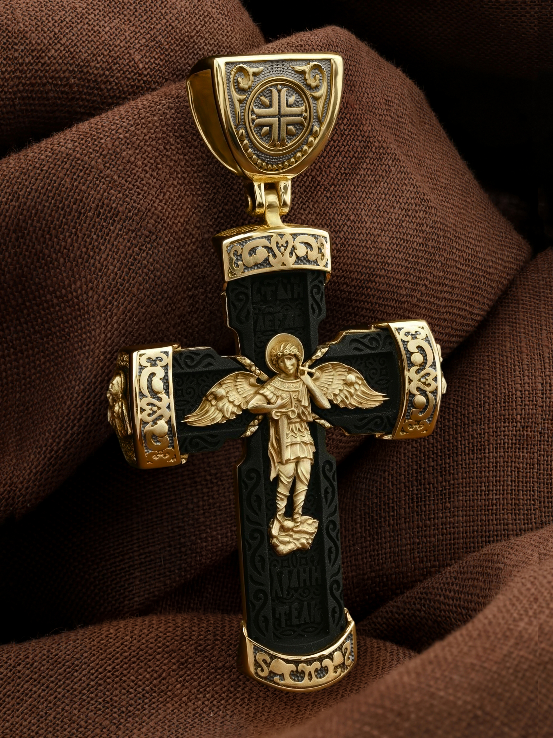 Крест из лимонного золота c эбеновым деревом