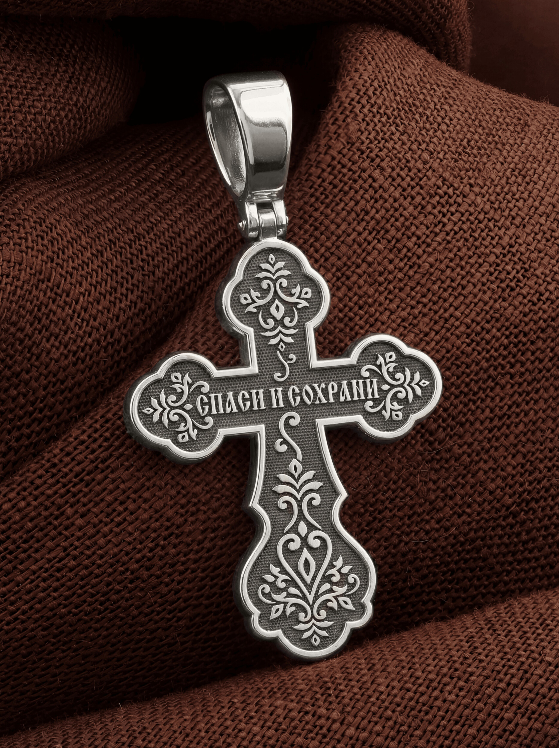 На обороте данного креста написано молитвенное славословие: «Спаси и сохрани».