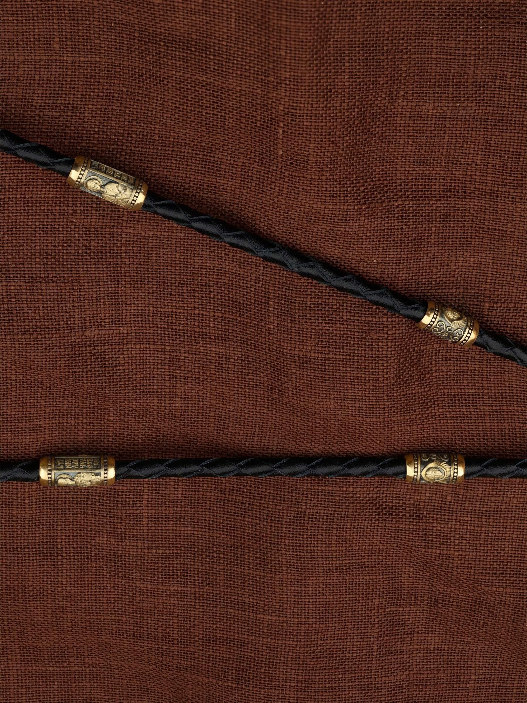 Гайтан из лимонного золота c кожаным шнурком