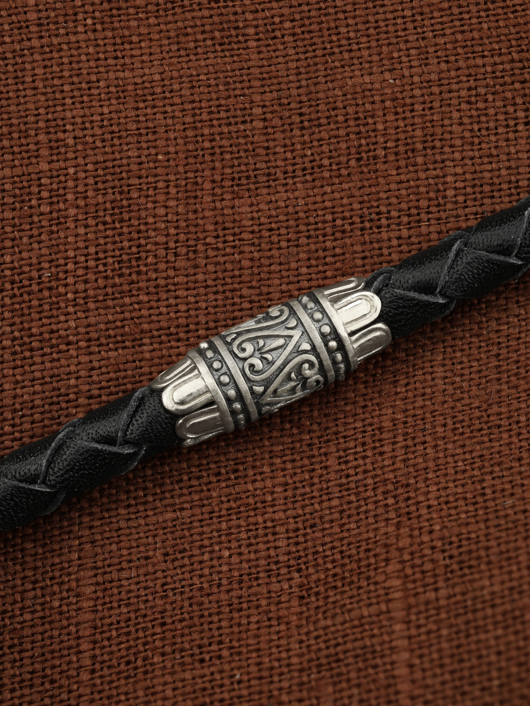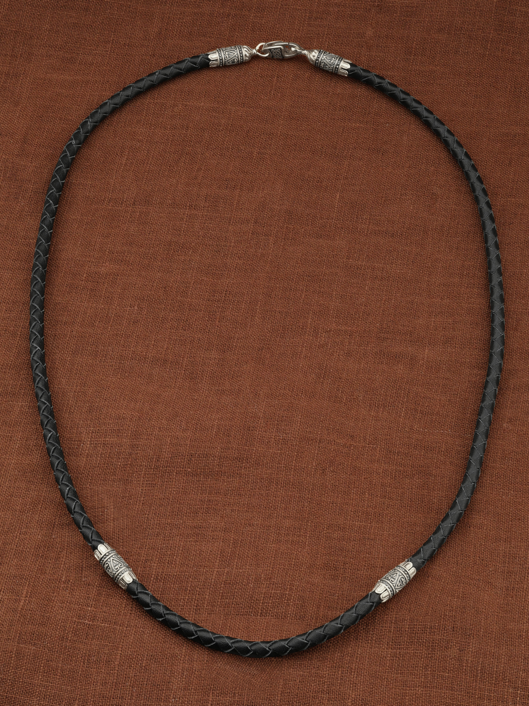 Гайтан из белого золота c кожаным шнурком