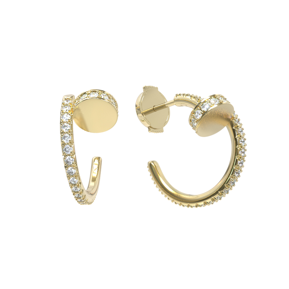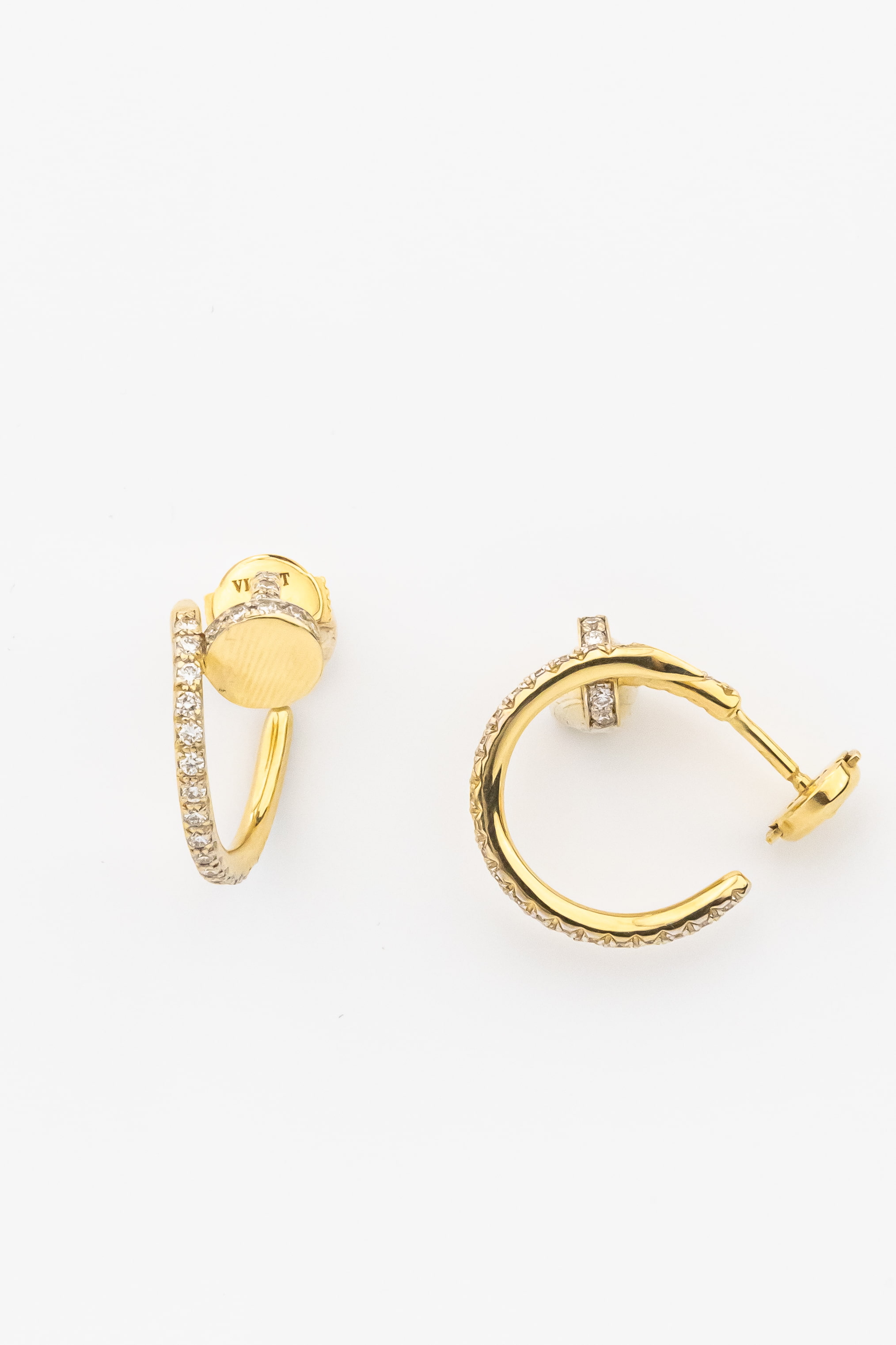Каждая серьга декорирована множеством сверкающих вставок. Всего в изделии использовано 72 бриллианта круглой огранки, которые дарят украшению непревзойденное сияние. Белый цвет вставок гармонично контрастирует с теплым лимонным золотом, делая дизайн выразительным и динамичным. Эти серьги созданы как для женщин, так и для мужчин, которые ценят лаконичность и дерзкий стиль в ювелирных украшениях.