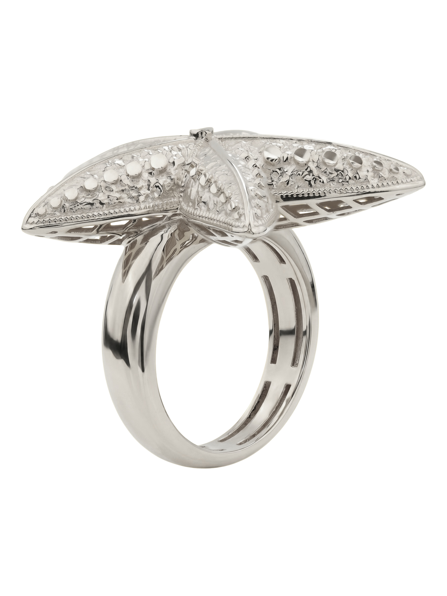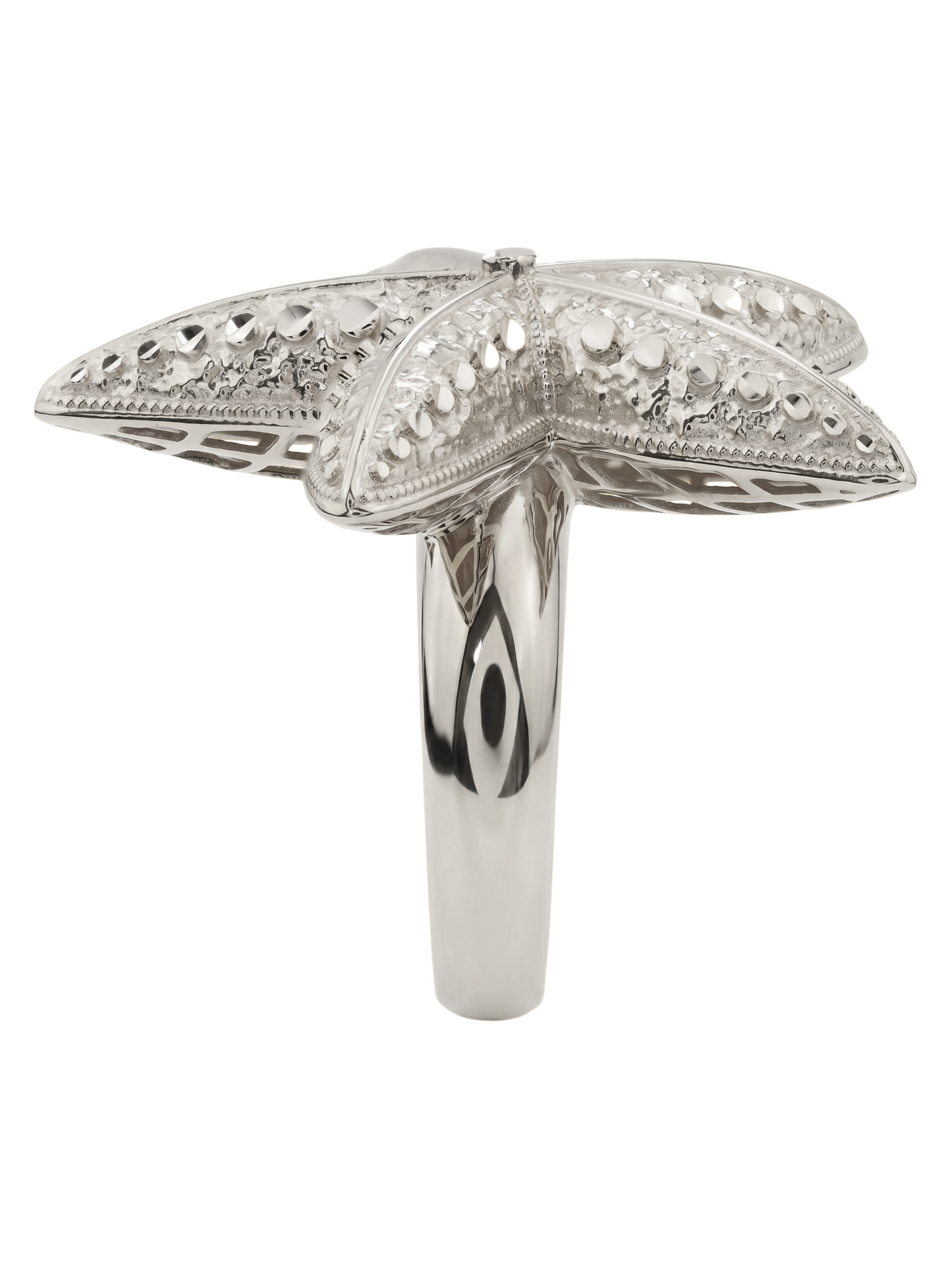 Кольцо из белого золота с рубином из коллекции Vioretty — Oceano — это ювелирный шедевр, воплощающий эстетику морских глубин. Дизайн украшения вдохновлен красотой морской звезды, что делает его настоящим арт-объектом, способным подчеркнуть индивидуальность своего владельца. Это эффектное кольцо создано для ценителей эксклюзивных аксессуаров, которые стремятся выделяться в любой обстановке.
