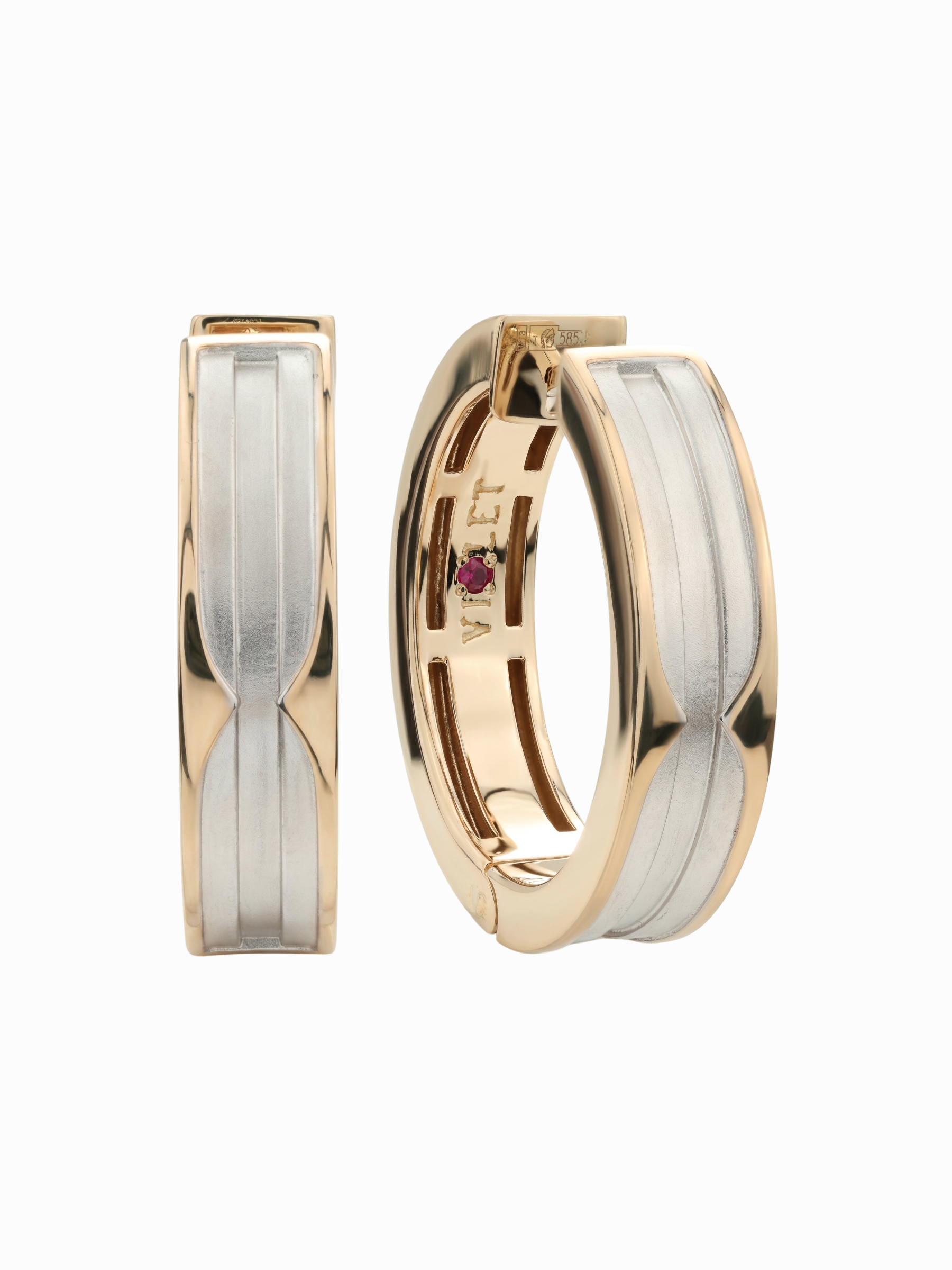 Всего в изделии использовано 2 красных рубина, которые придают украшению особый шарм, оставаясь при этом сдержанным акцентом. Дизайн серег универсален: они отлично подходят как для женщин, так и для мужчин, подчеркивая статус и безупречный вкус своего владельца. Надежный механизм крепления обеспечивает комфортное ношение в течение дня, а продуманная геометрия делает серьги выразительным дополнением любого образа.