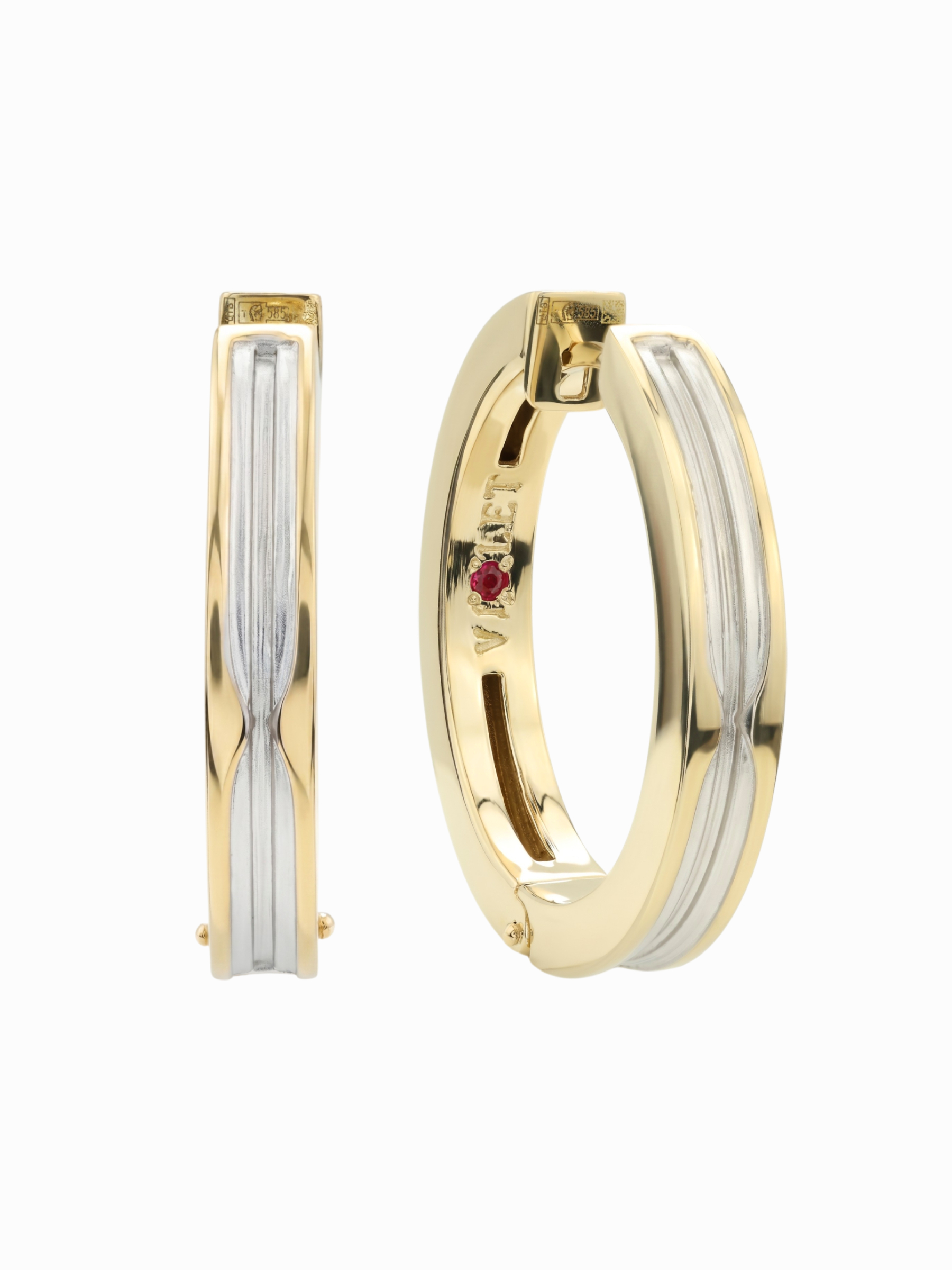 Конструкция изделия отличается продуманной геометрией, где гладкие линии лимонного золота создают безупречный визуальный объем. Эти универсальные серьги подходят как для женщин, так и для мужчин, что делает их прекрасным примером современной ювелирной унисекс-эстетики. Каждая пара включает 2 рубина, которые придают украшению особенный характер. Изделие гармонично впишется в ваш личный стиль или станет центральным элементом в коллекции Vioretty — DEMETRA, позволяя создавать элегантные ювелирные комплекты. Надежный замок обеспечивает комфорт при повседневном ношении, сохраняя при этом целостность формы и дизайна. Выбирая данные серьги, вы делаете ставку на премиальное качество материалов и актуальный дизайн, который остается вне времени.