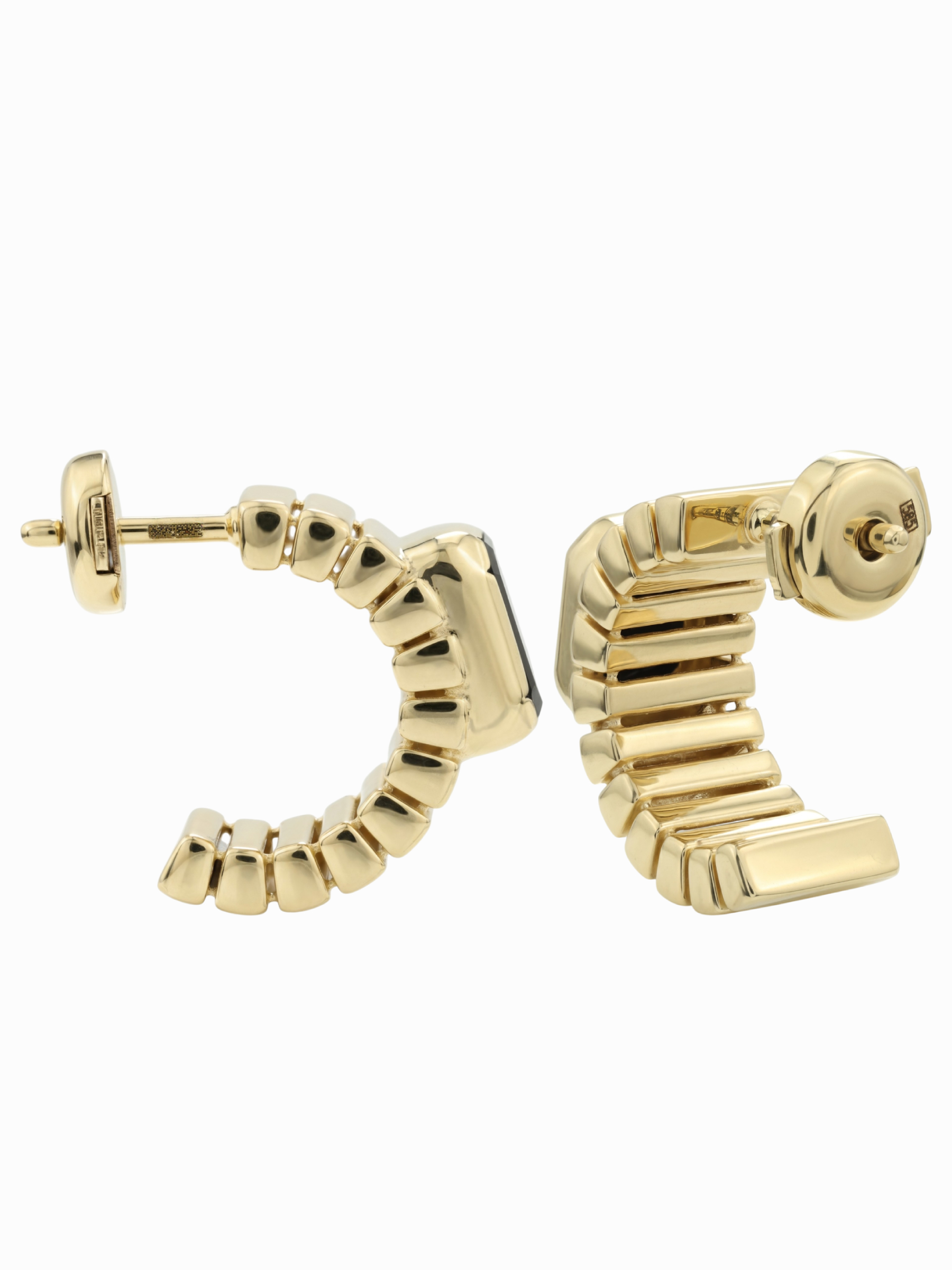 Откройте для себя воплощение современной эстетики с этими изысканными серьгами, выполненными в благородном лимонном золоте 585 пробы. Украшения из коллекции Vioretty — Geometria притягивают взгляд своим строгим, но выразительным геометрическим дизайном. Центральным элементом композиции выступает глубокий черный оникс: две вставки насыщенного темного цвета эффектно контрастируют с теплым сиянием драгоценного металла.