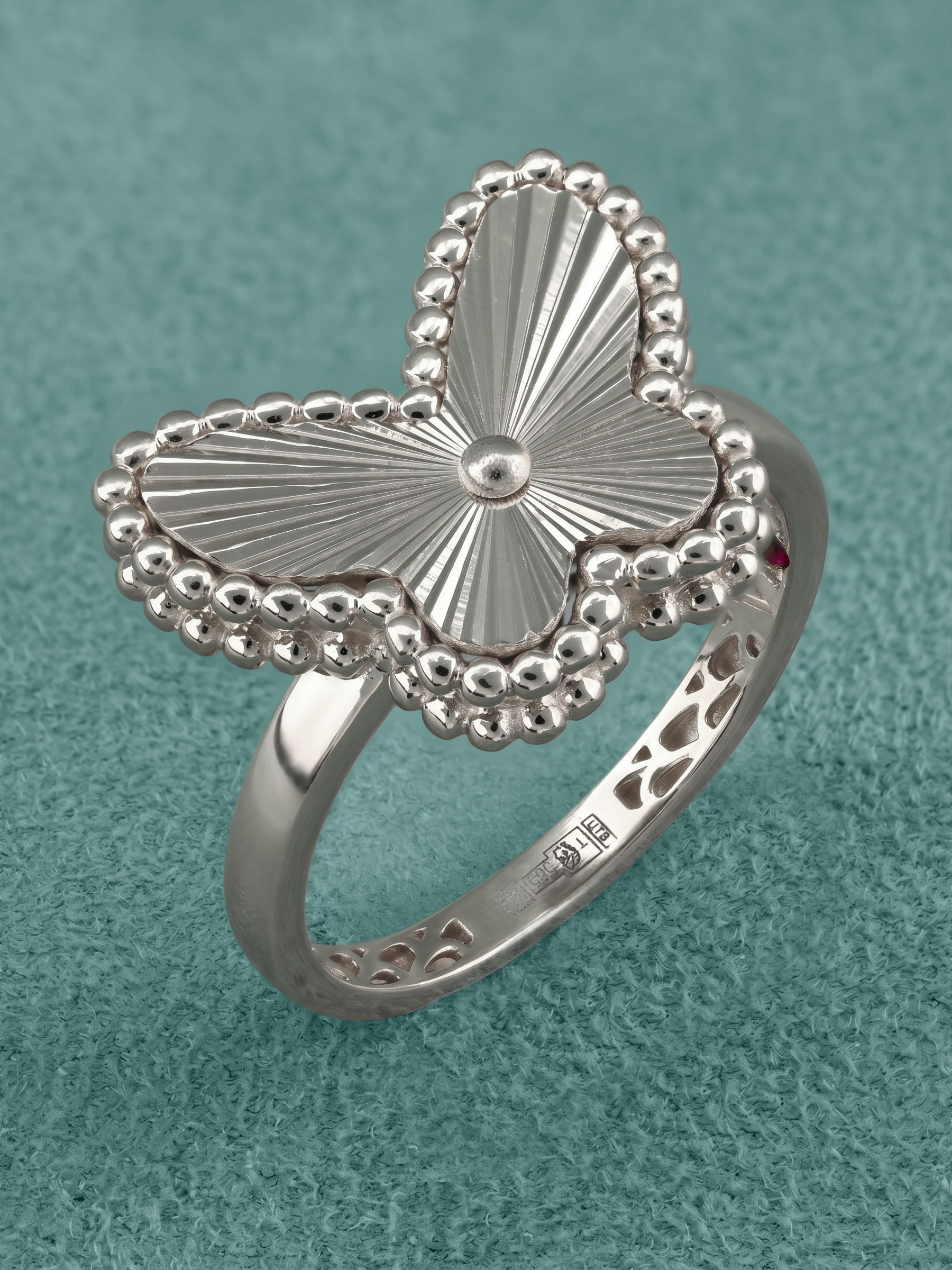 Мастера ювелирного дела тщательно проработали каждую деталь, создав гармоничный контраст между глянцевой поверхностью и фактурными элементами декора. Белое золото подчеркивает яркость красного камня, создавая эстетически совершенный вид, подходящий для любого торжественного случая или особенного события. Это стильное кольцо универсально: оно создано для женщин и для мужчин, предпочитающих качественные украшения с глубоким смыслом и безупречным исполнением.