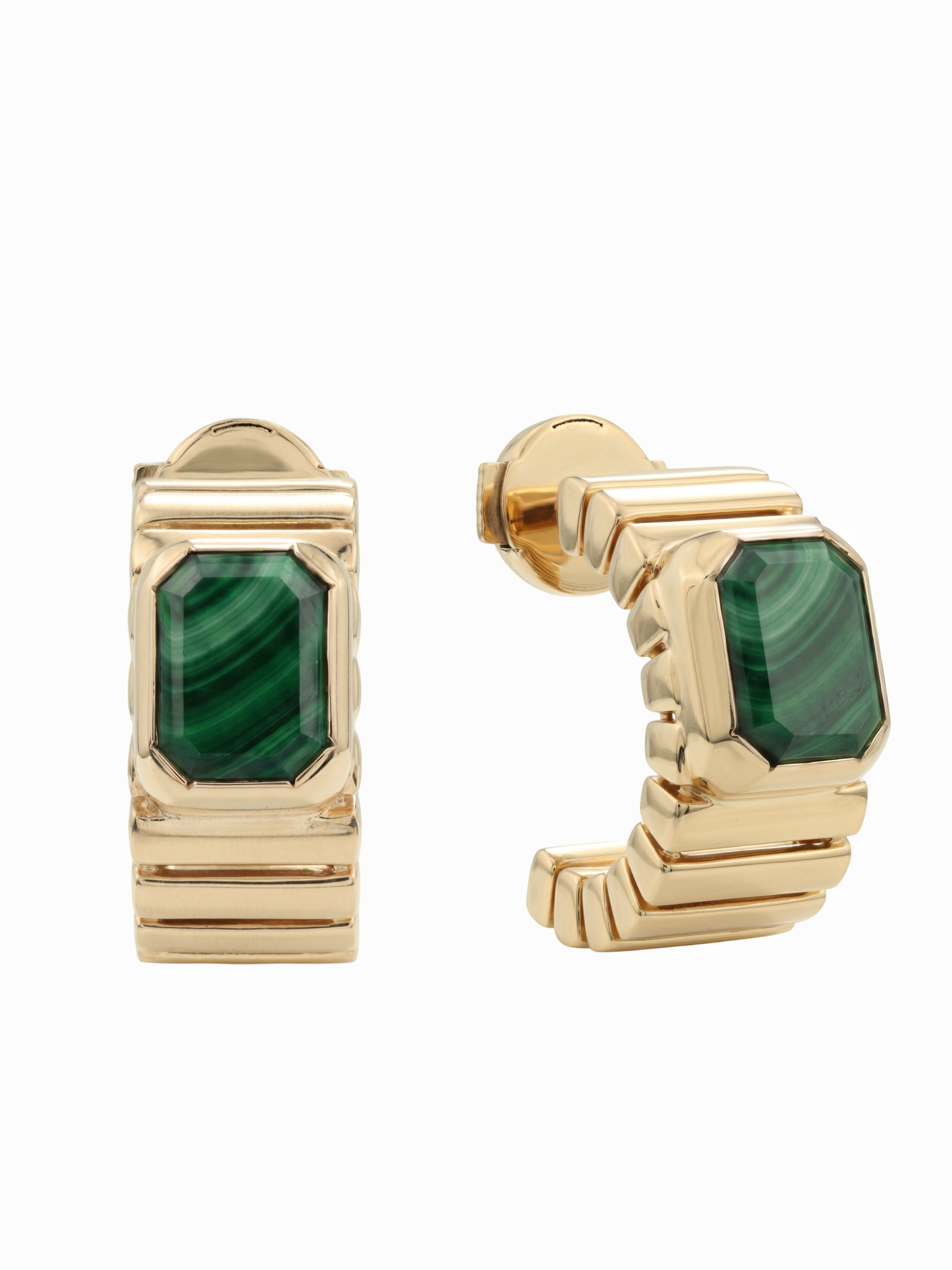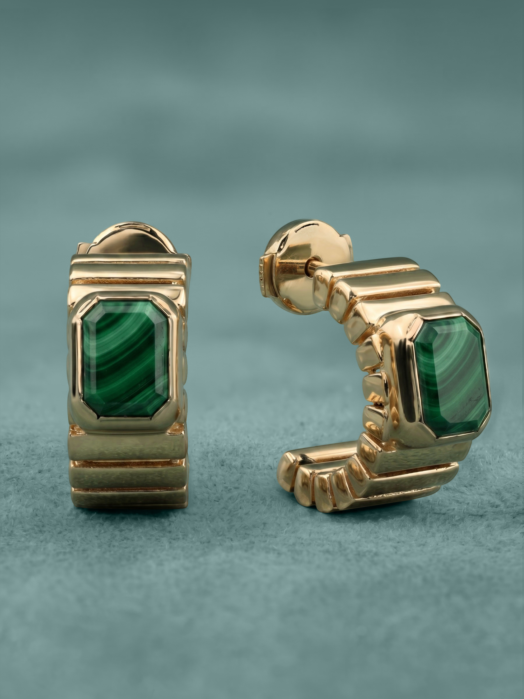 Мастерская огранка в форме октагона подчеркивает природный рисунок камня, придавая изделию статусность и выразительность. В данной паре серег использовано 2 вставки малахита, которые гармонично дополняют лаконичный корпус из красного золота. Универсальный дизайн делает эти серьги подходящим аксессуаром как для женщин, так и для мужчин, предпочитающих подчеркнуть свою индивидуальность качественными ювелирными изделиями. Конструкция серег продумана до мелочей, что обеспечивает комфорт при ежедневной носке.