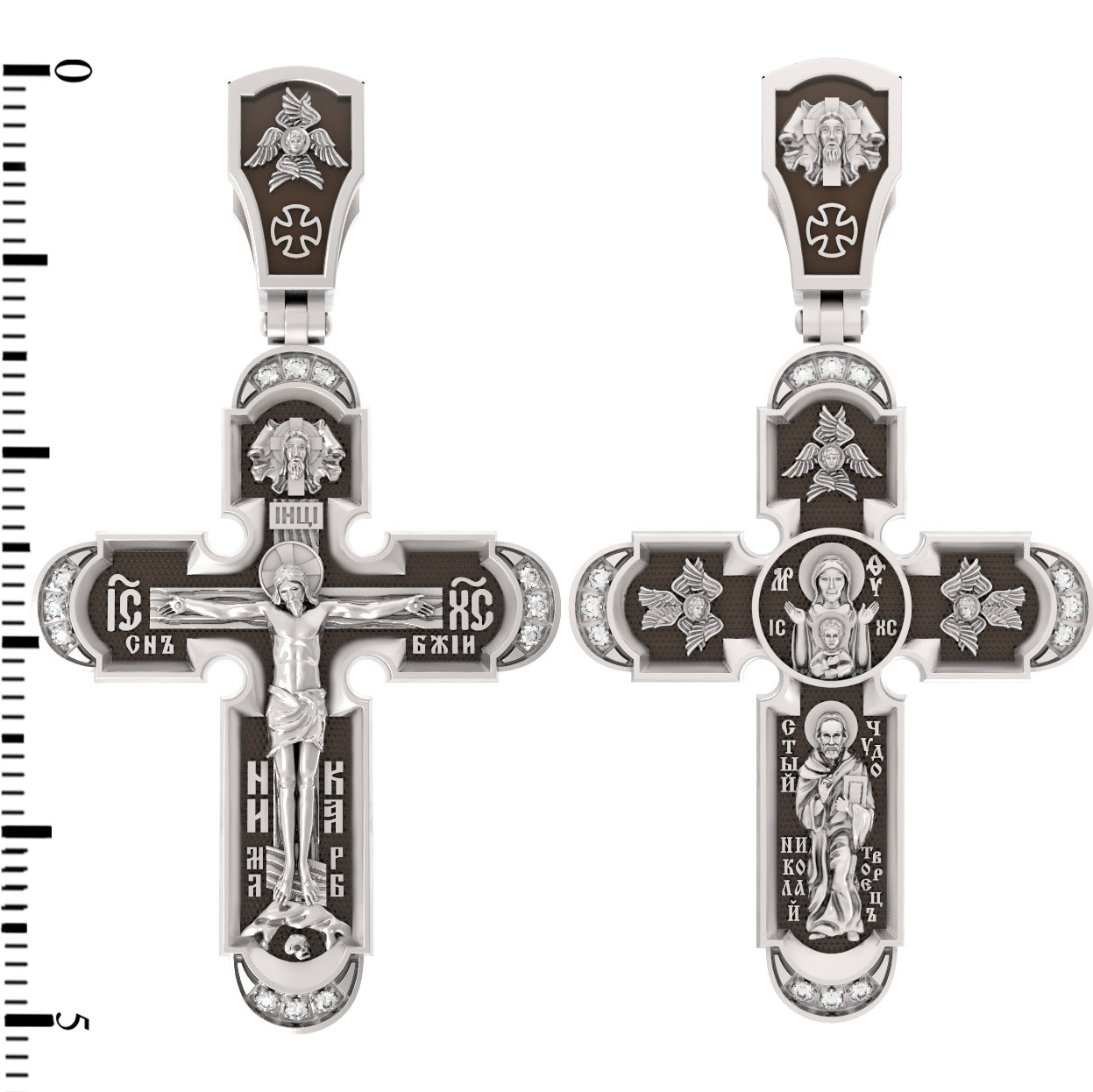 У основания креста в полный рост изображен самый любимый святой Православной Церкви — Николай Чудотворец. Святой почитается как целитель болезней, покровитель путешествующих, особенно по морю, помощник в торговле, учебе, а также в поисках достойного супруга.