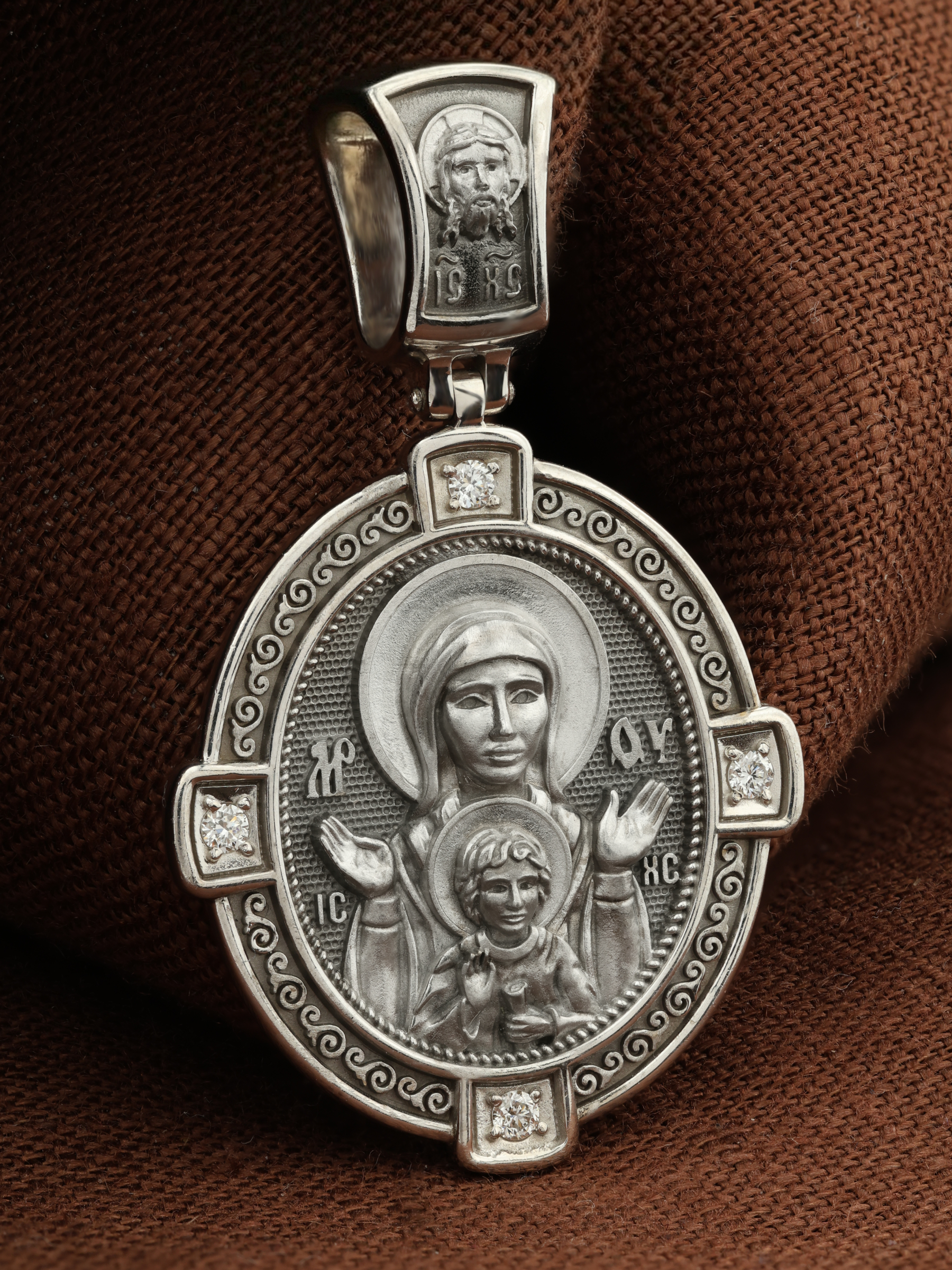 Нательная икона из белого золота 585 пробы c бриллиантами