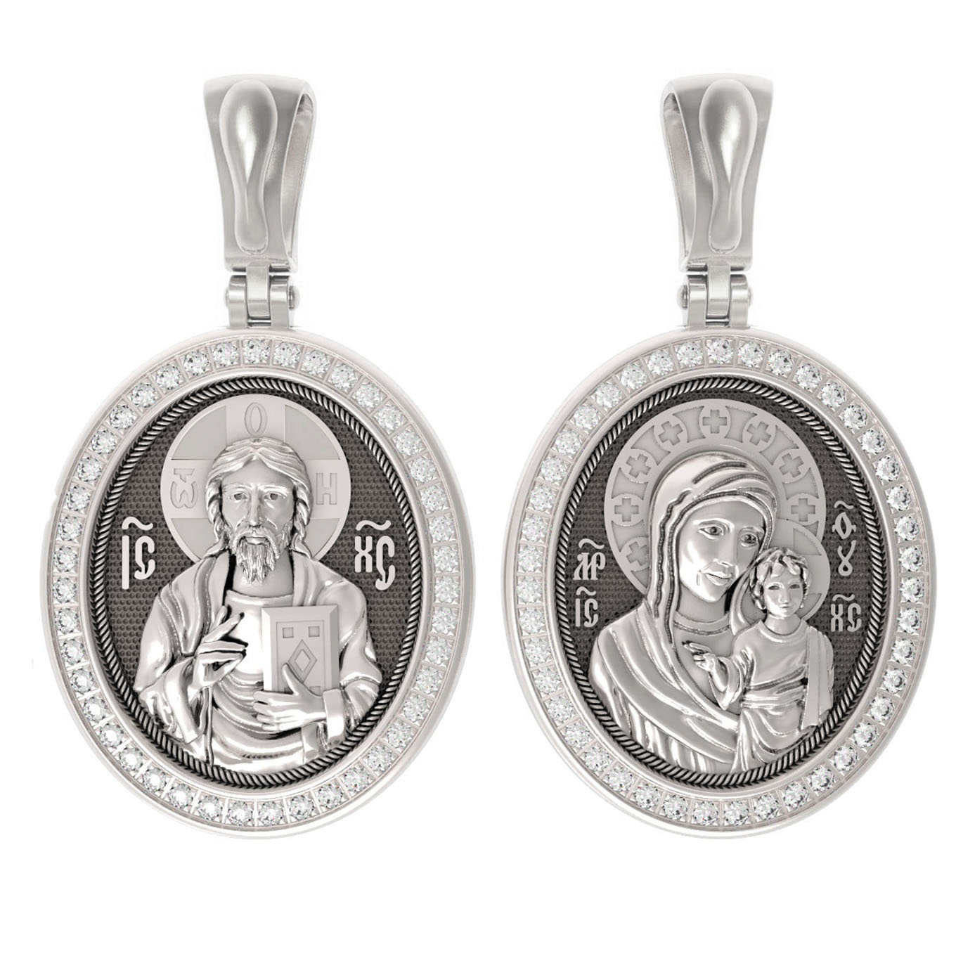 Нательная икона из белого золота 585 пробы c бриллиантами