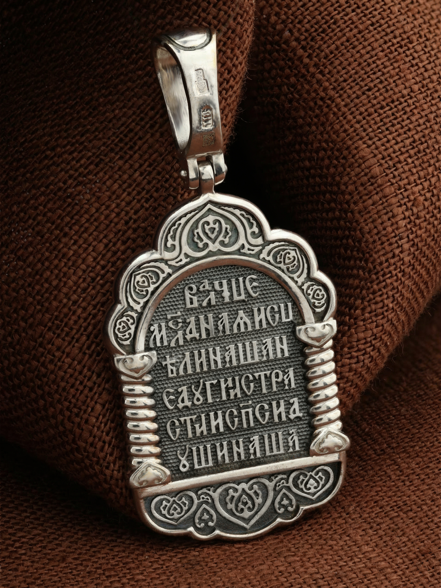 На лицевой части образка изображена икона Божией Матери «Неупиваемая чаша». Икона славится помощью в исцелении зависимостей, помогает людям обрести свободу от греховных страстей.