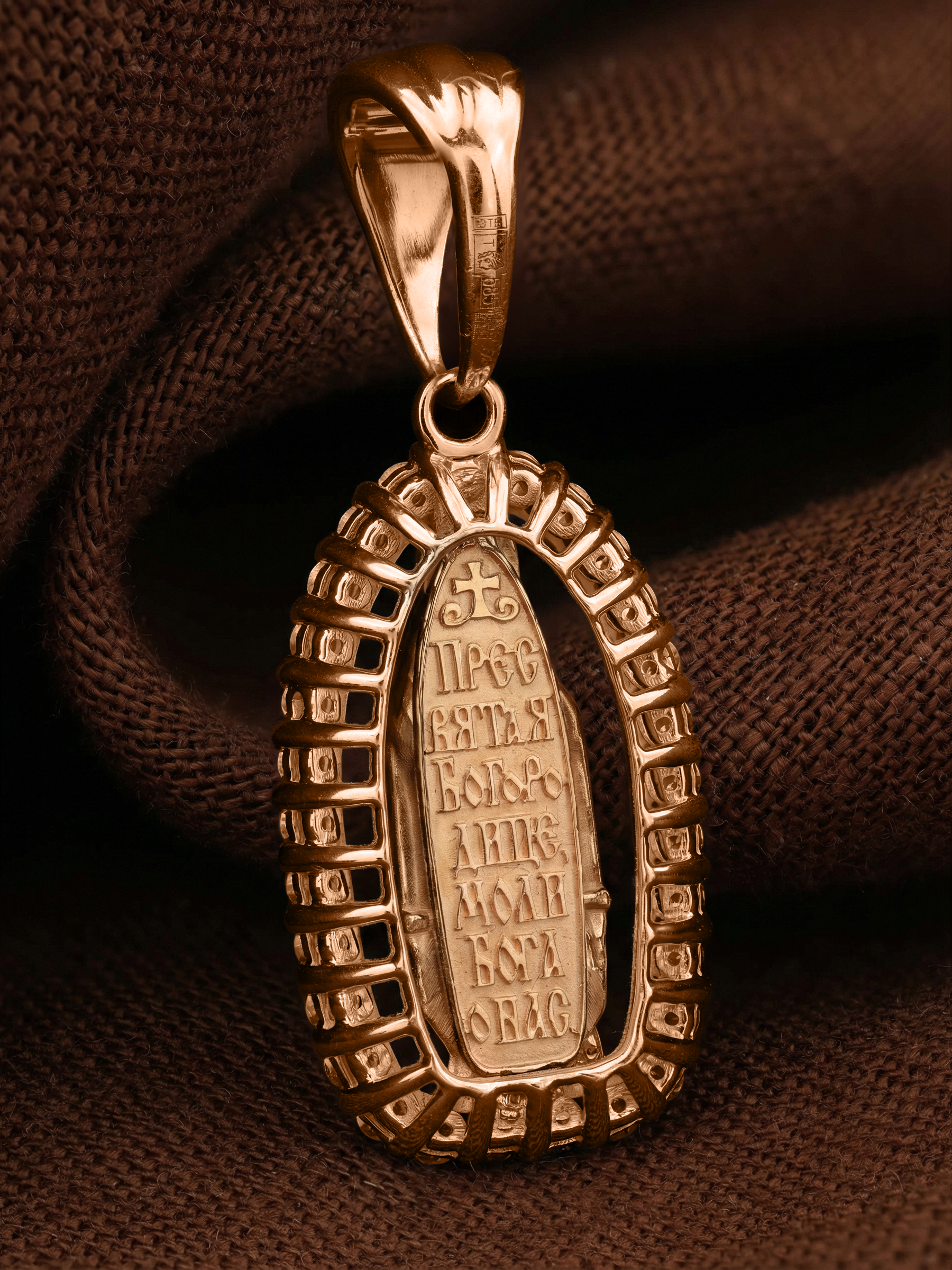 Нательная икона из красного золота 585 пробы c бриллиантами