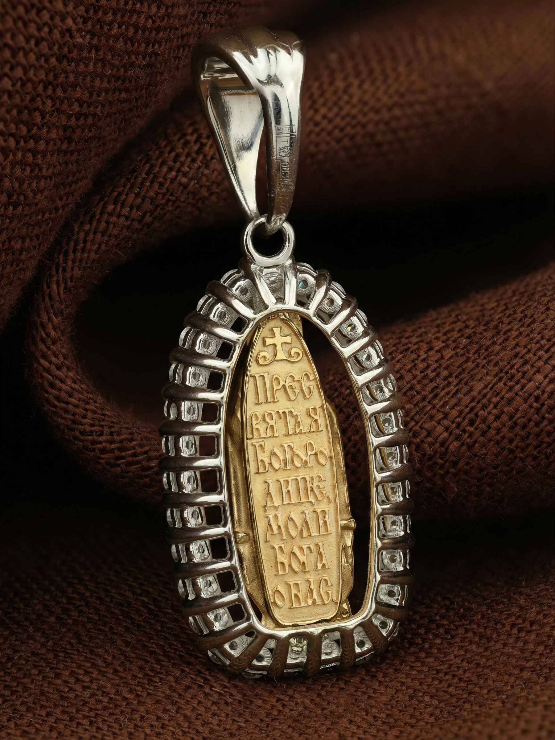 Нательная икона из белого золота 585 пробы c бриллиантами
