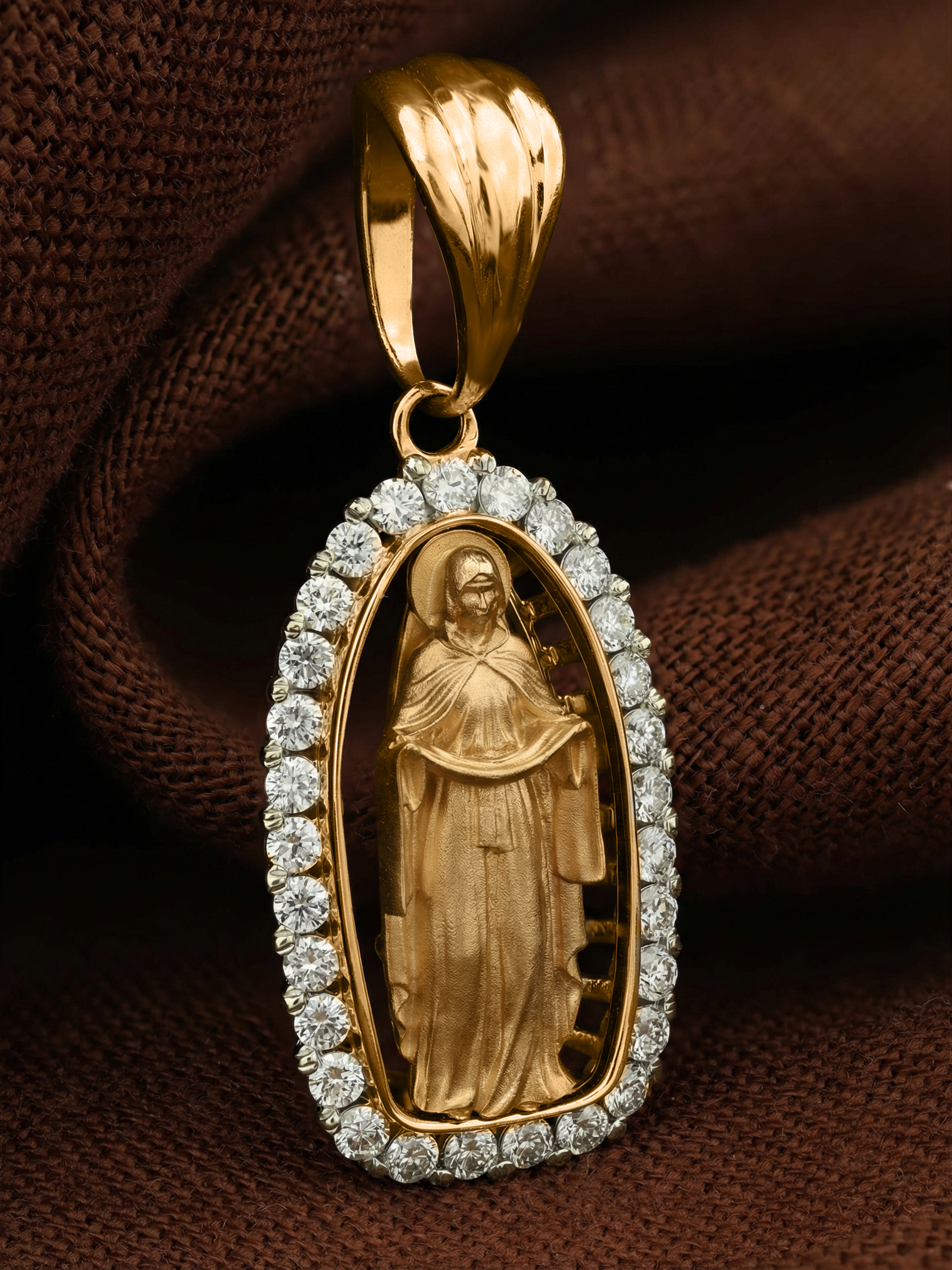 Нательная икона из лимонного золота 585 пробы c бриллиантами