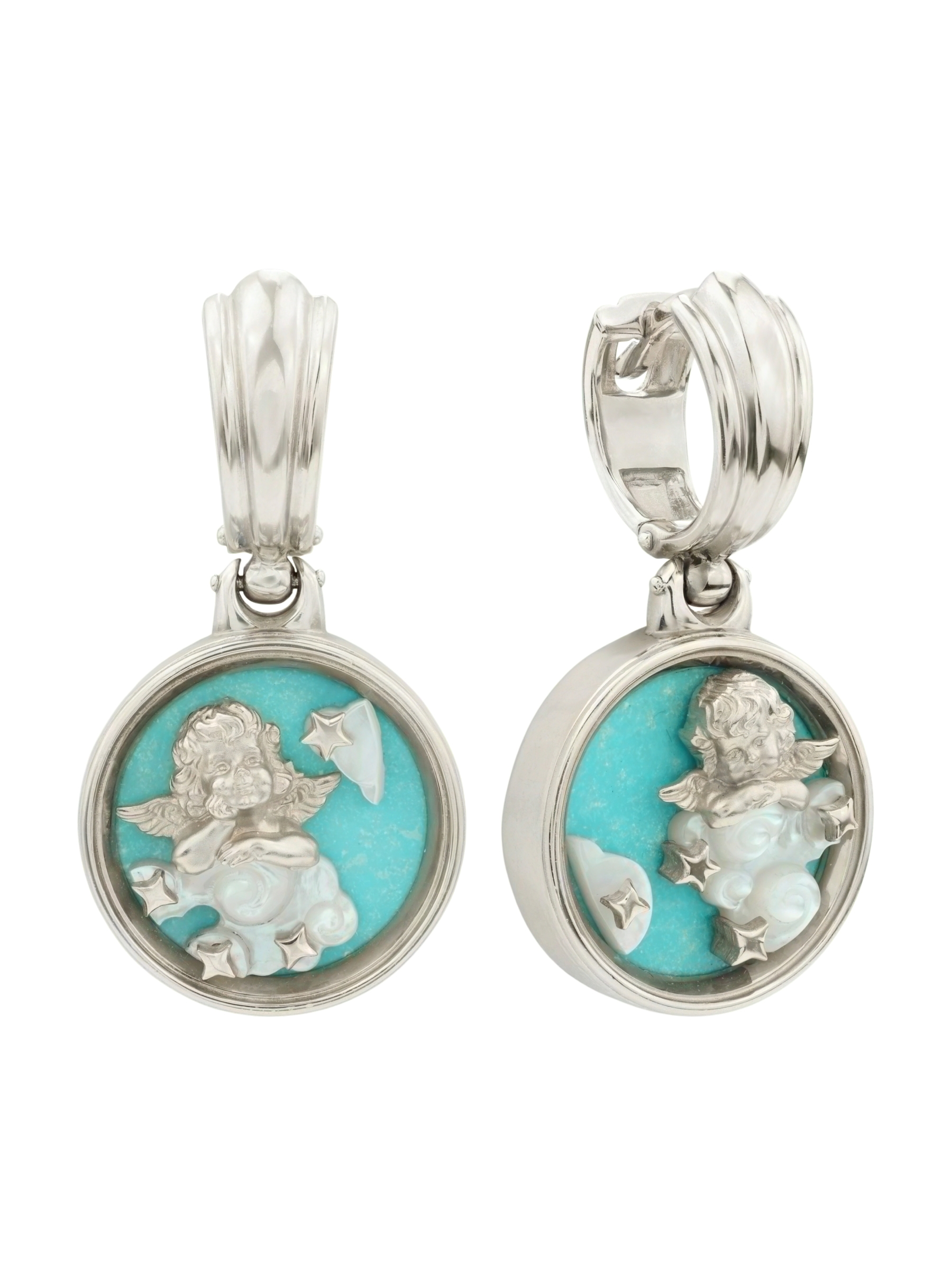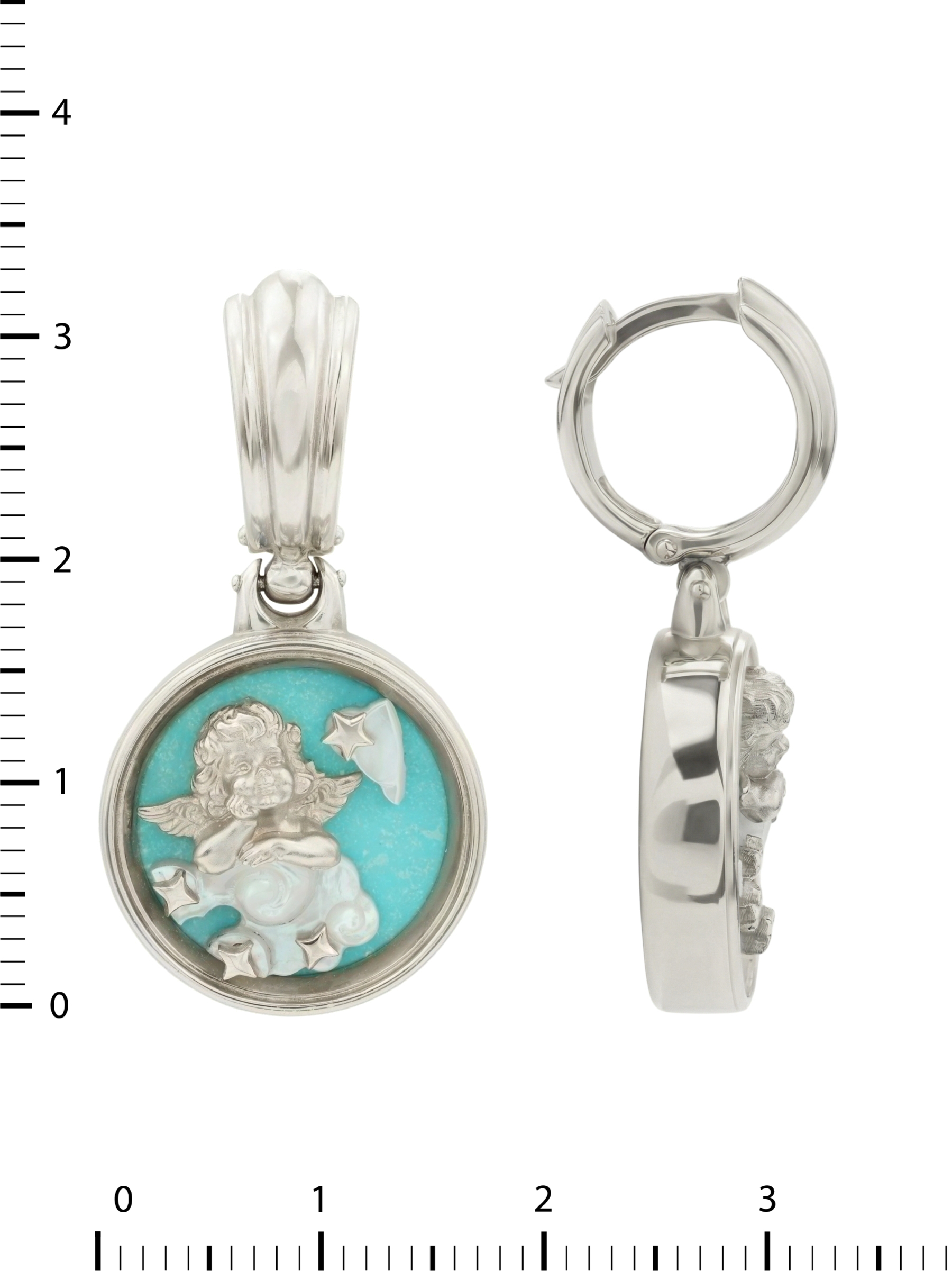 Серьги из белого золота 585 пробы c бирюзой и перламутром