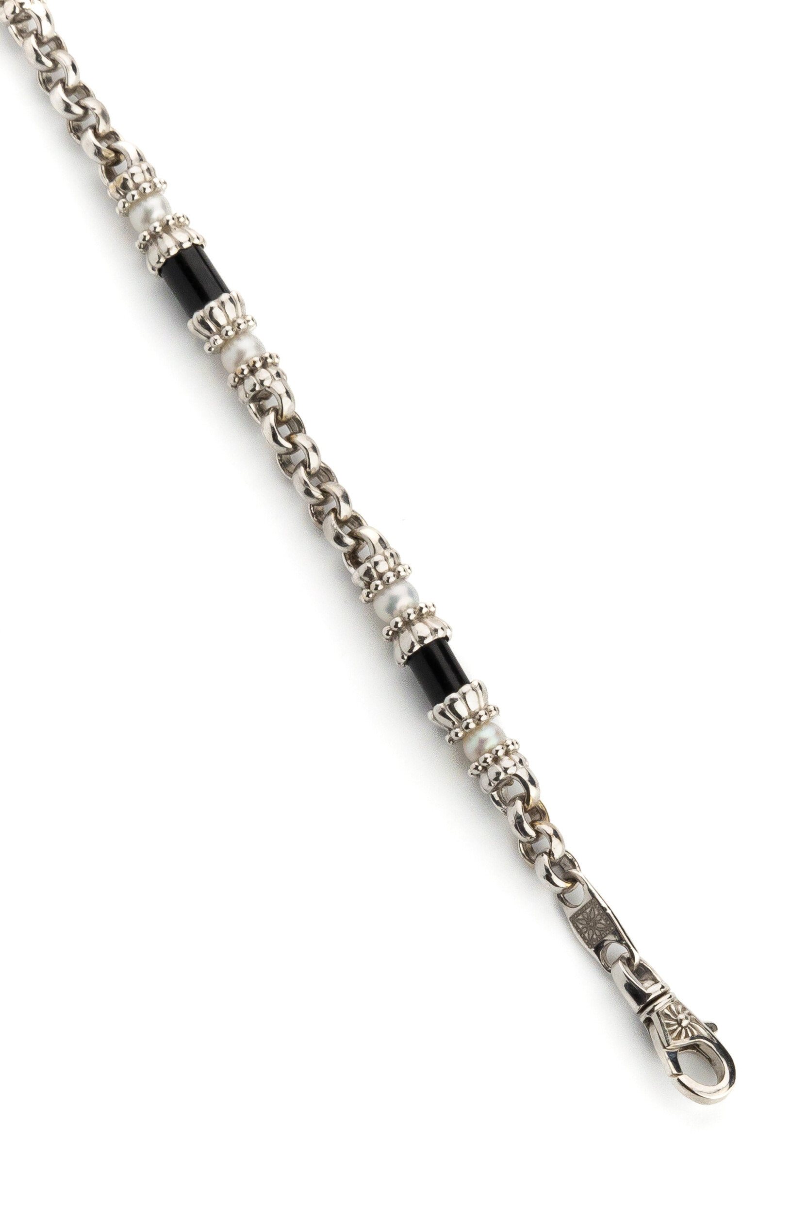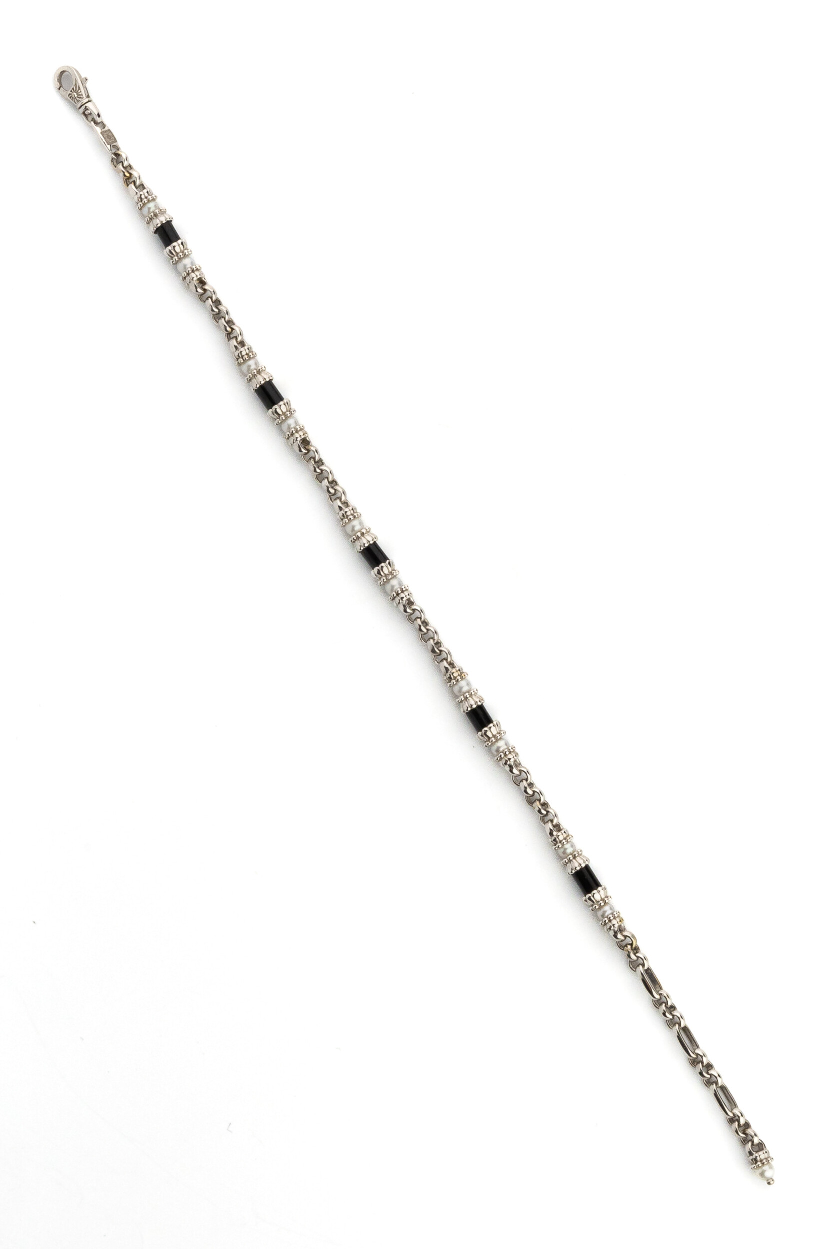 Браслет из белого золота c жемчугом и ониксом