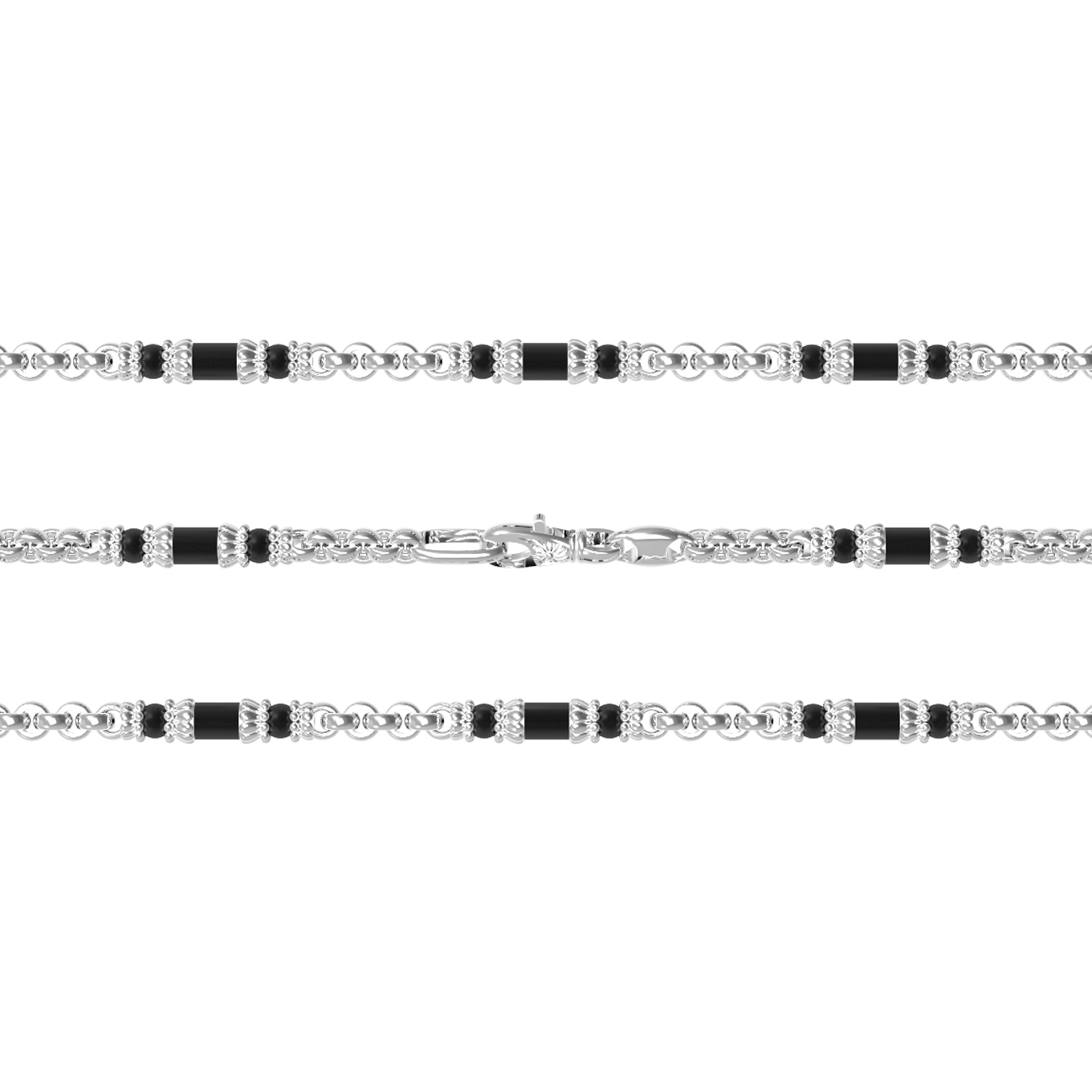 В декоре цепи использовано 147 вставок из оникса, имеющих элегантную форму бусин и цилиндров. Такая детализация делает изделие не просто аксессуаром, а значимой частью образа, приковывающей внимание к деталям. Надежность и комфорт ношения обеспечивает продуманная конструкция и качественная застежка. Эта модель из De Luxe — Индия доступна в размерах 50, 55 и 60, что позволяет выбрать идеальную длину для любого типа фигуры.