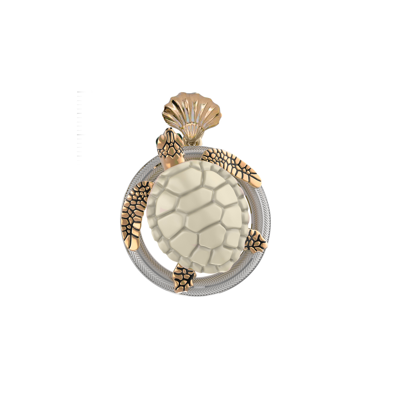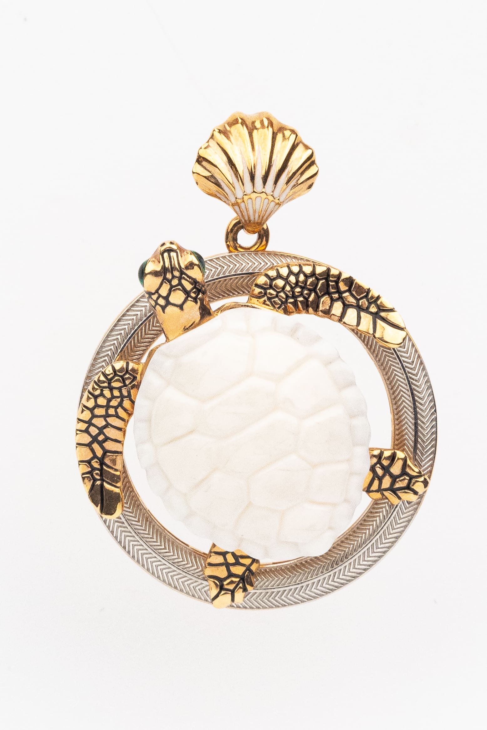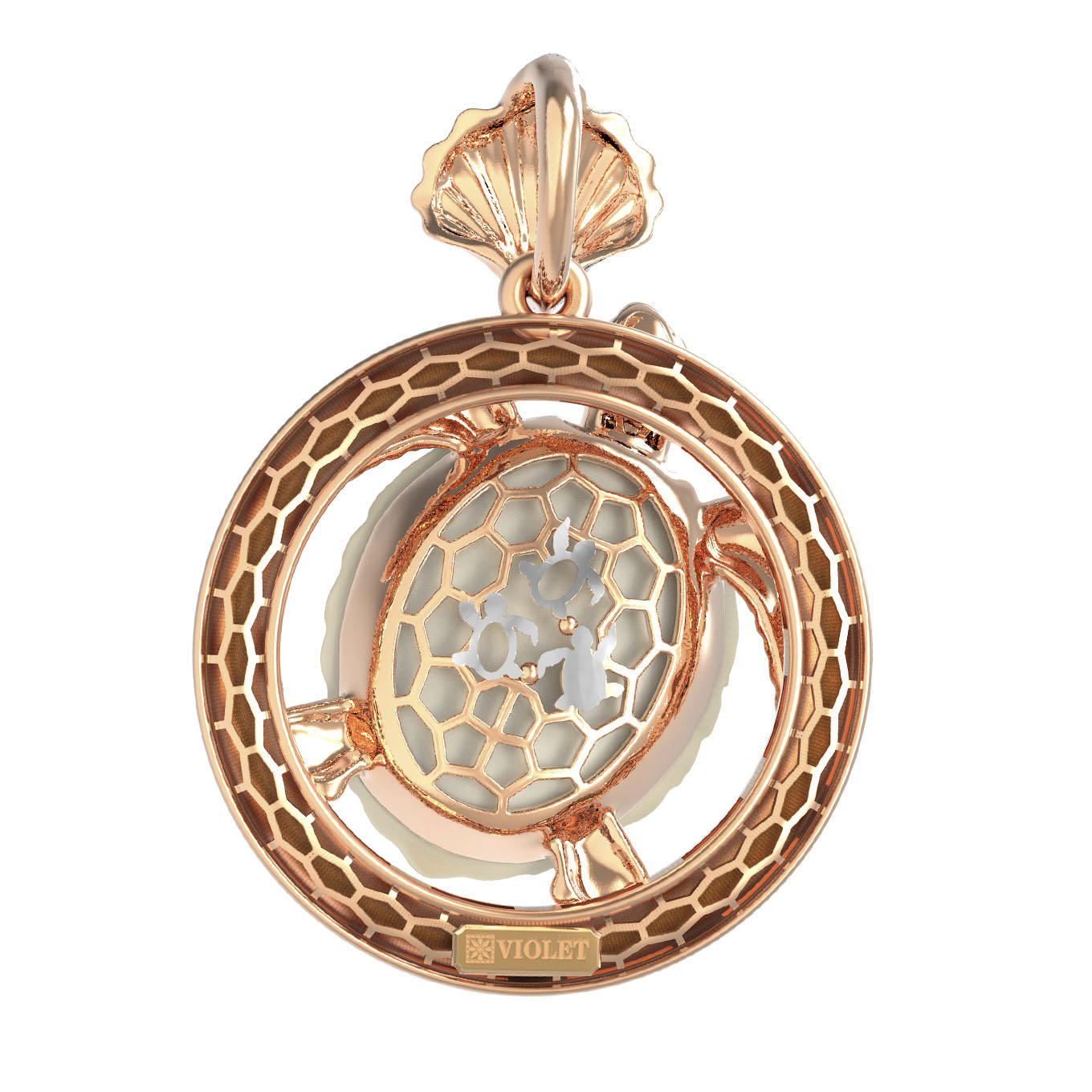 Подвеска из красного золота 585 пробы c эмалью и бивнем мамонта