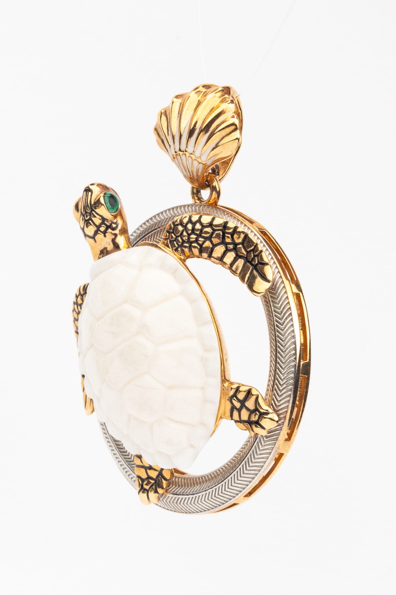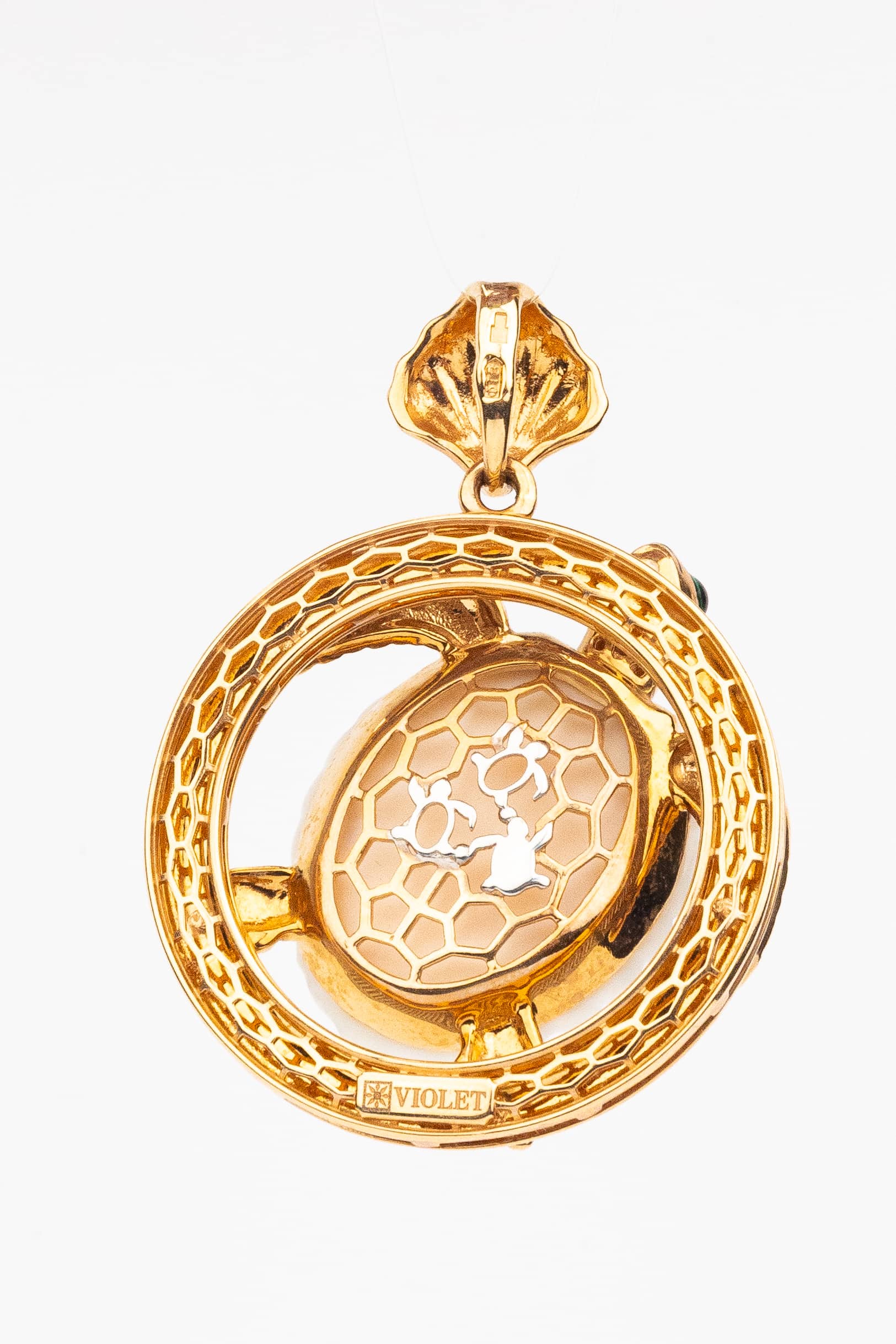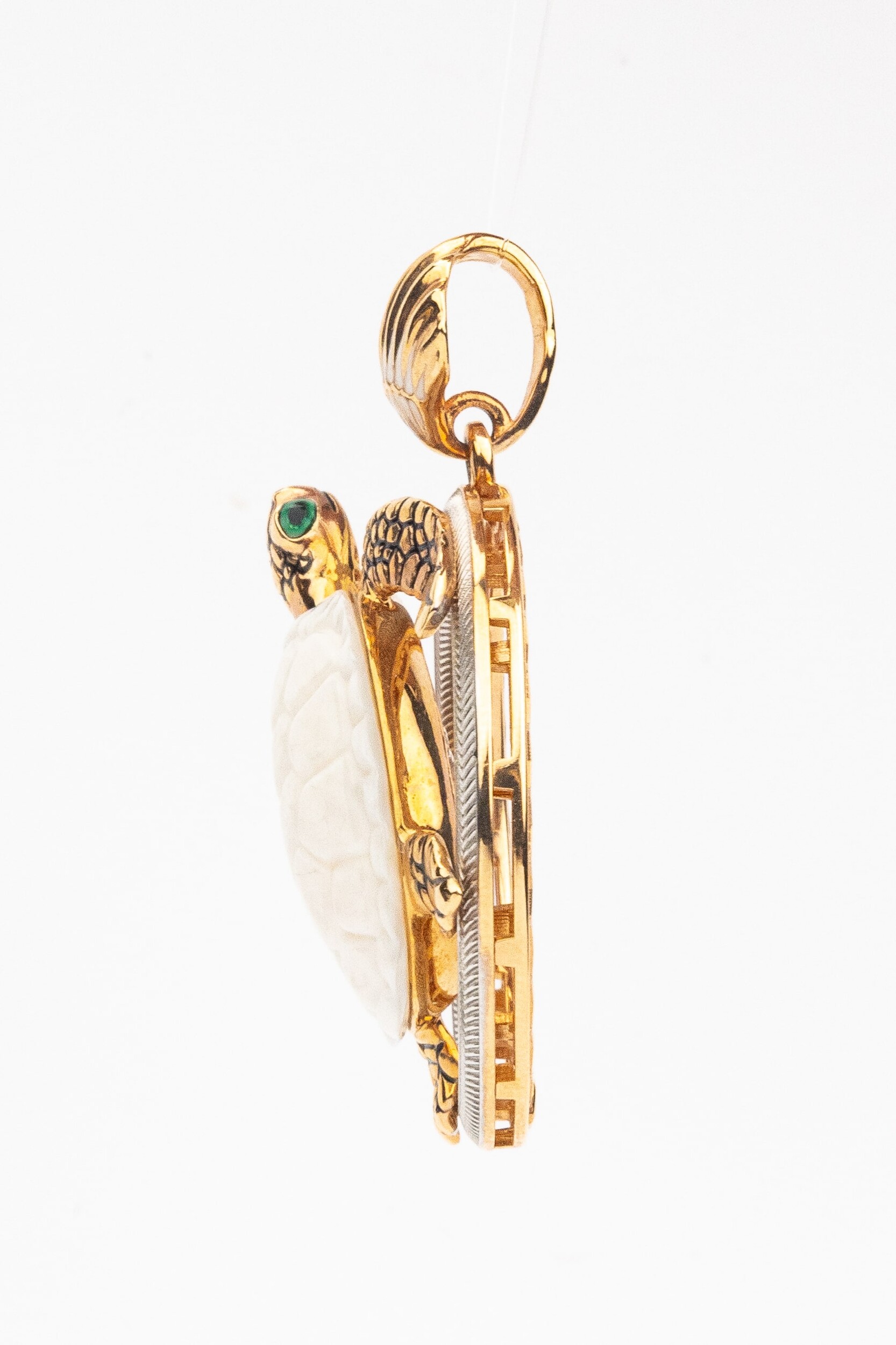 Подвеска из красного золота 585 пробы c эмалью и бивнем мамонта