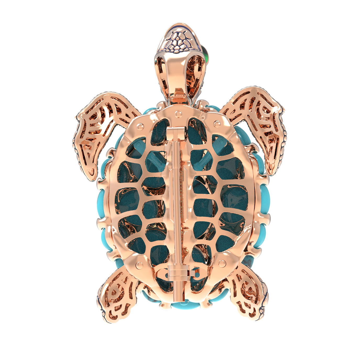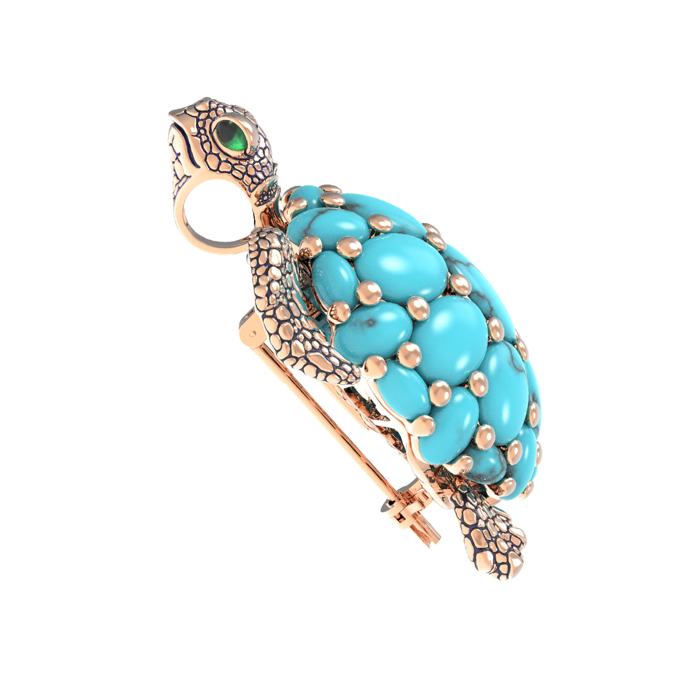 Брошь-подвеска из красного золота 585 пробы c эмалью и бирюзой