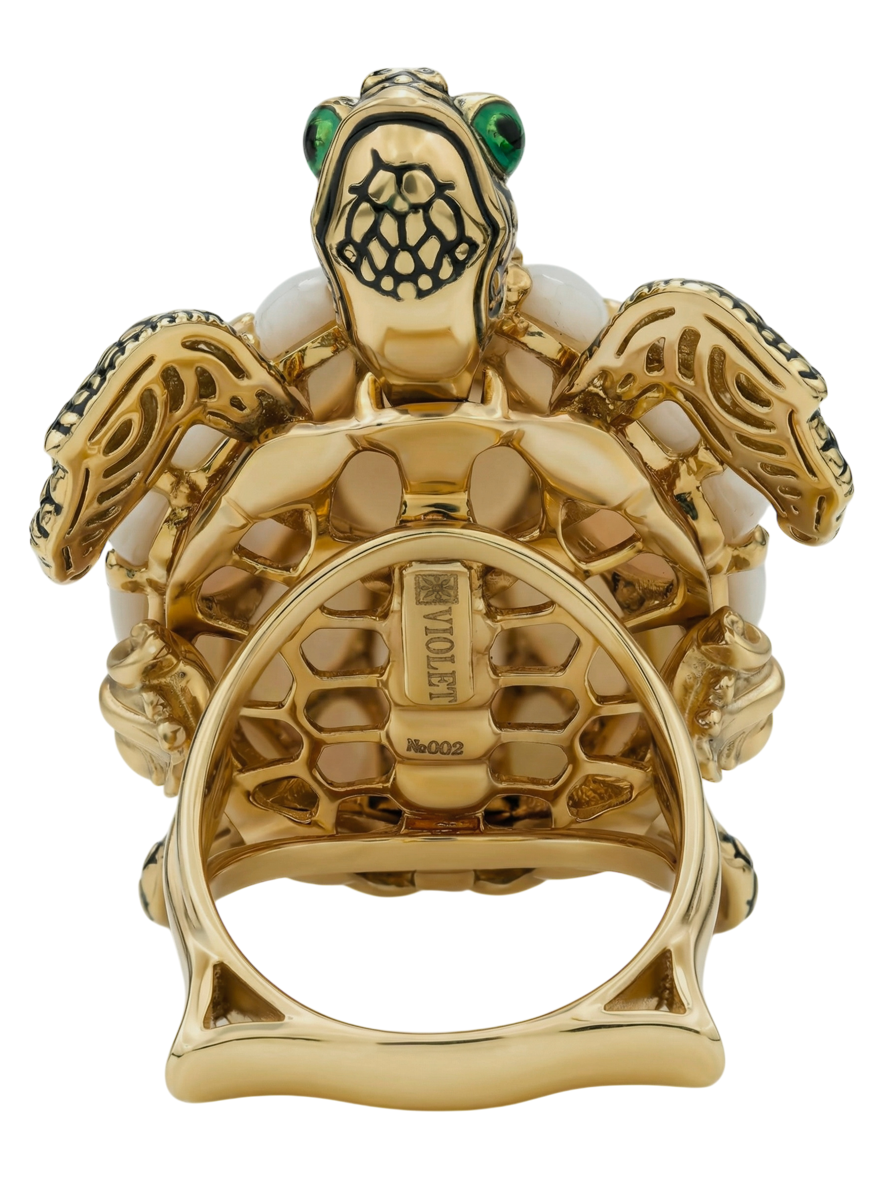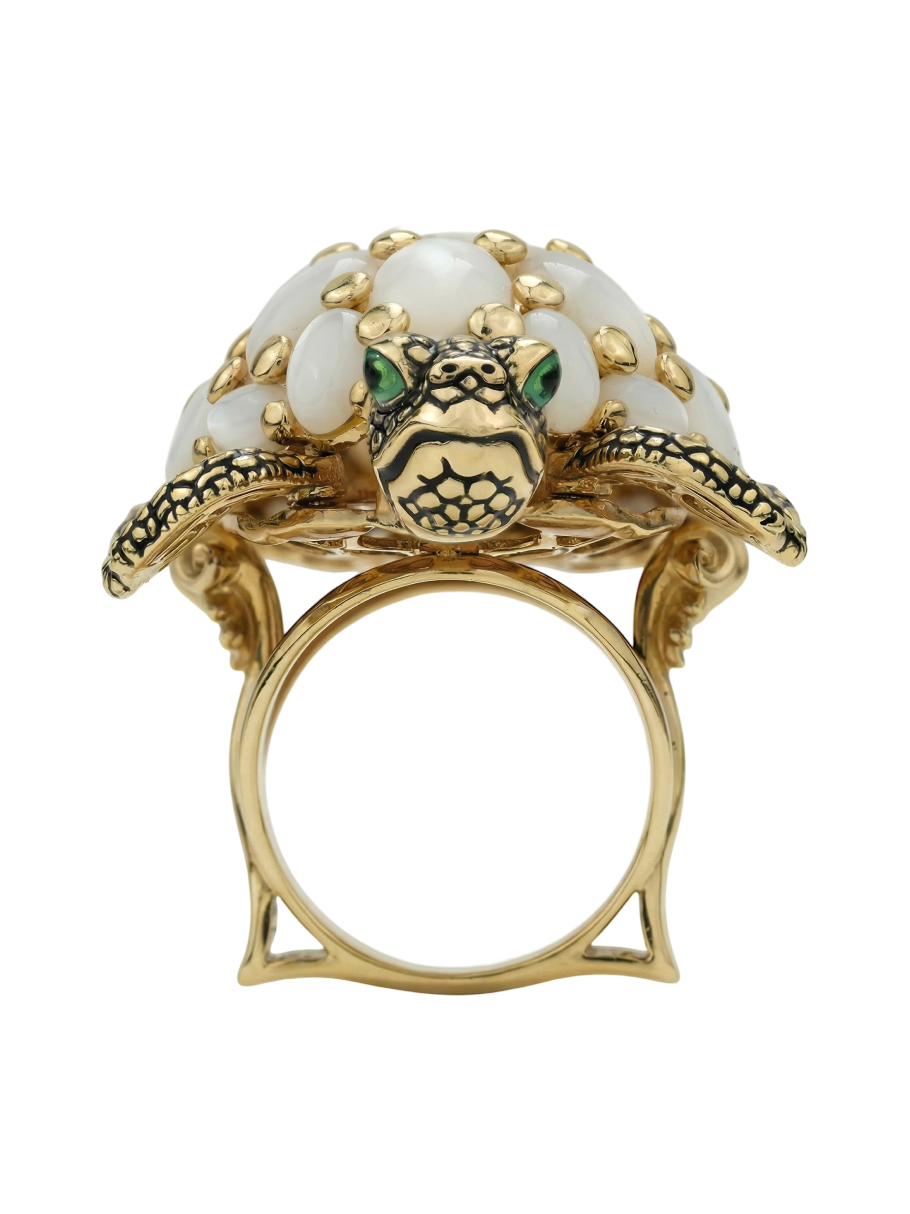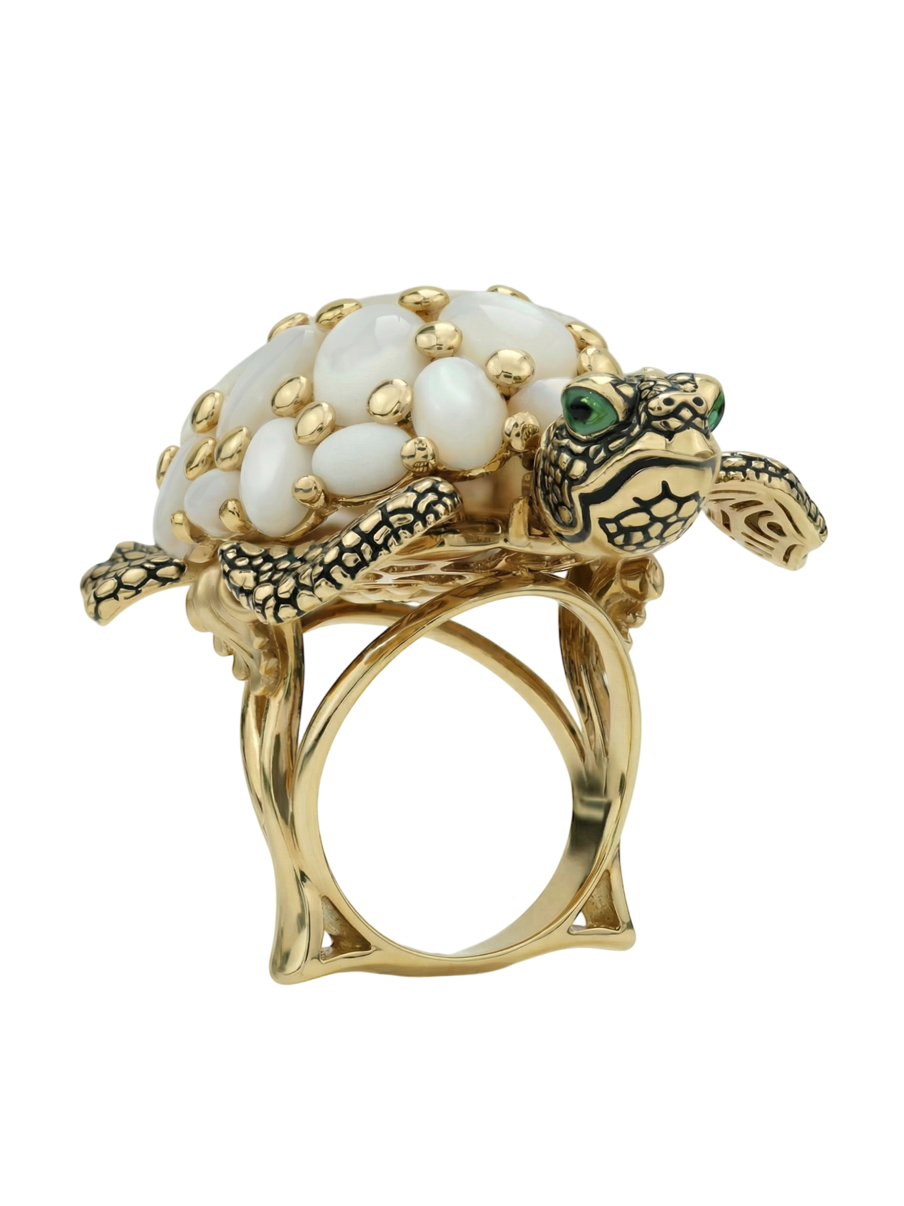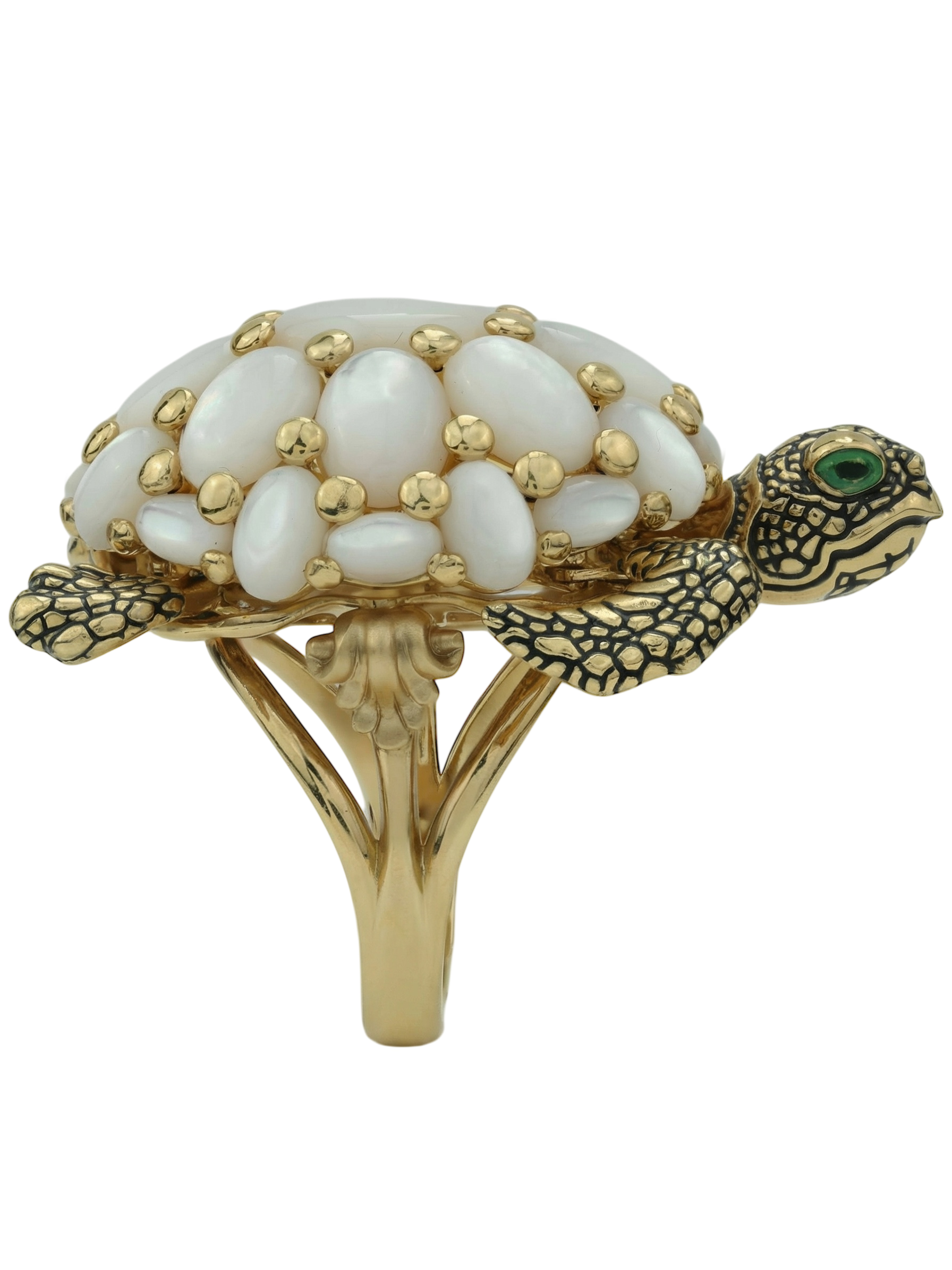 Кольцо из лимонного золота 585 пробы c эмалью и перламутром