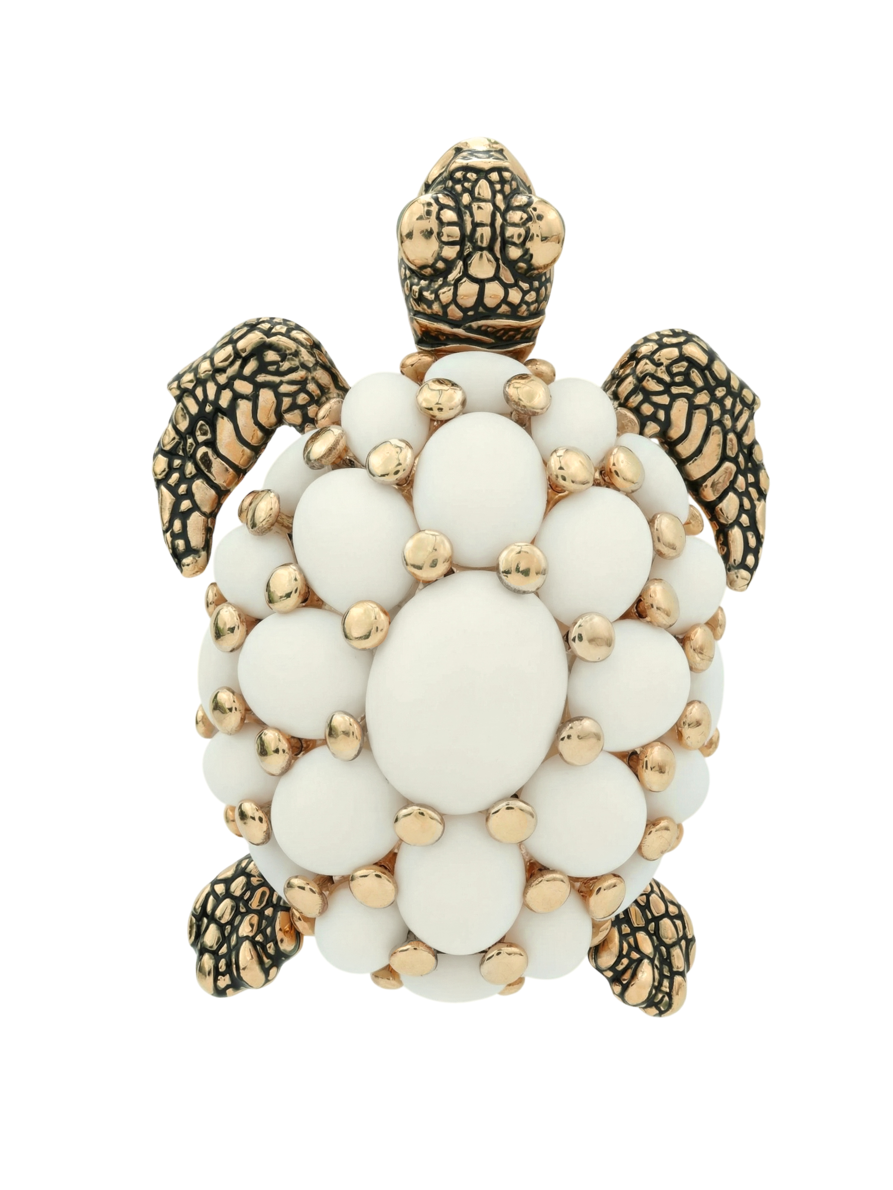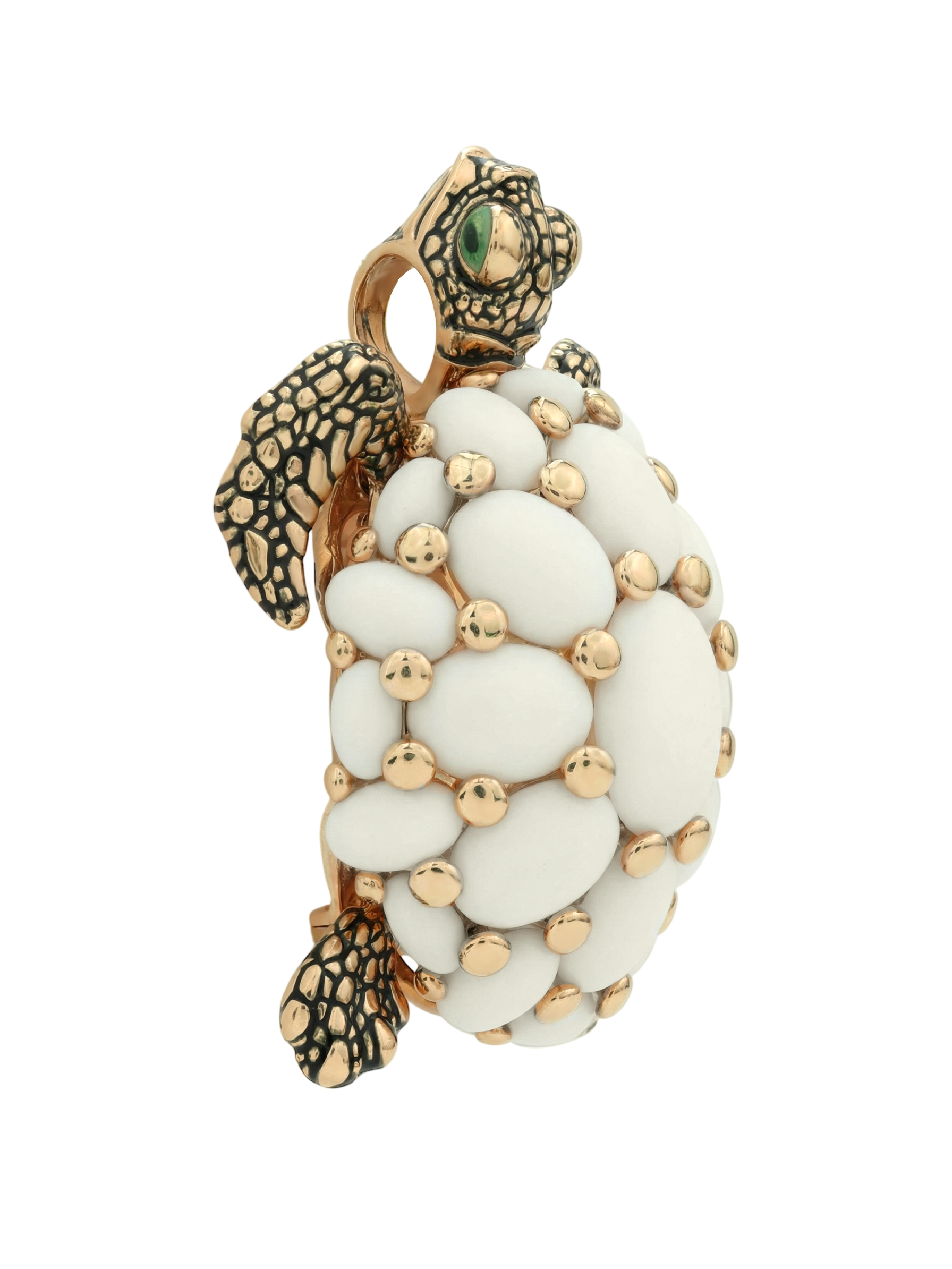 Брошь-подвеска из красного золота 585 пробы c эмалью и бивнем мамонта