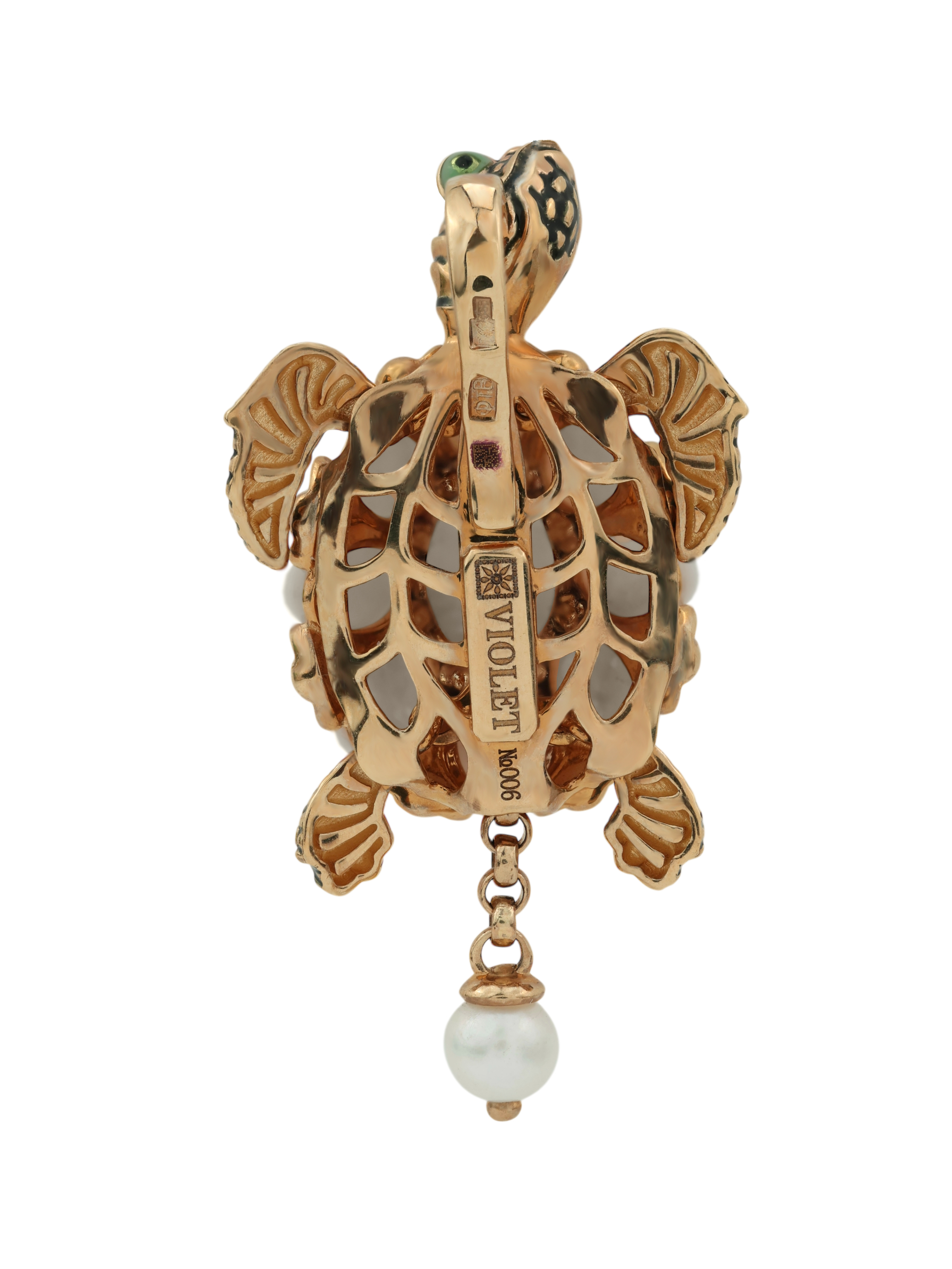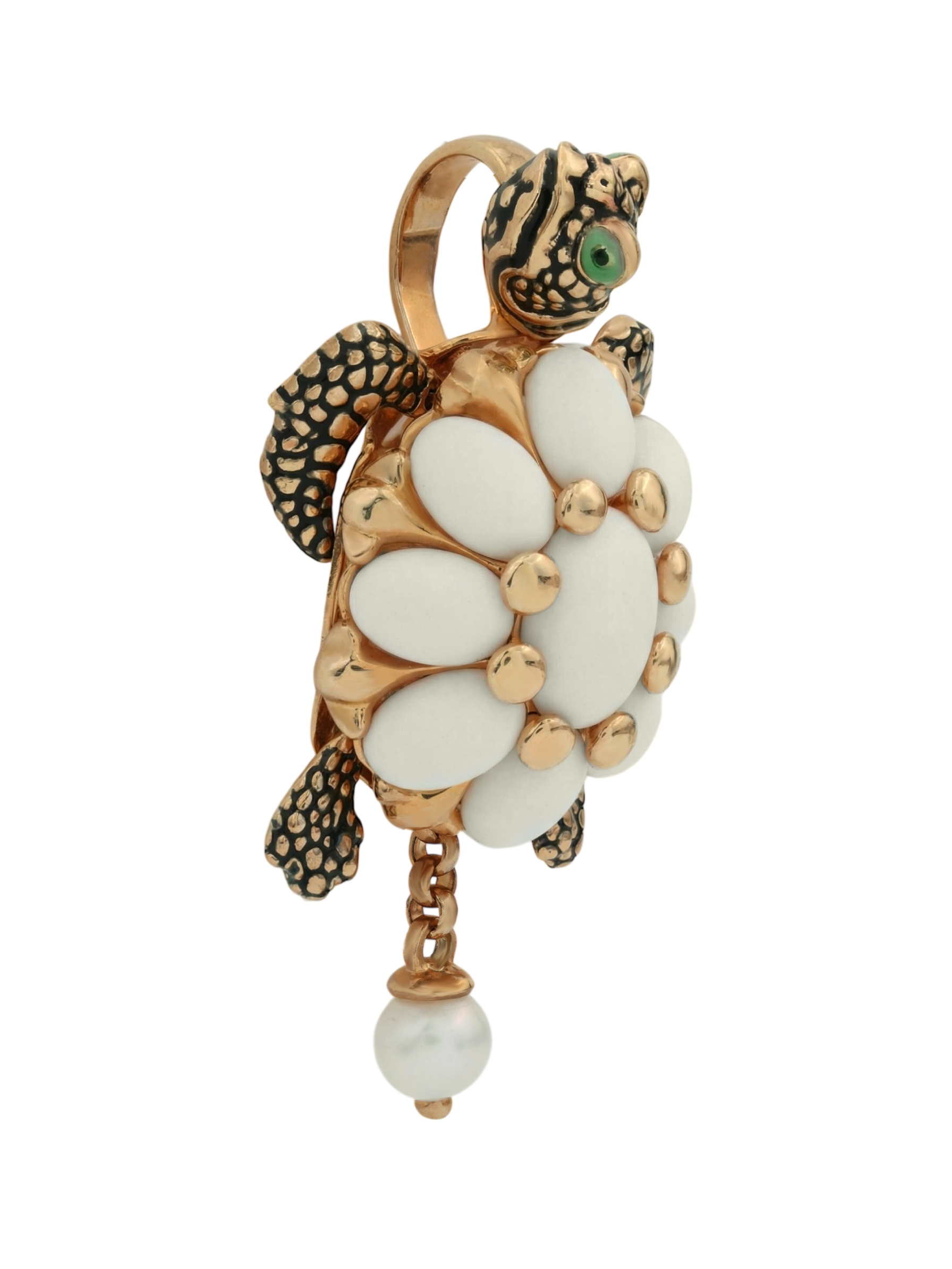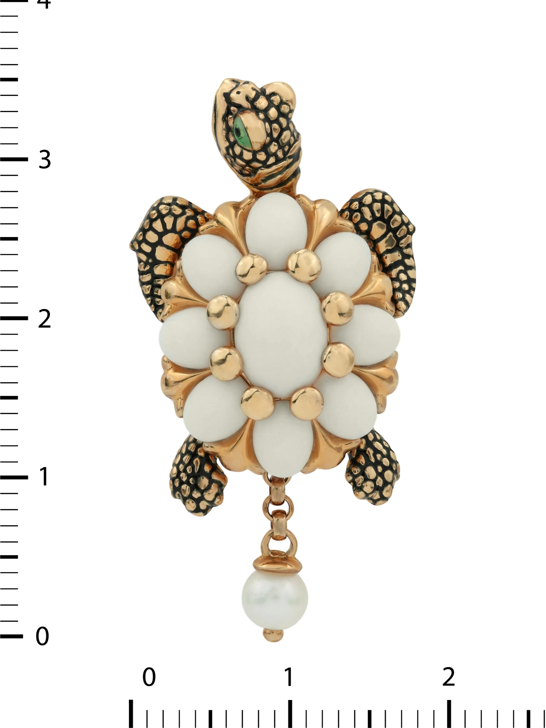 Подвеска из красного золота 585 пробы c эмалью, жемчугом и бивнем мамонта
