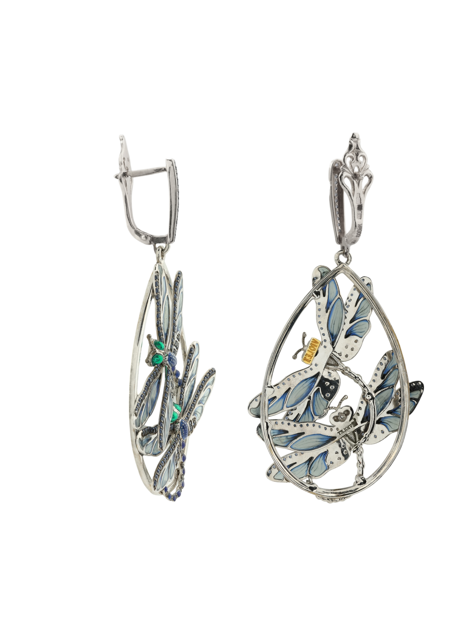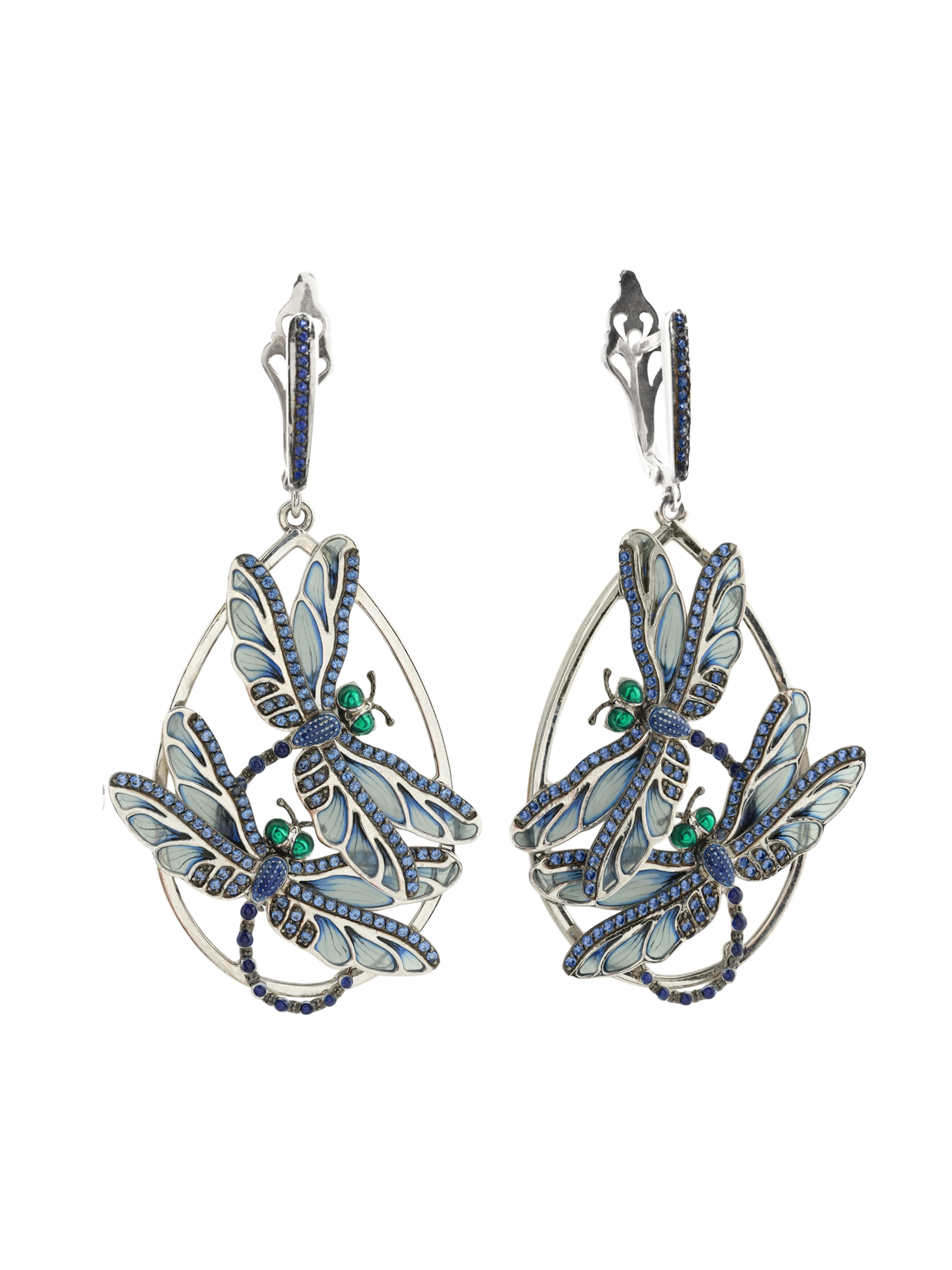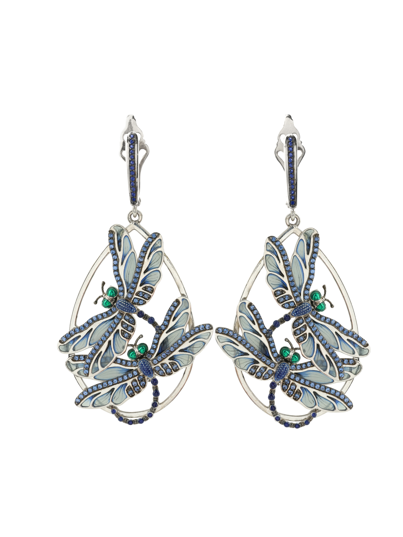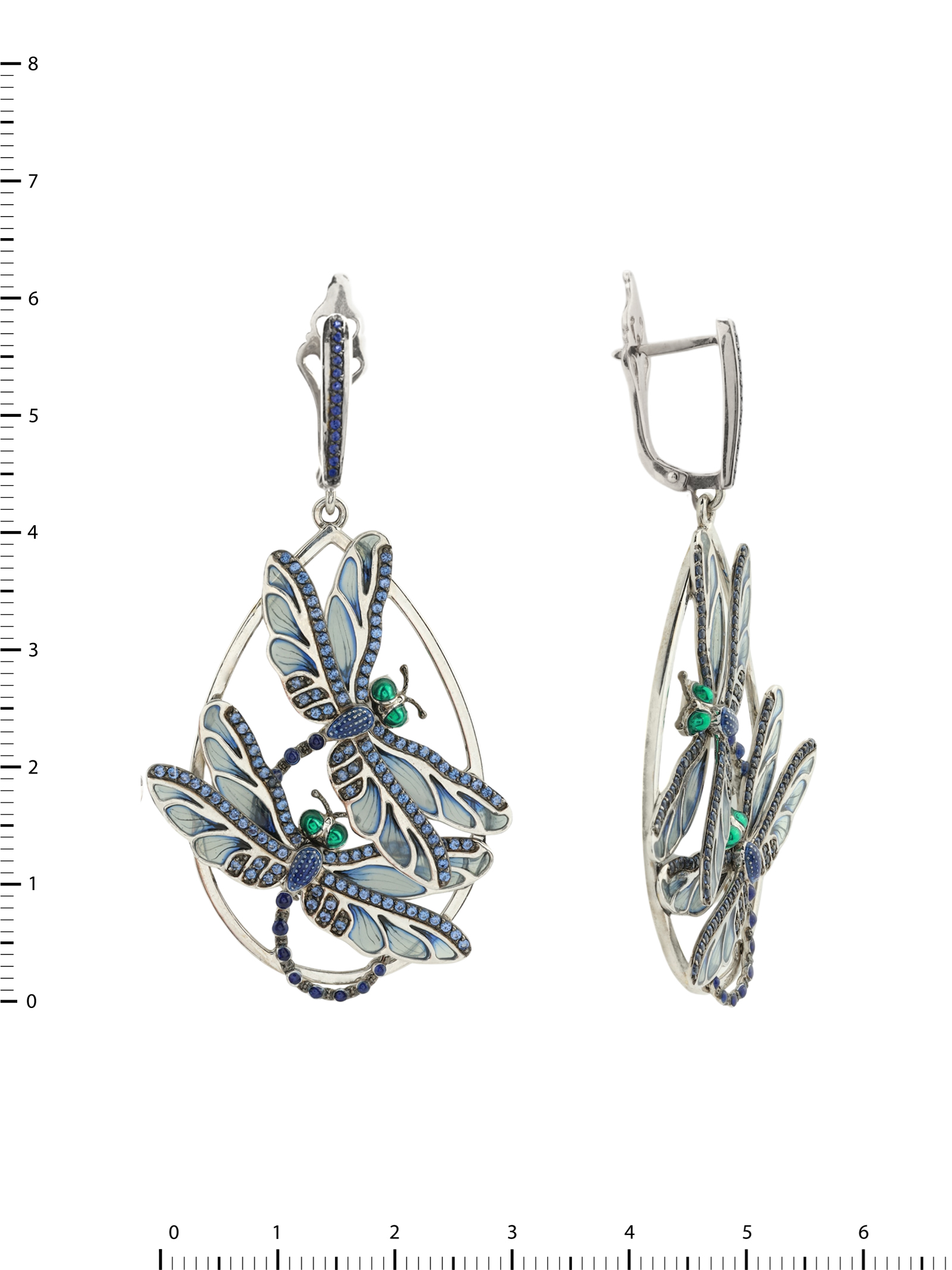 Серьги из белого золота 585 пробы c сапфиром и эмалью