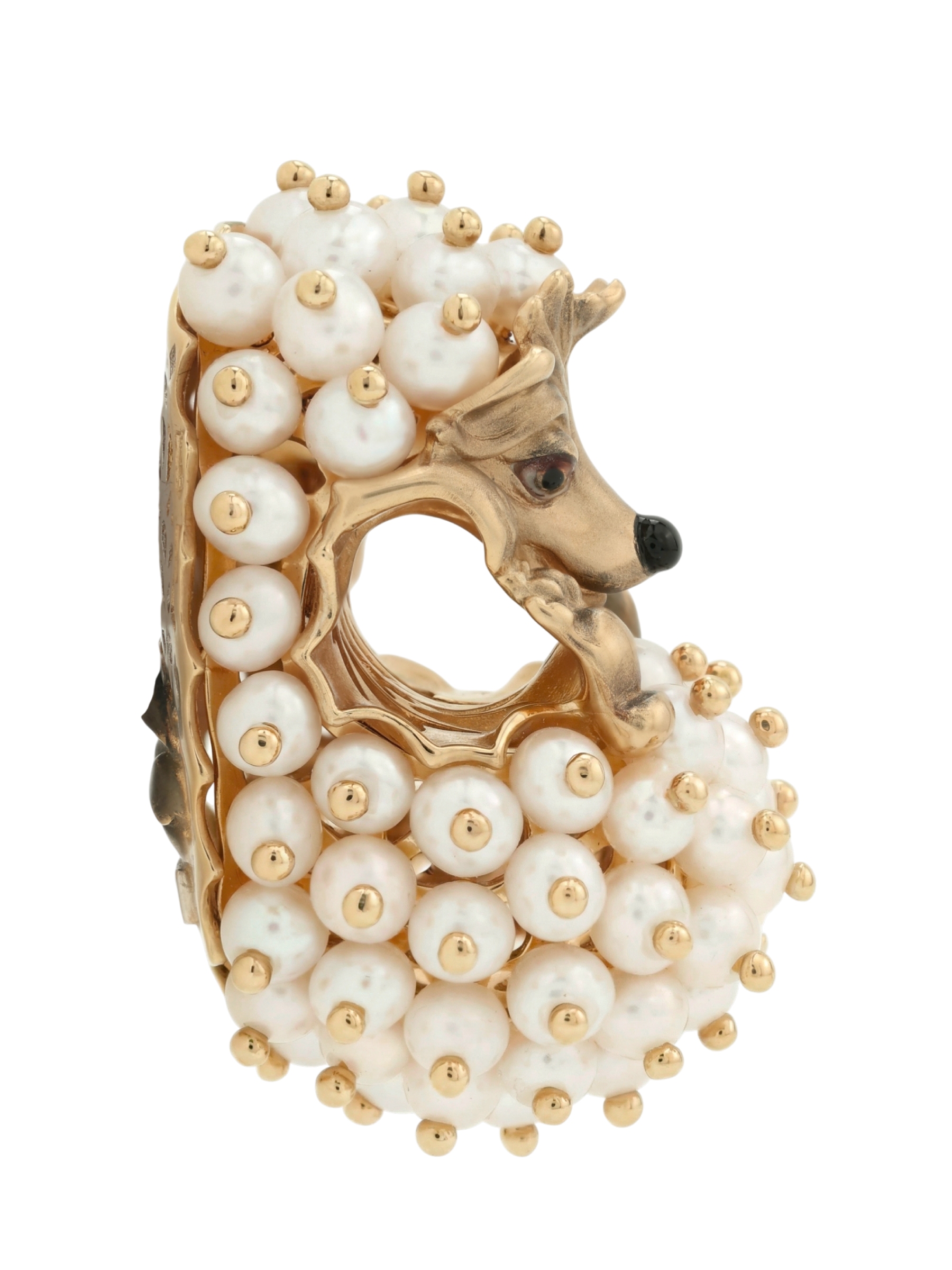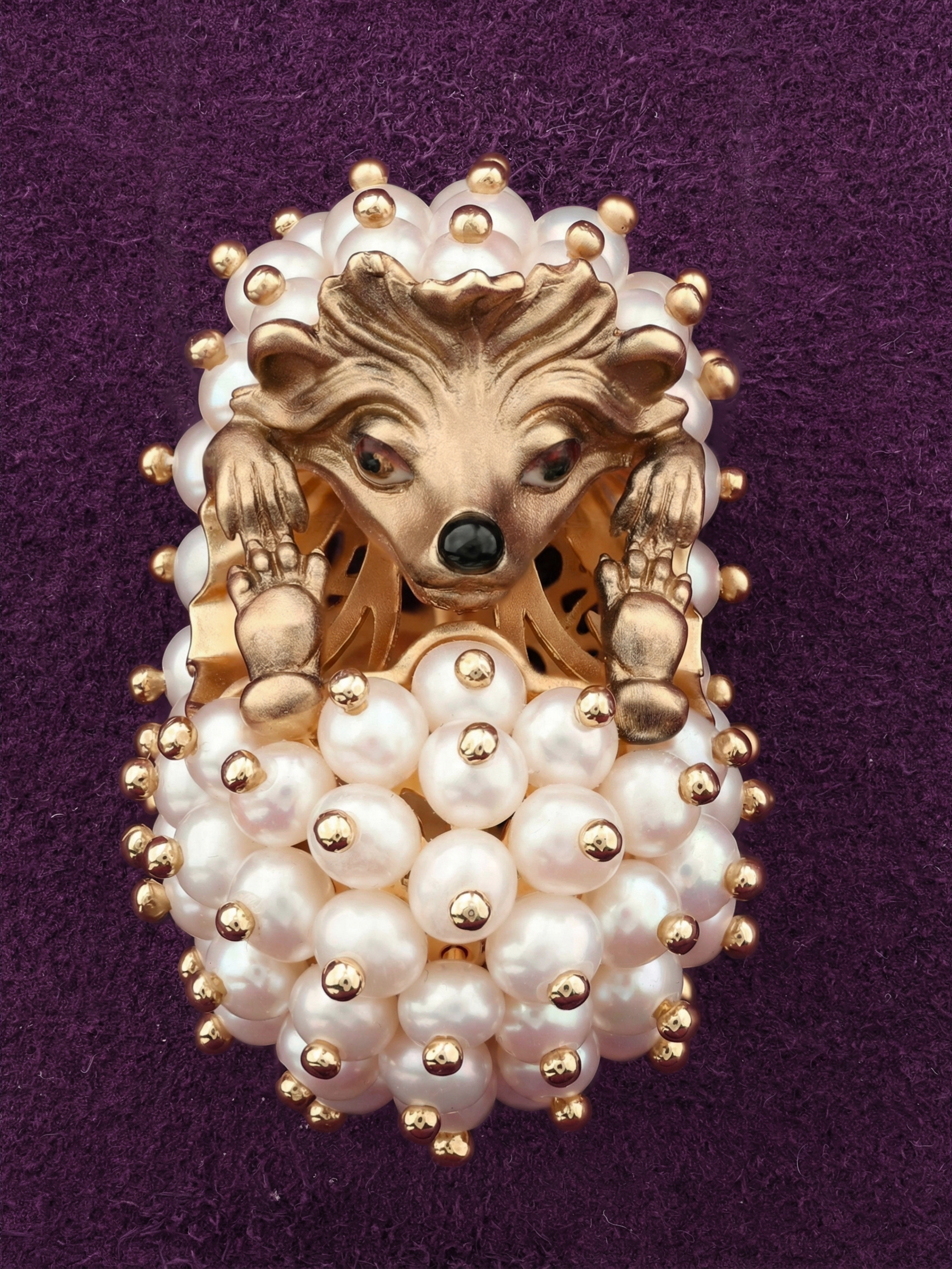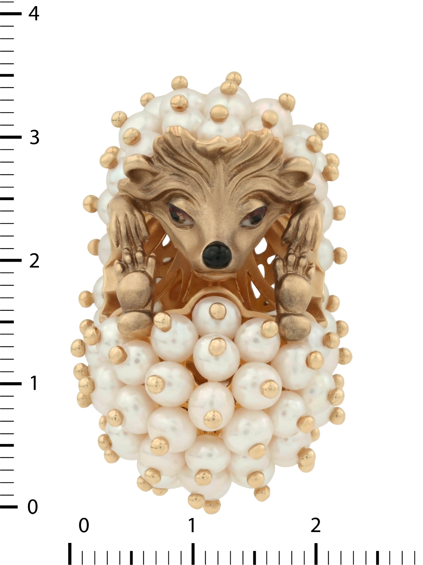 Подвеска из красного золота 585 пробы c эмалью и жемчугом
