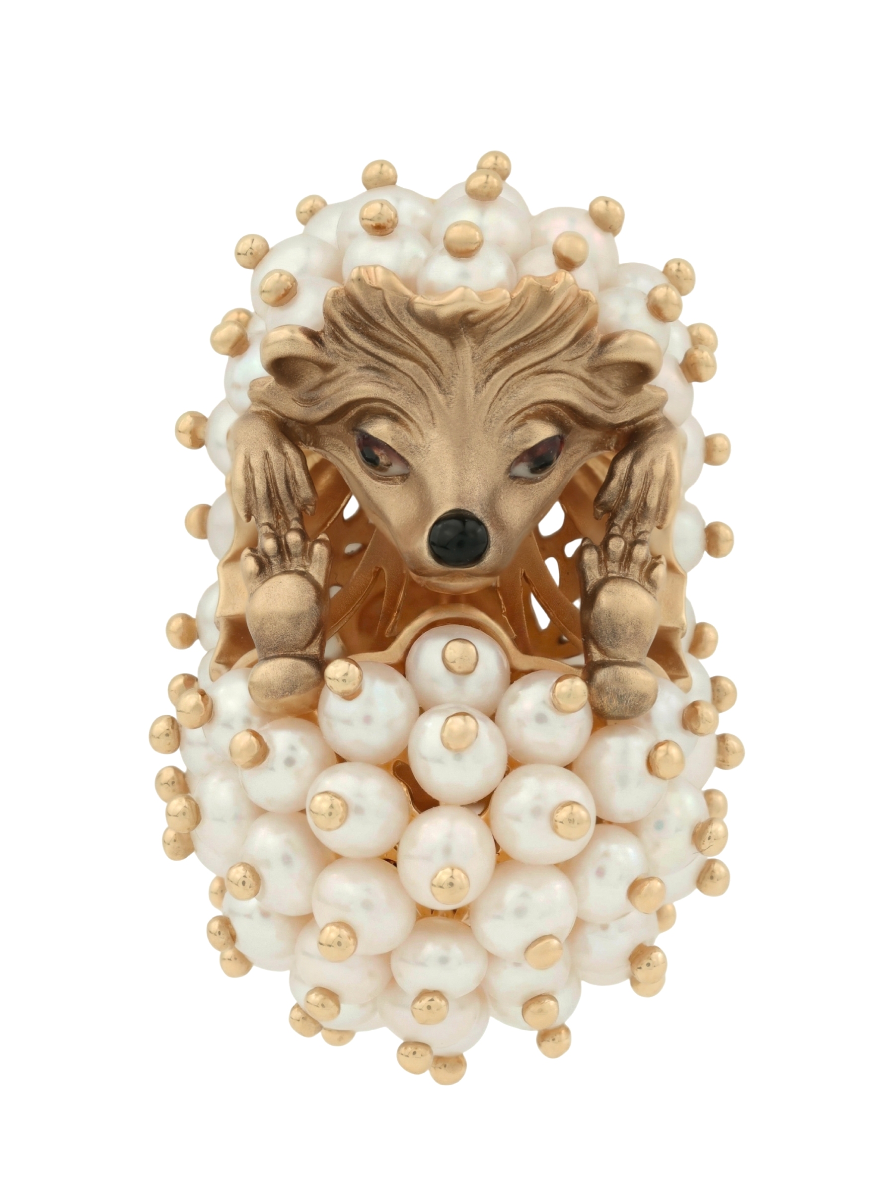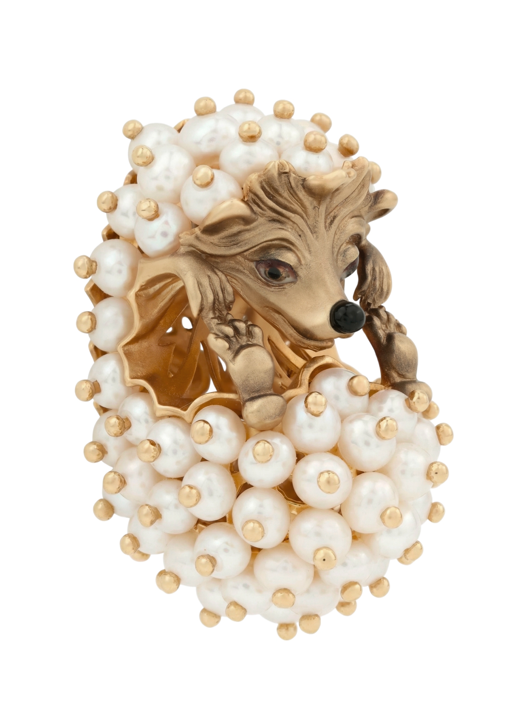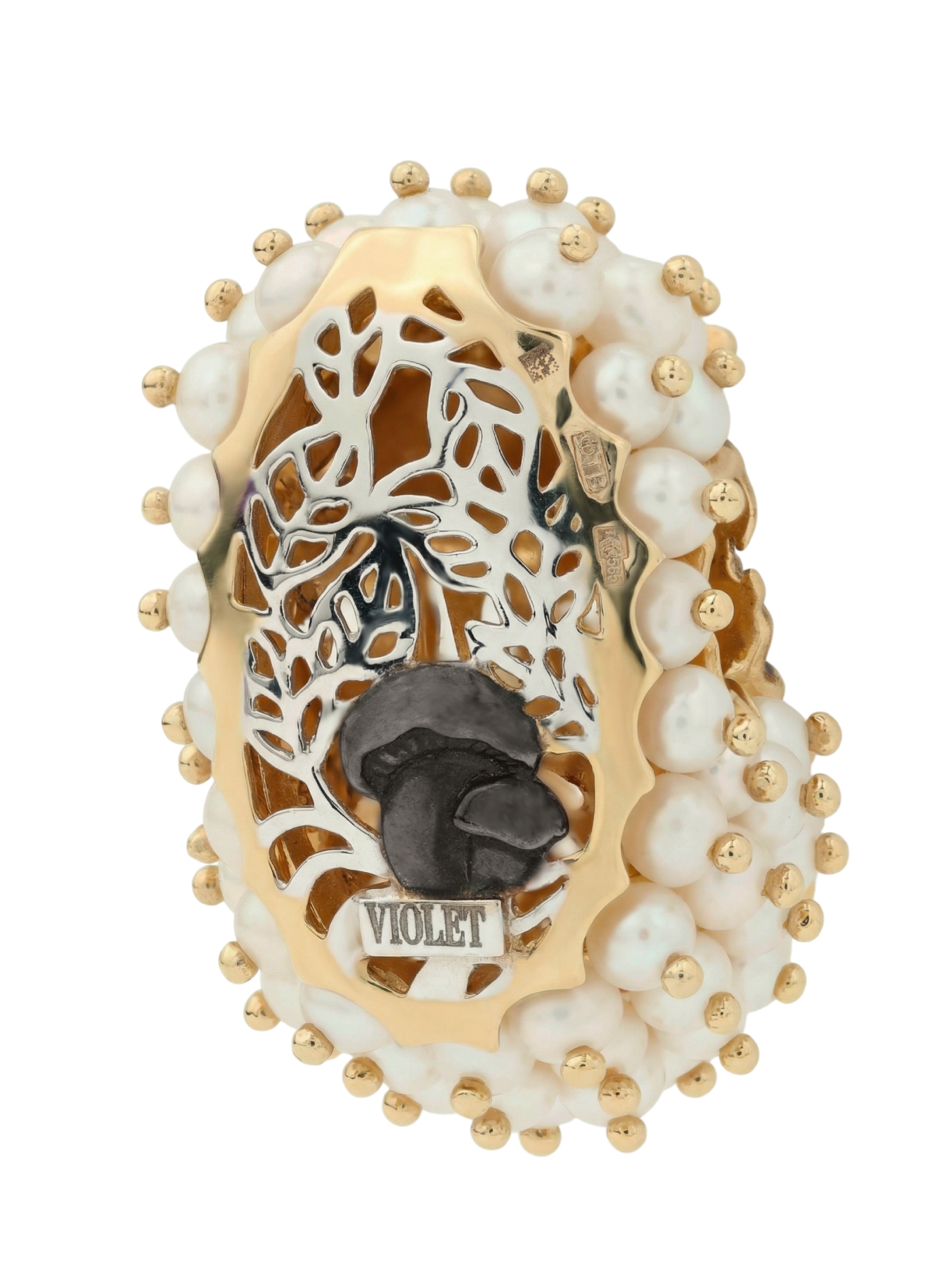 Подвеска из красного золота 585 пробы c эмалью и жемчугом