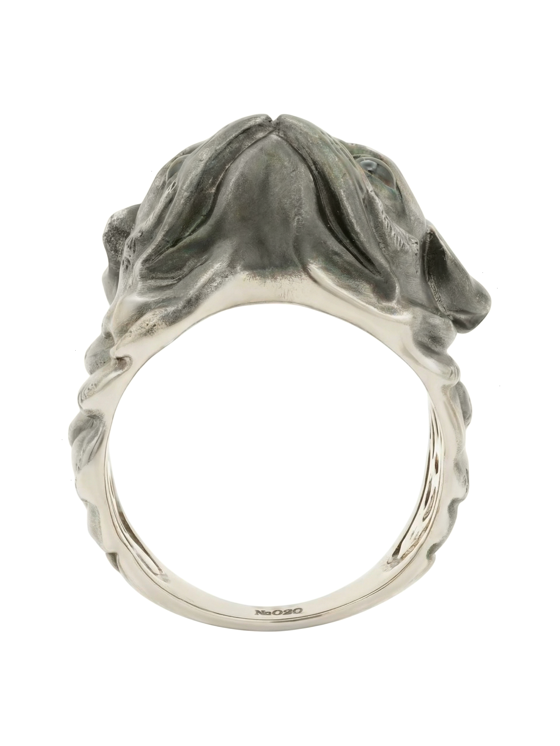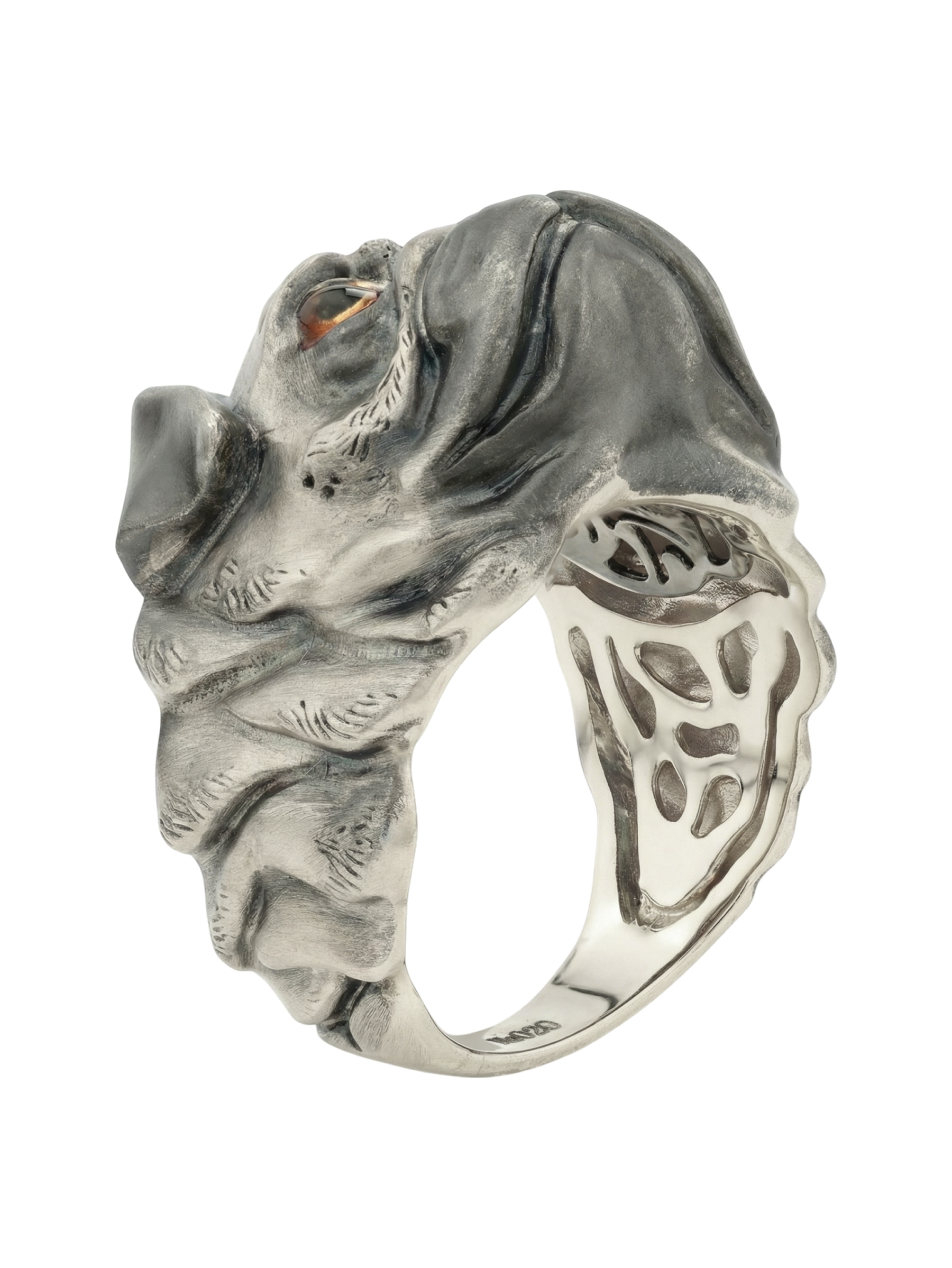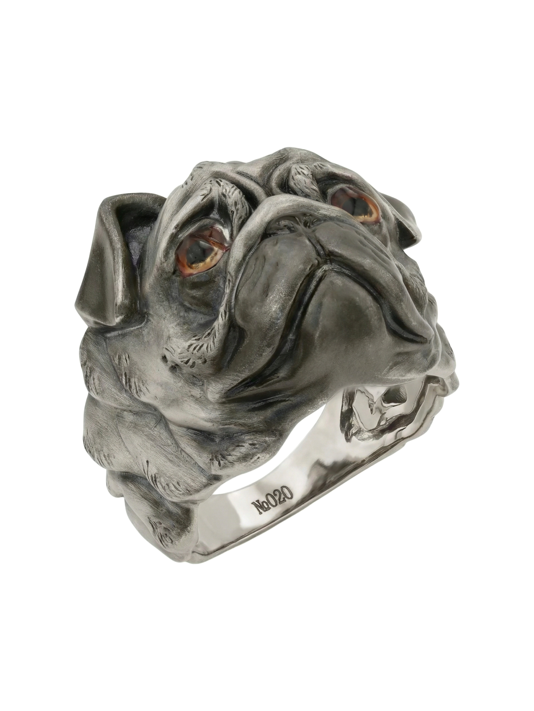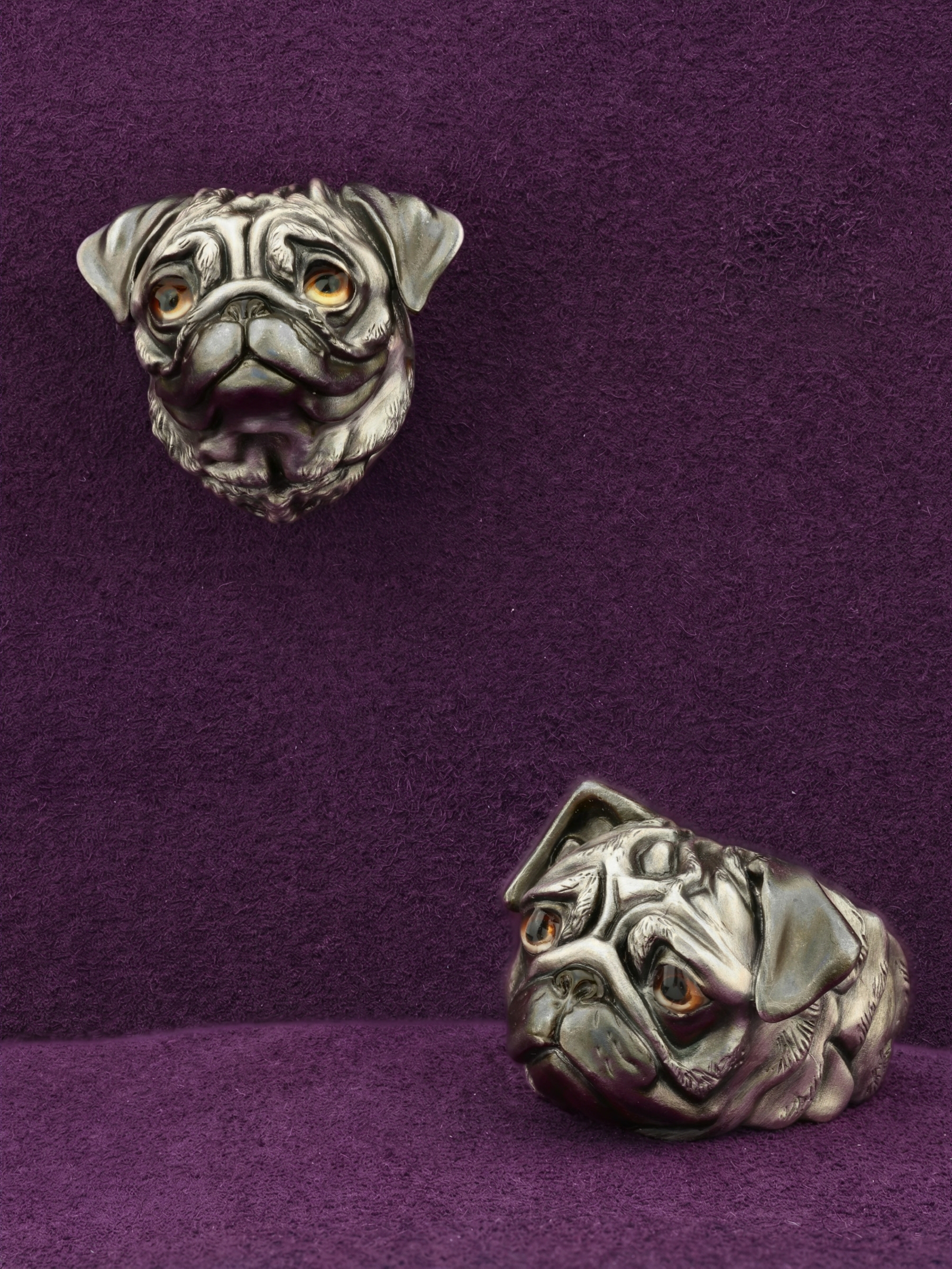 Оригинальное кольцо из белого золота 585 пробы станет ярким акцентом вашего образа и настоящей находкой для ценителей необычных ювелирных украшений. Изделие выполнено в эффектном анималистичном дизайне, детально передающем милую мордочку мопса. Художественное исполнение подчеркивает контраст металла и выразительные детали, создавая живой и узнаваемый облик любимой породы собак.