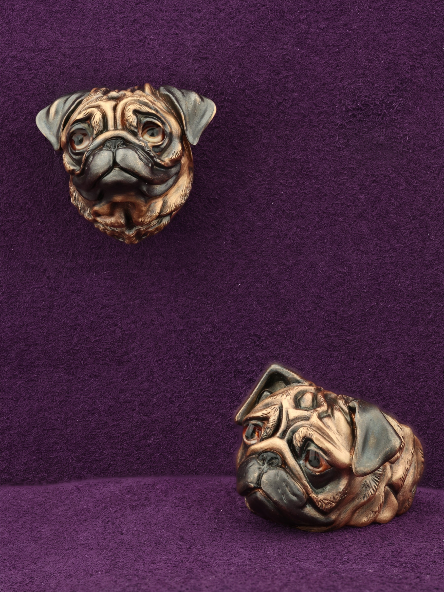 Мастерство ювелиров позволило передать живой характер и обаяние этой породы собак. Особый шарм изделию придает вставка из черной эмали, которая подчеркивает рельефные линии и создает красивый контраст с теплым оттенком красного золота. Такая техника обработки делает украшение глубоким и объемным. Подвеска отлично сочетается с другими аксессуарами, что позволяет составлять стильные комплекты, добавляя в гардероб нотку иронии и безупречного вкуса. Выбирая данную модель из коллекции De luxe Premium — Мопсы, вы приобретаете не просто украшение, а аксессуар, который всегда будет выглядеть актуально и привлекательно.
