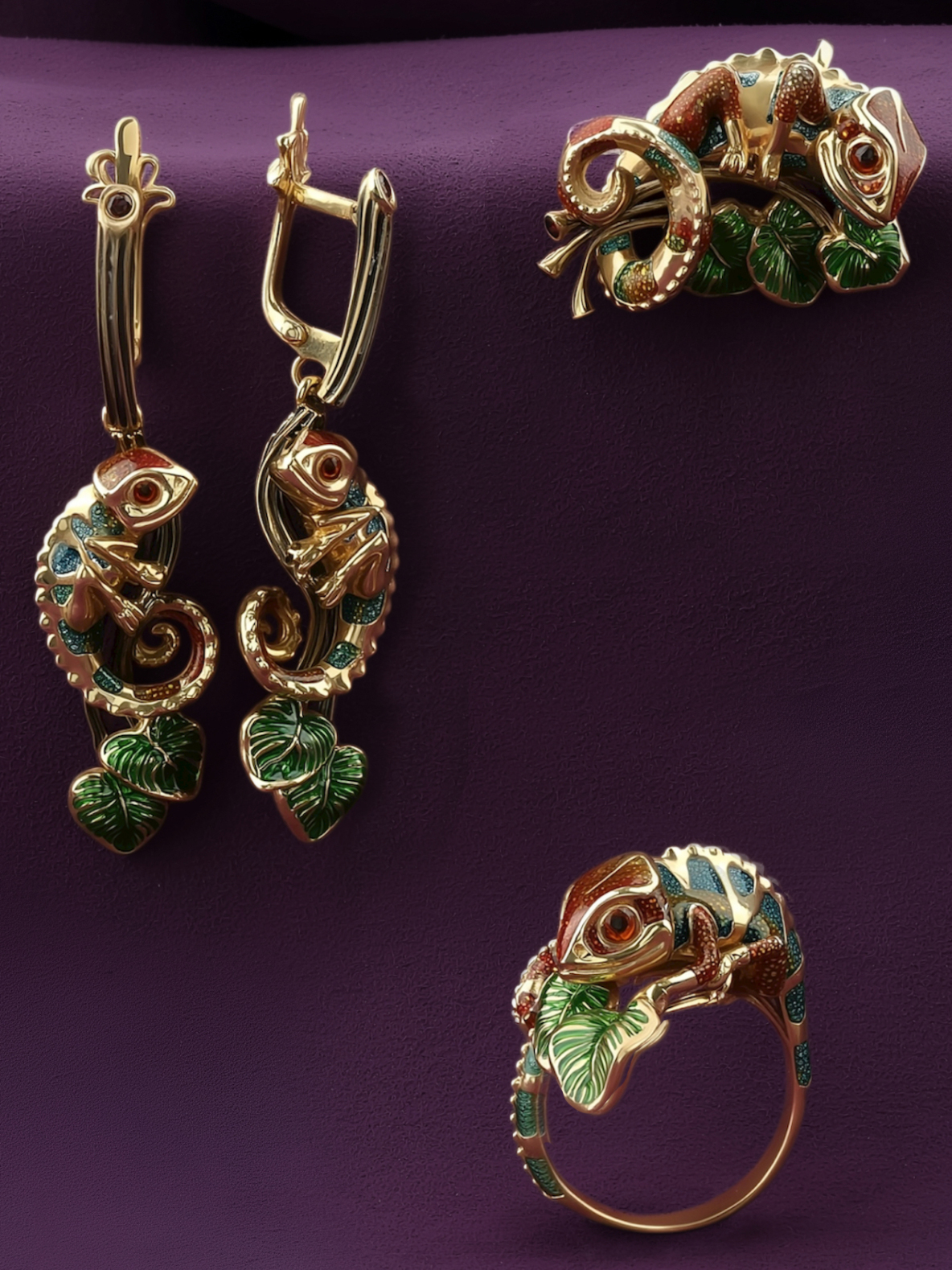 Представляем вашему вниманию эксклюзивные серьги из лимонного золота 585 пробы, входящие в коллекцию De luxe Premium — Хамелеоны. Это украшение создано для тех, кто ценит в ювелирном искусстве смелые идеи и художественную выразительность. Центральным элементом композиции стал оригинальный дизайн в форме грациозных хамелеонов, замерших на золотых ветвях.