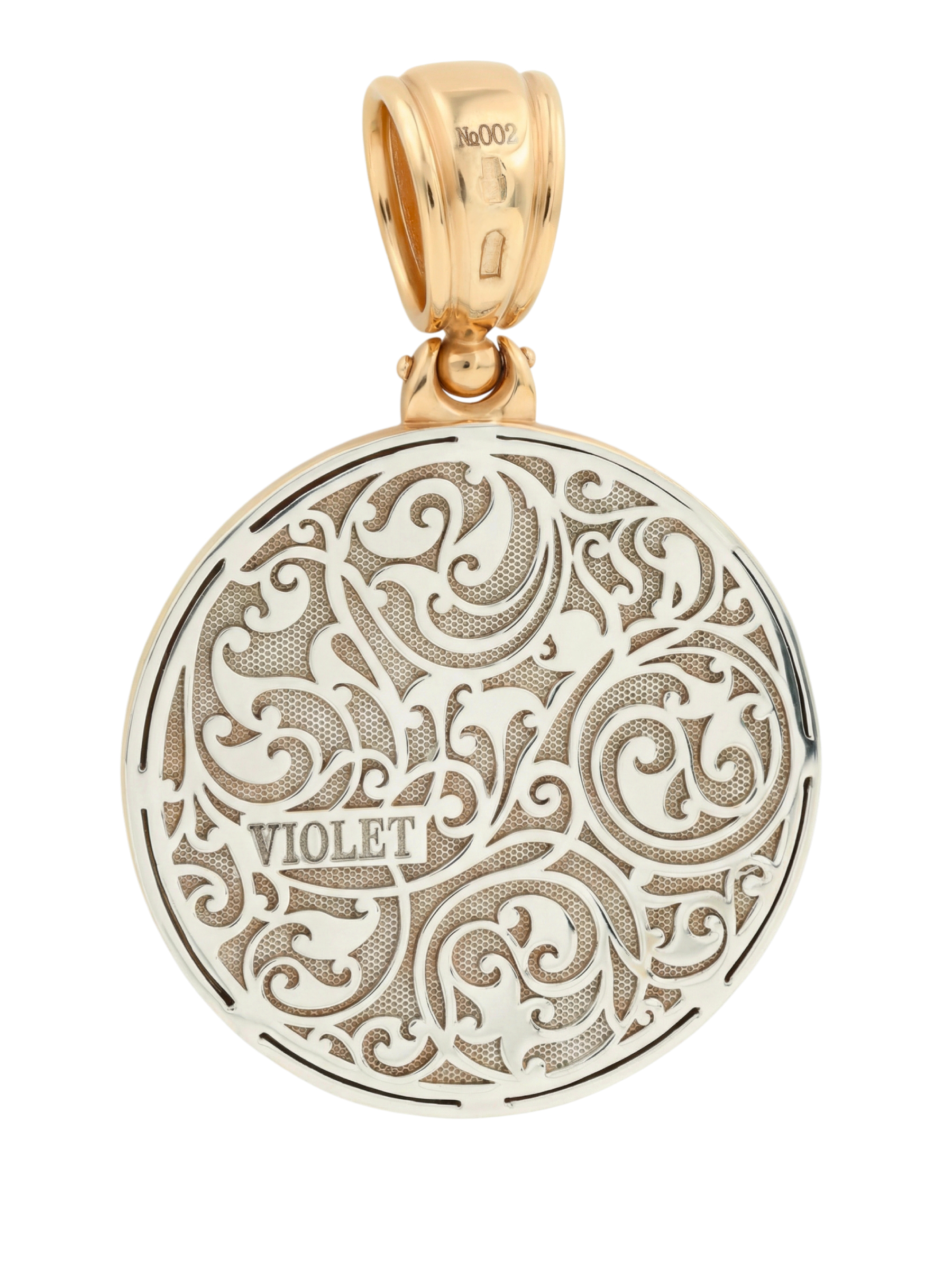 Основа украшения изготовлена из благородного красного золота 585 пробы, которое эффектно обрамляет центральный элемент. В качестве вставки использована яркая и стойкая разноцветная эмаль, создающая выразительный фон для основной фигуры. Тщательная проработка рельефа придает подвеске объем и делает ее важным акцентом любого образа.