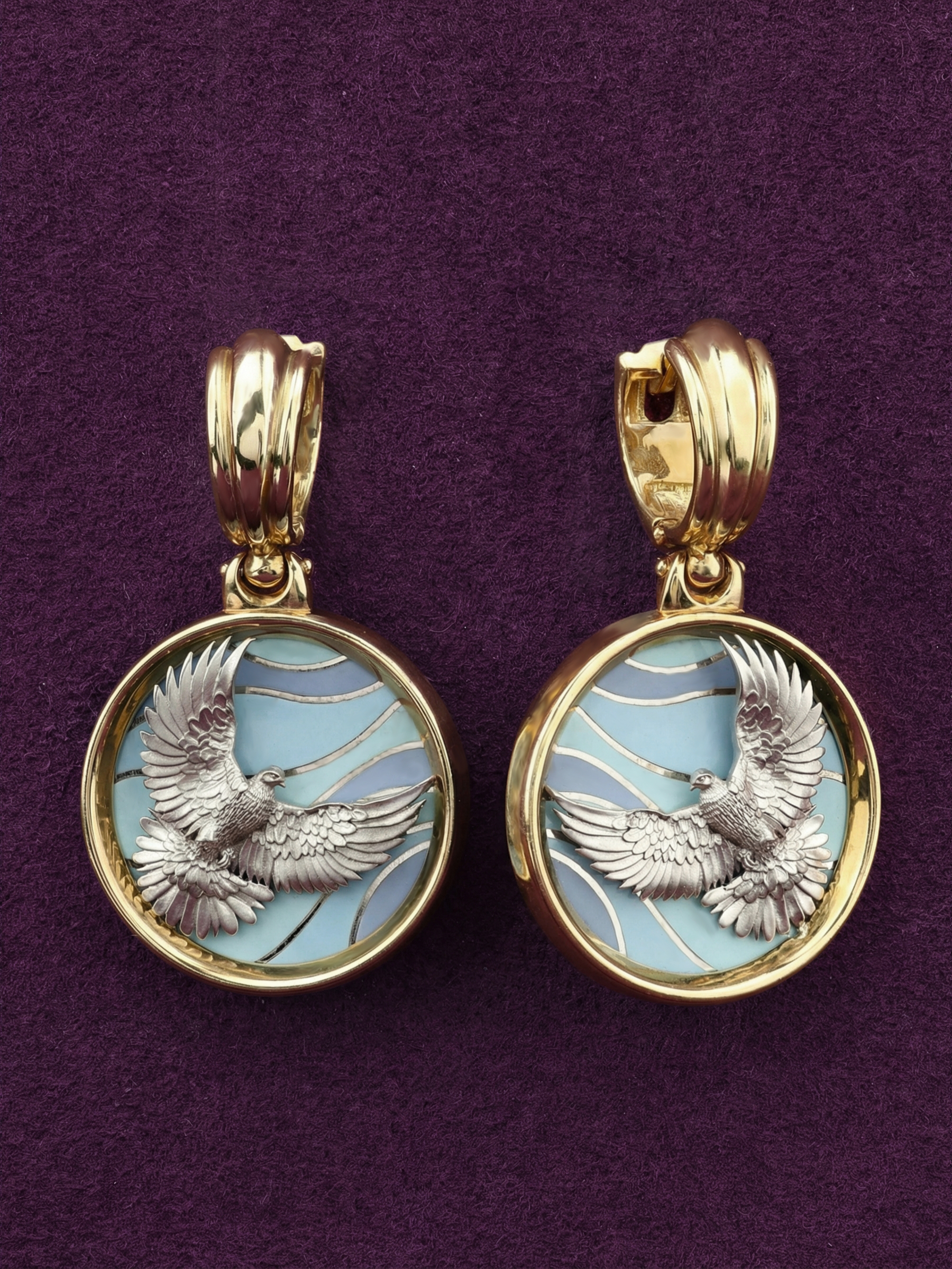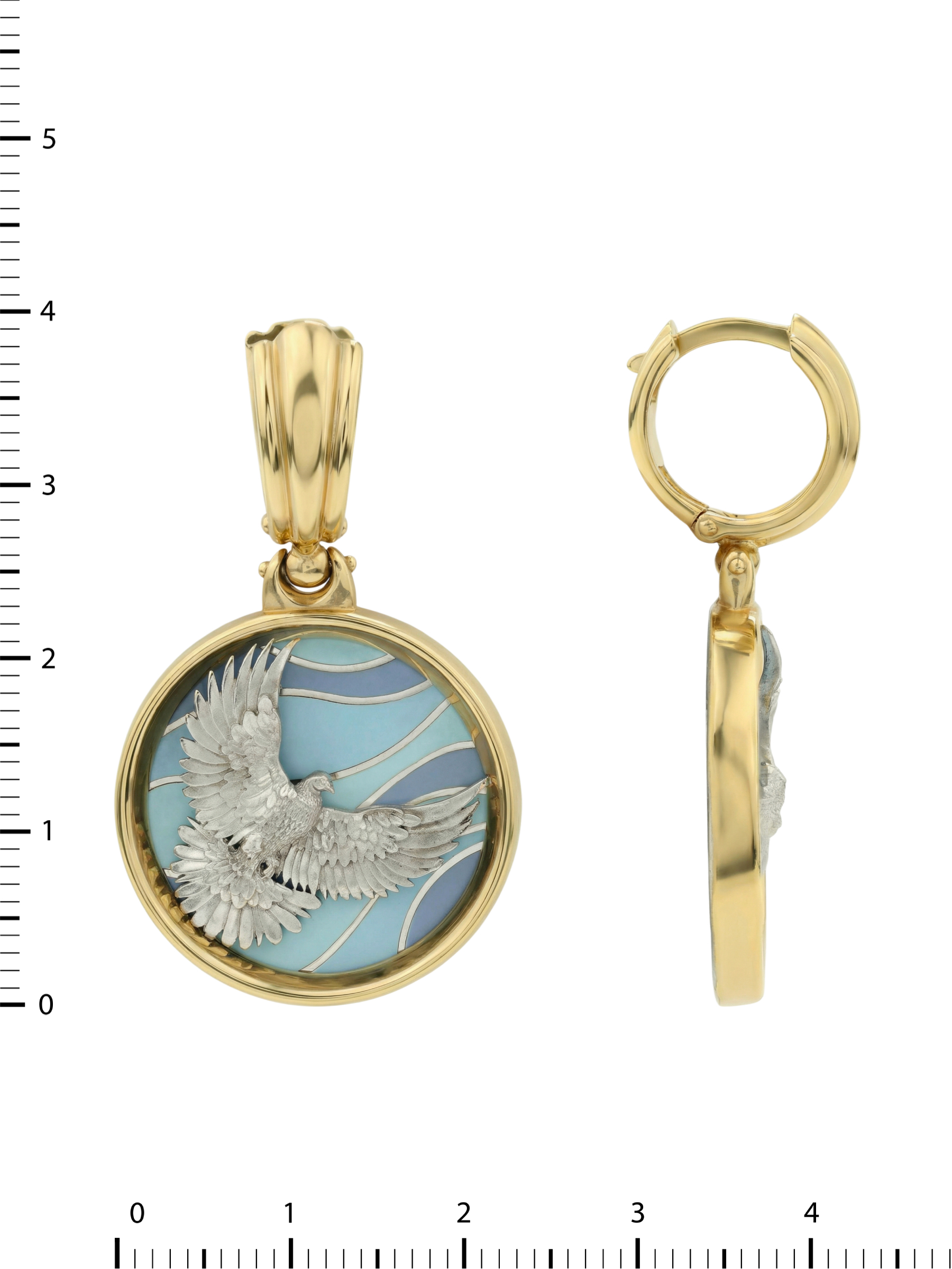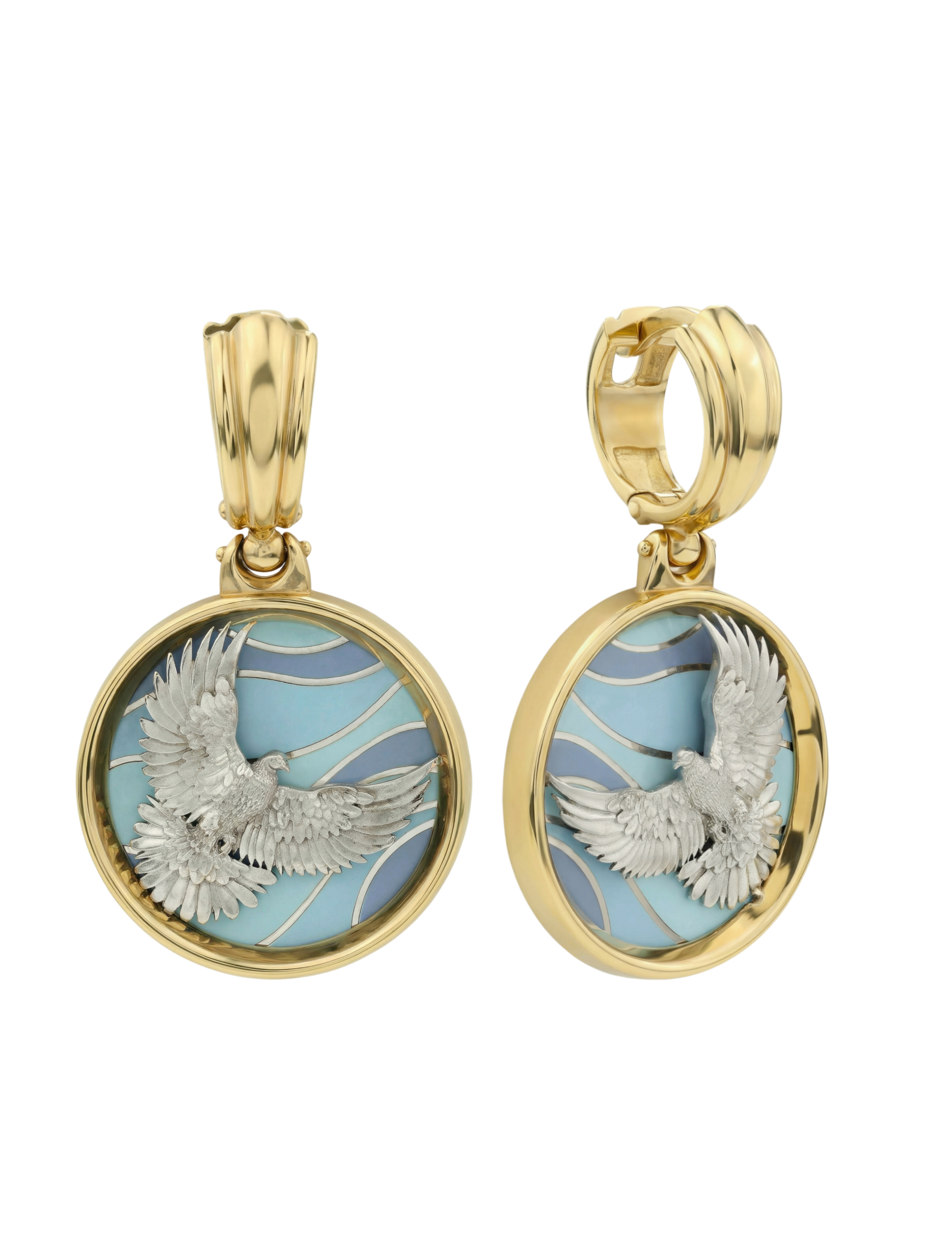 Серьги из лимонного золота 585 пробы из коллекции De luxe Premium — Голубь мира представляют собой гармоничное сочетание ювелирного мастерства и глубокого символизма. Дизайн изделия вдохновлен образом птицы — голубь, воплощенный в металле, становится центральным элементом композиции, создавая ощущение свободы и легкости. Круглая форма изделия дополнена детальной проработкой оперения, что делает украшение выразительным и запоминающимся.