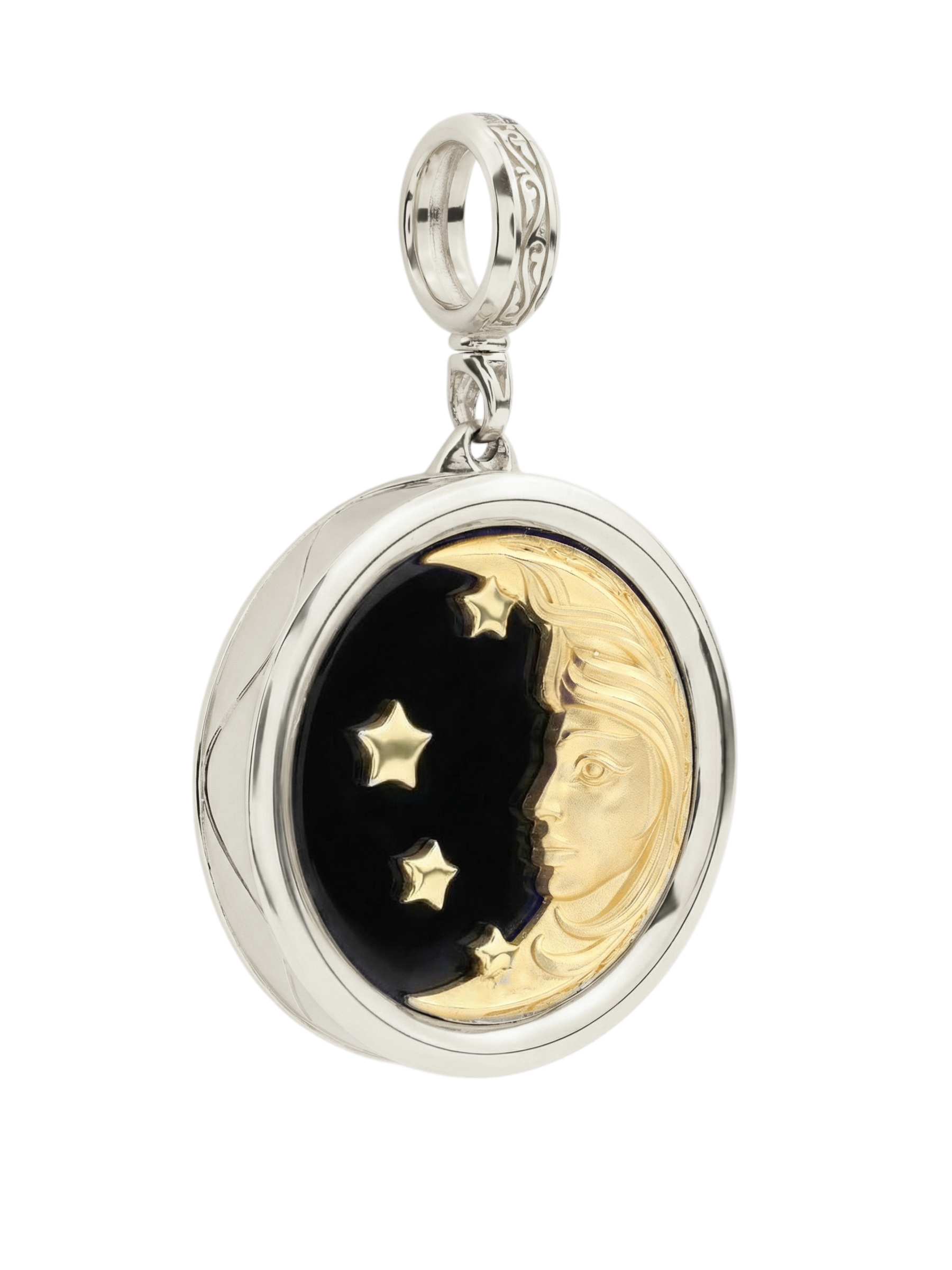Это универсальное украшение одинаково гармонично смотрится как на женщинах, так и на мужчинах, подчеркивая индивидуальность и вкус своего обладателя. Белый цвет металла придает изделию благородный и холодный блеск, который идеально сочетается с темной глубиной оникса. Данная подвеска относится к категории изделий, которые могут стать частью изысканного комплекта, если дополнить ее другими украшениями в схожем стиле. Лаконичная форма круга делает это изделие уместным акцентом для любого случая — от деловой встречи до вечернего выхода. Подвеска привлекает внимание детальной проработкой элементов, превращая ювелирное украшение в настоящее произведение искусства.