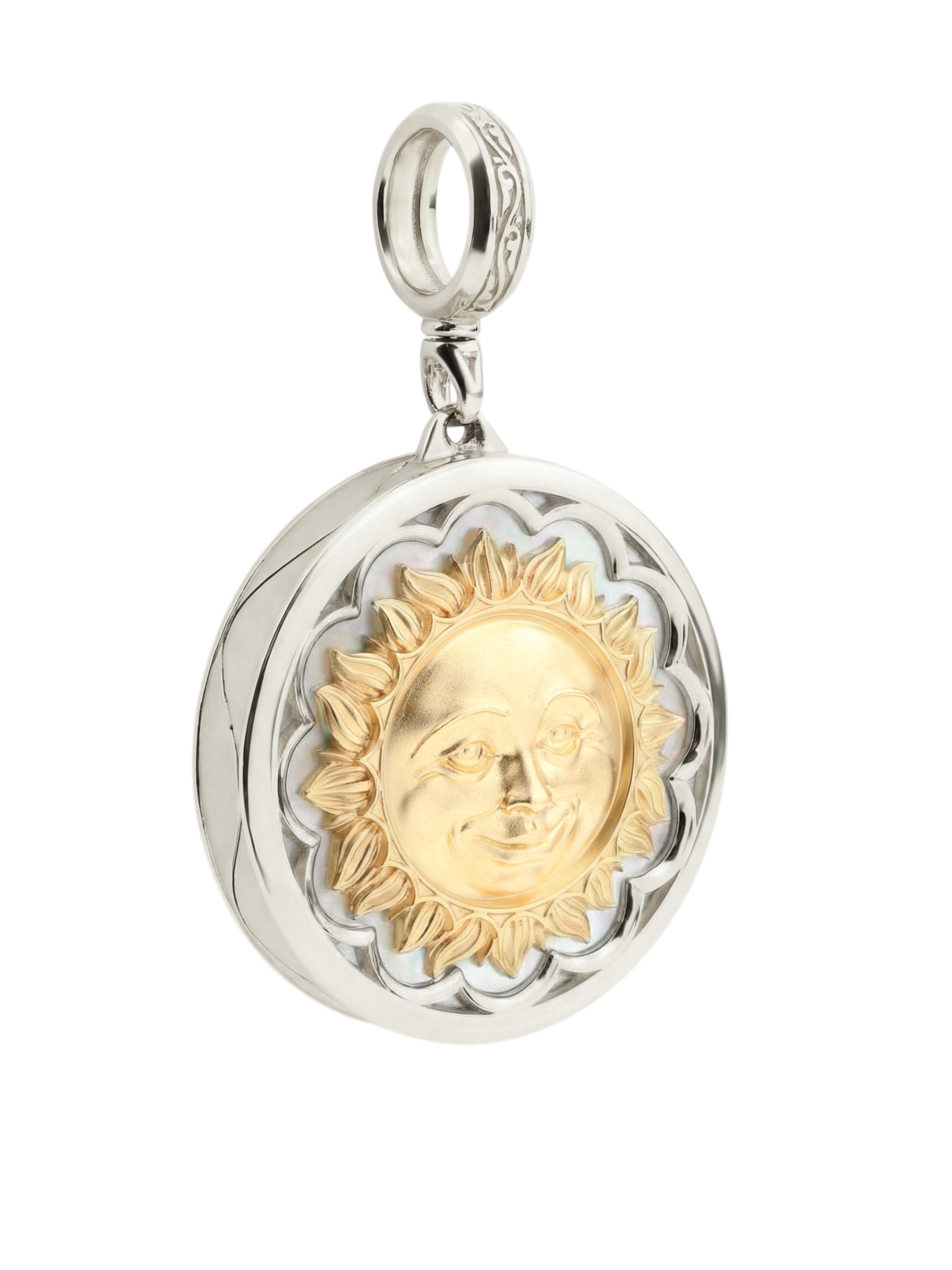 Элегантная подвеска из белого золота 585 пробы станет утонченным дополнением вашего образа, воплощая в себе мистическую эстетику и мастерство ювелирного искусства. Изделие, представленное в коллекции De luxe Premium — День и ночь, выполнено в оригинальном дизайне «Солнце/луна», который подчеркивает глубокую символику перехода дня в ночь. Центром композиции является круглая вставка, сочетающая в себе магию оникса черного цвета и нежное сияние перламутра, создавая эффектный контраст.