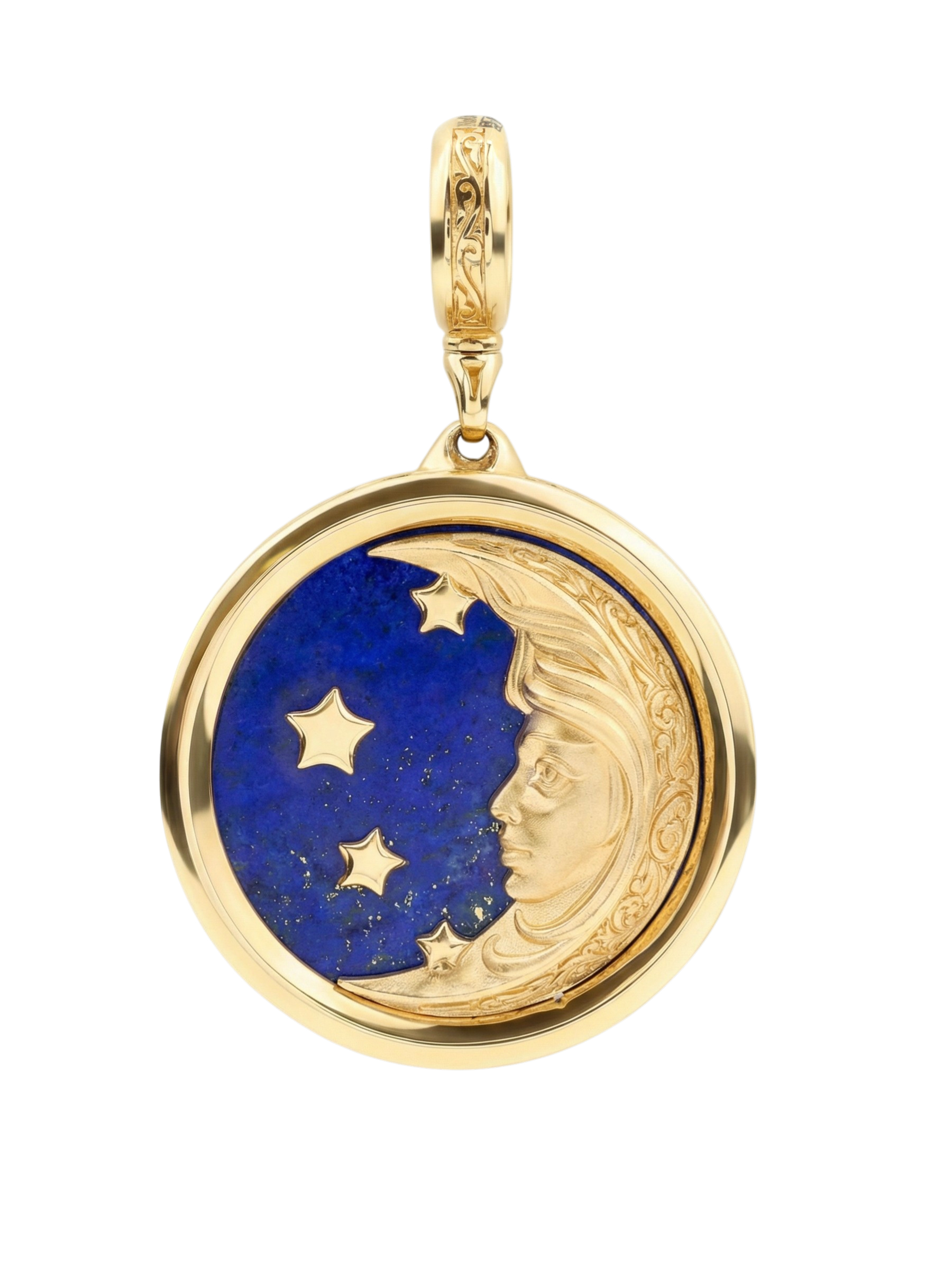 Элегантная подвеска из лимонного золота 585 пробы из коллекции De luxe Premium — День и ночь — это ювелирное украшение, воплощающее концепцию дня и ночи. Дизайн изделия объединяет в себе небесную символику: изящное изображение месяца с человеческим профилем и яркие звезды, выполненные в золоте, создают притягательный образ, который одинаково гармонично дополнит стиль как женщин, так и мужчин.