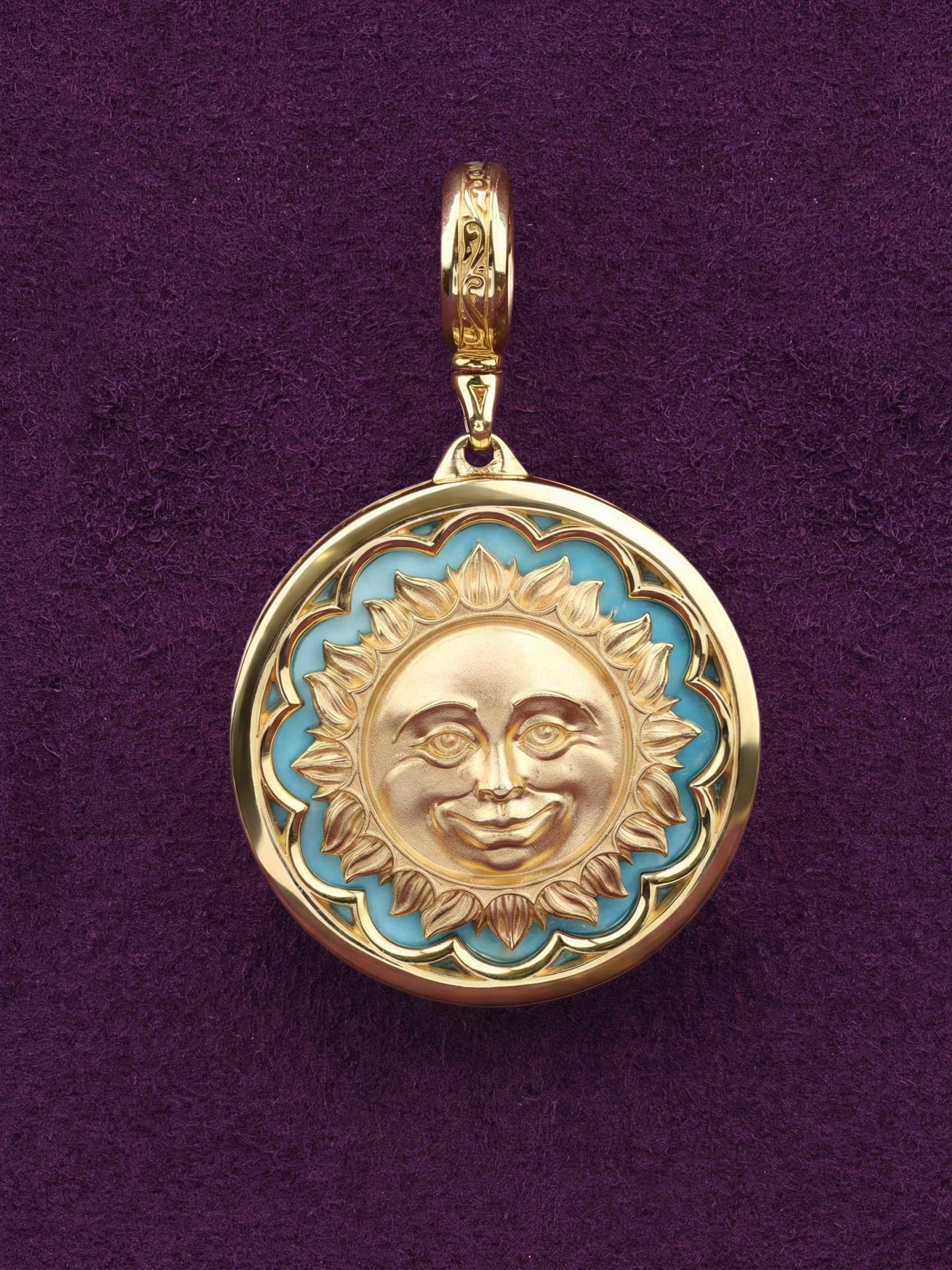 В качестве вставок в этой подвеске использованы натуральные камни глубоких оттенков — насыщенный синий лазурит и яркая бирюза. Всего изделие содержит 2 вставки круглой формы, которые контрастируют с благородным блеском металла, добавляя акцент таинственности и глубины. Лимонный оттенок золота придает украшению особую статусность и теплое сияние, подчеркивая высокое качество исполнения каждой детали.