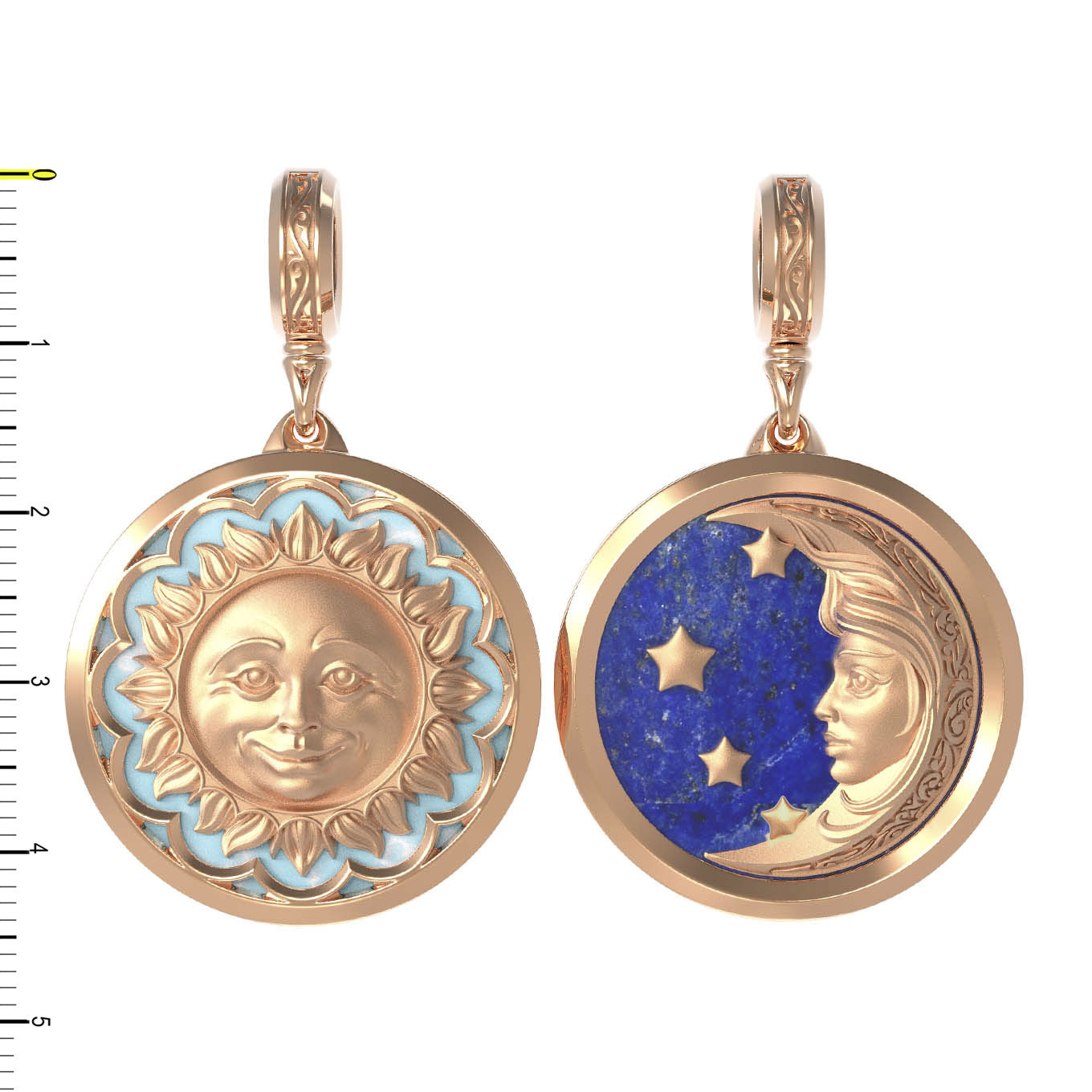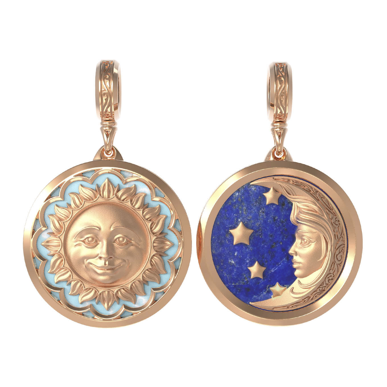 Подвеска из красного золота 585 пробы c бирюзой и лазуритом