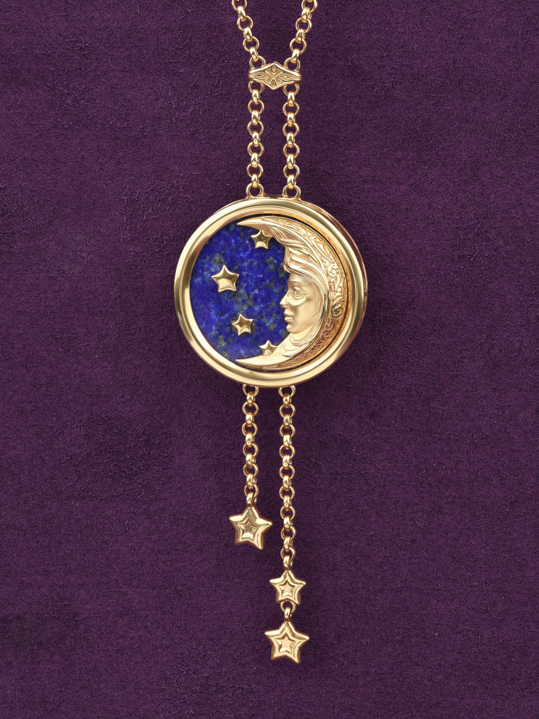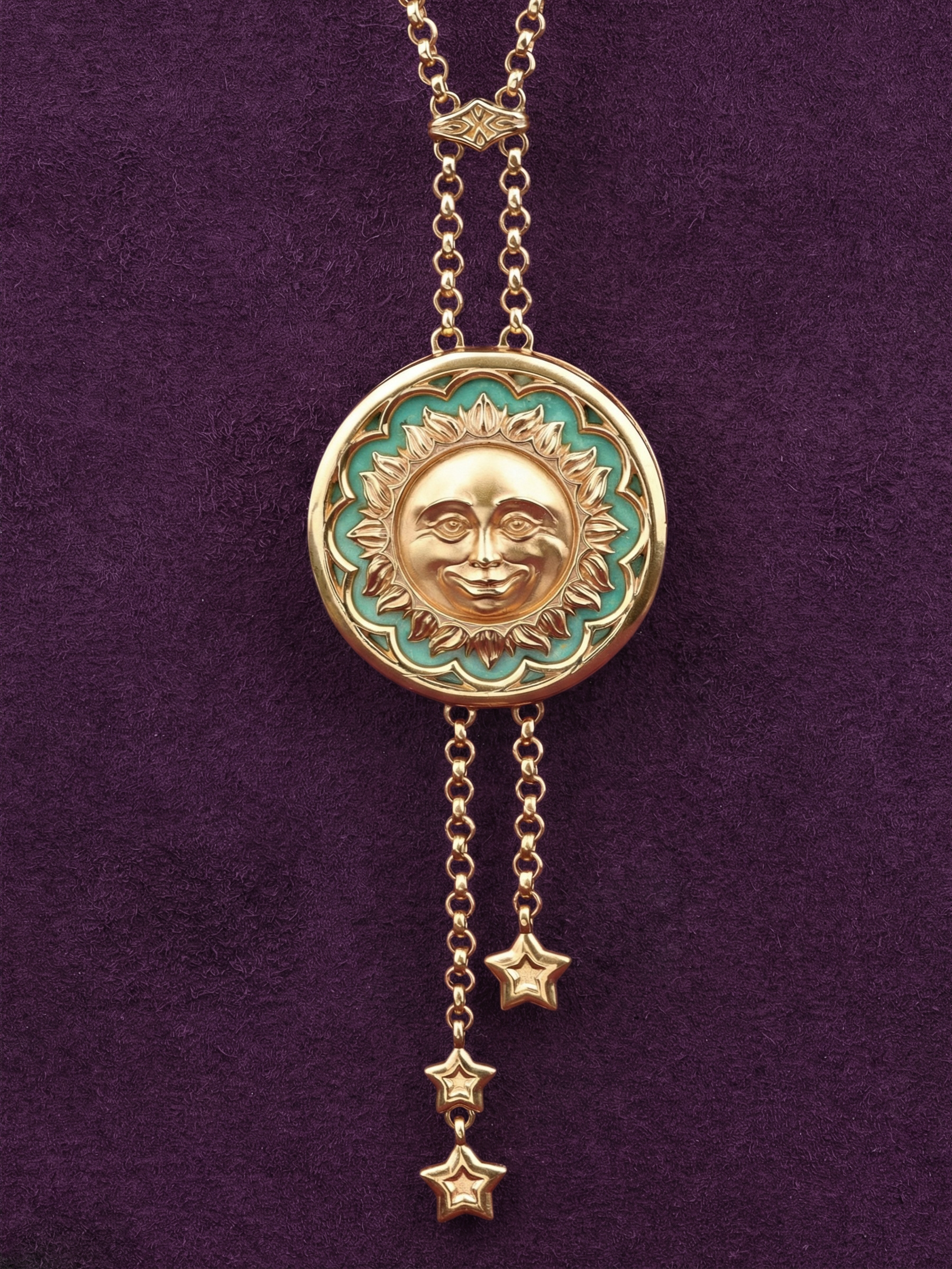 Особую художественную ценность представляет проработка деталей: инкрустация круглой формы и искусное исполнение звезд придают колье неповторимый шарм. Вставки из натуральных камней подчеркивают премиальный статус украшения, делая его идеальным выбором как для женщин, так и для мужчин, которые ценят индивидуальность и высокое ювелирное искусство. Изделие прекрасно смотрится самостоятельно, но также может стать частью гармоничного ансамбля в сочетании с другими украшениями, так как входит в серию изделий, предназначенных для формирования полноценных комплектов.