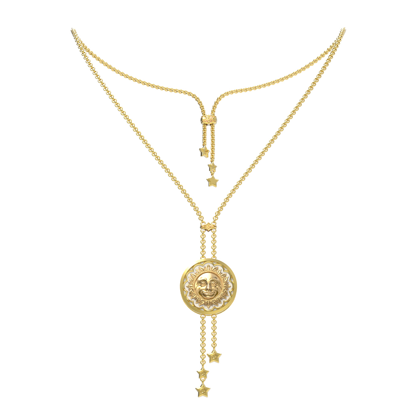 Колье из лимонного золота 585 пробы c ониксом и перламутром
