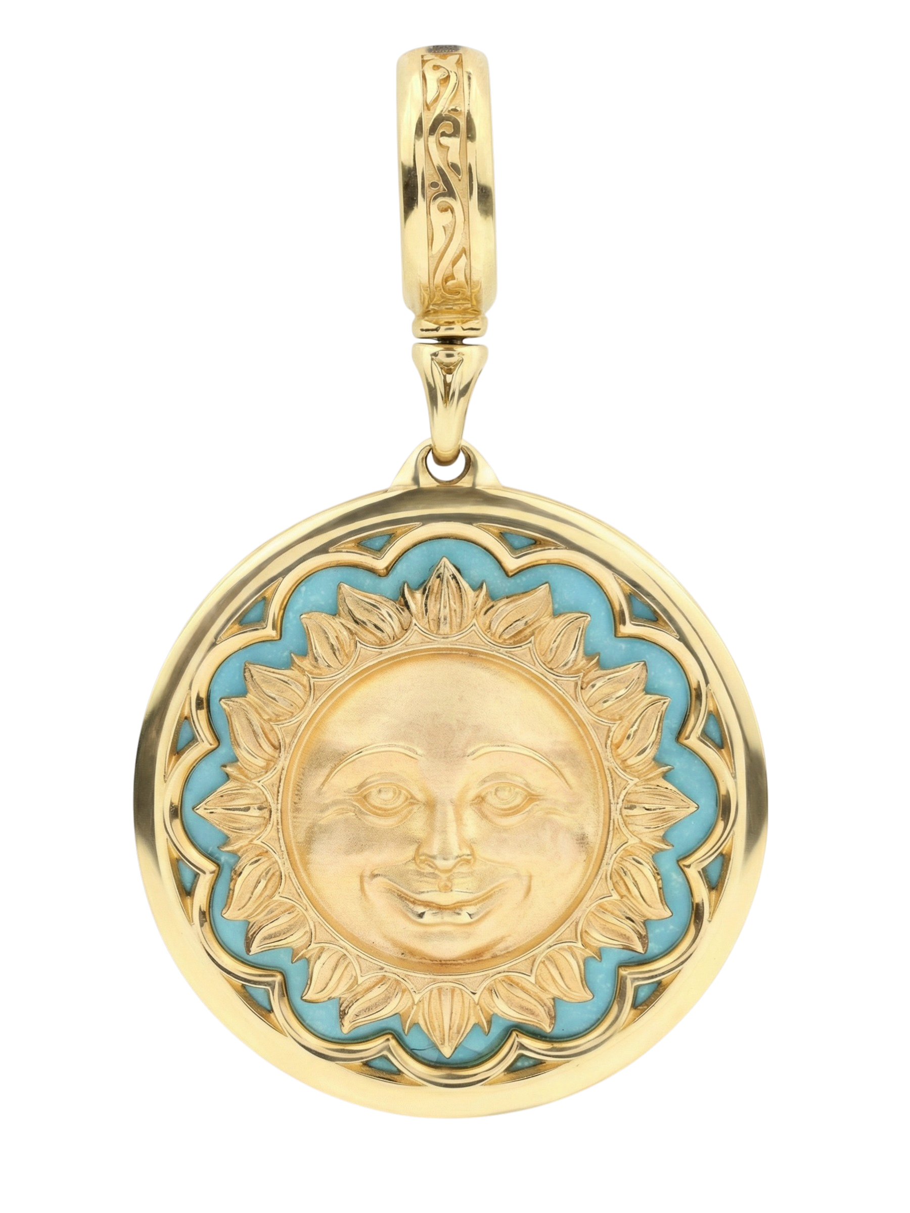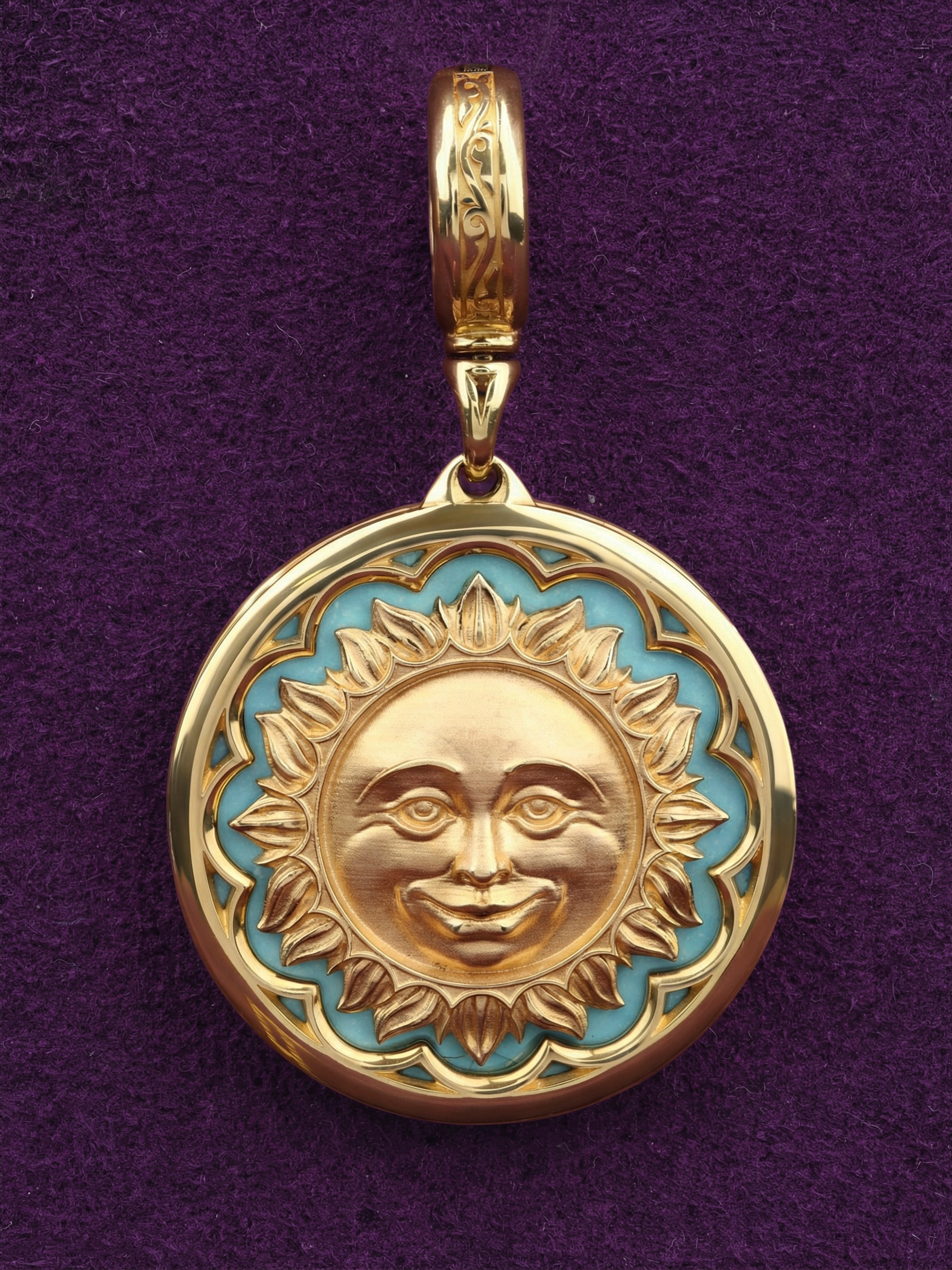 Изысканная подвеска из лимонного золота 585 пробы из коллекции De luxe Premium — День и ночь станет акцентным украшением вашего образа. Дизайн изделия объединяет в себе символику солнца и луны, создавая глубокий и притягательный визуальный образ. Центральным элементом украшения выступает одна вставка из бирюзы круглой формы, чей нежный бирюзовый цвет гармонично контрастирует с теплым оттенком лимонного золота. Такое сочетание материалов придает ювелирному изделию особую выразительность и благородство.