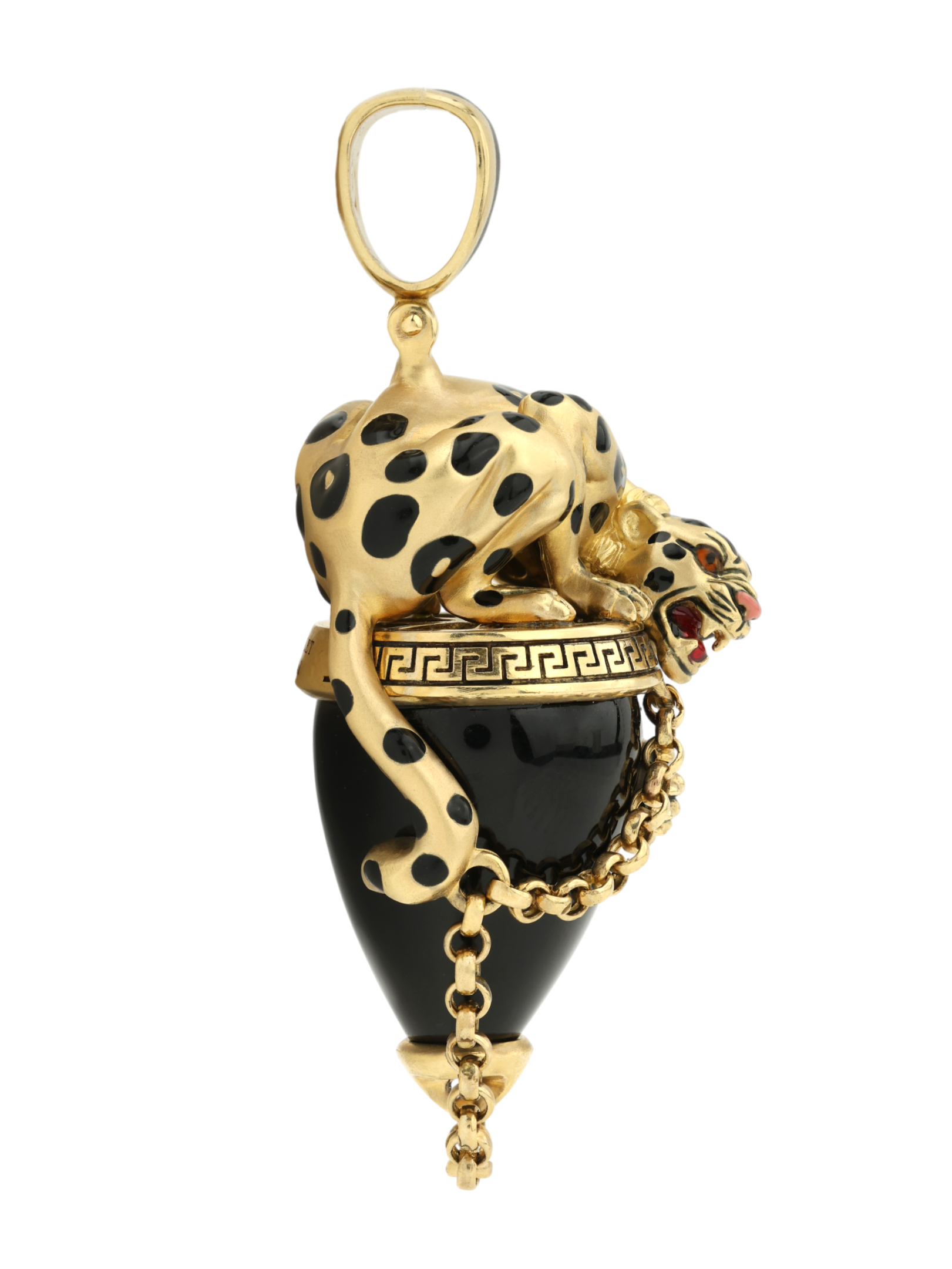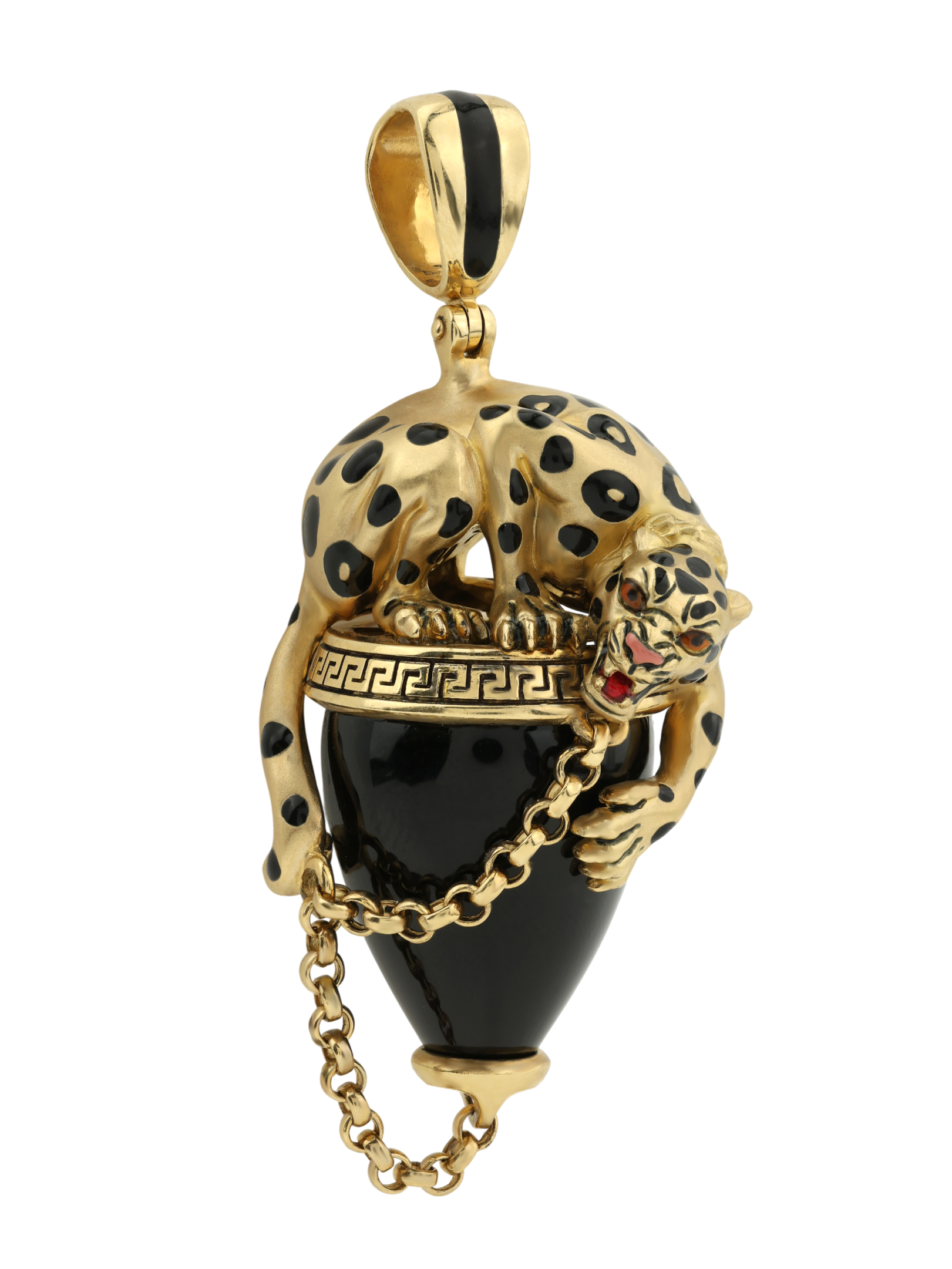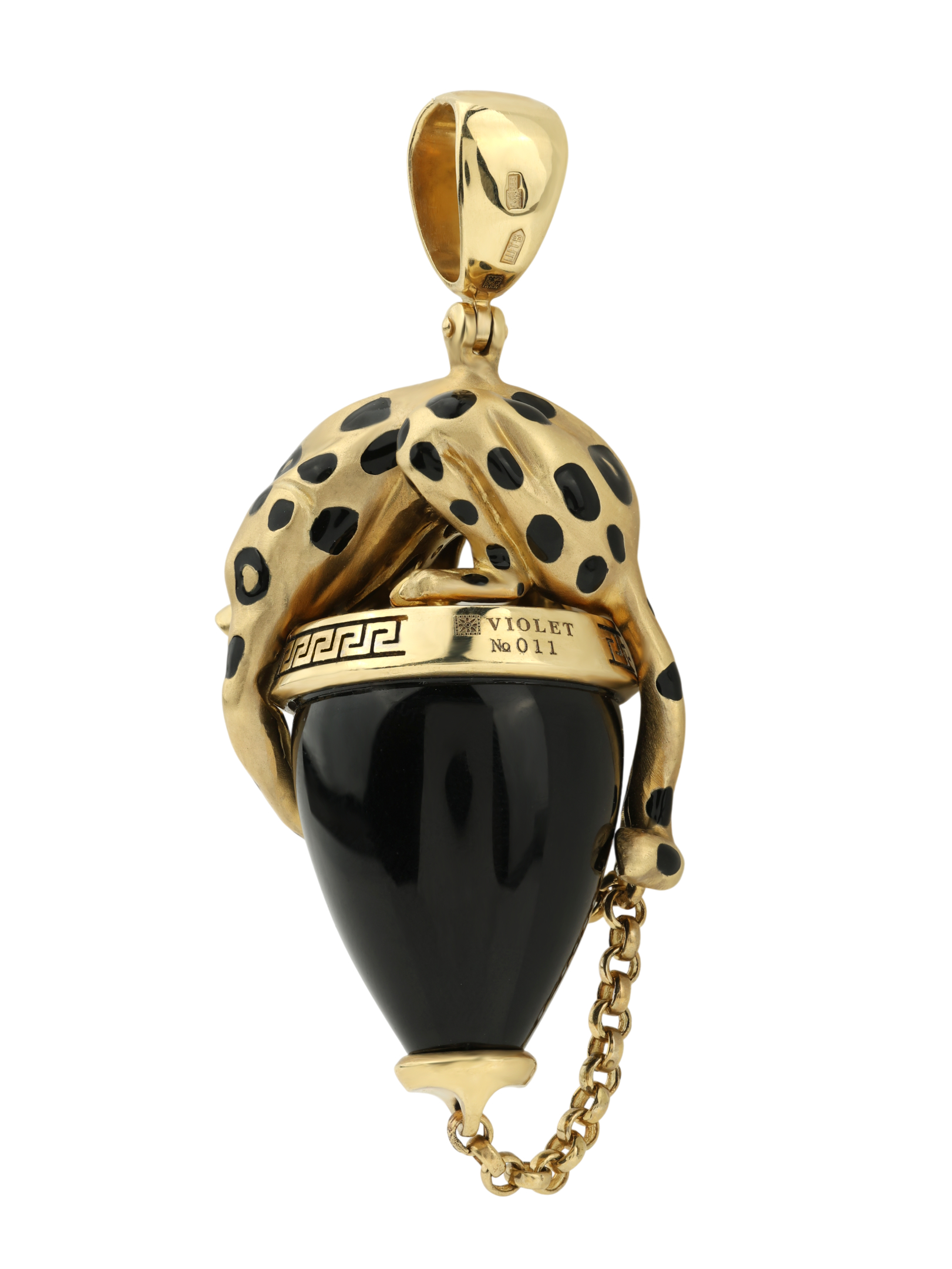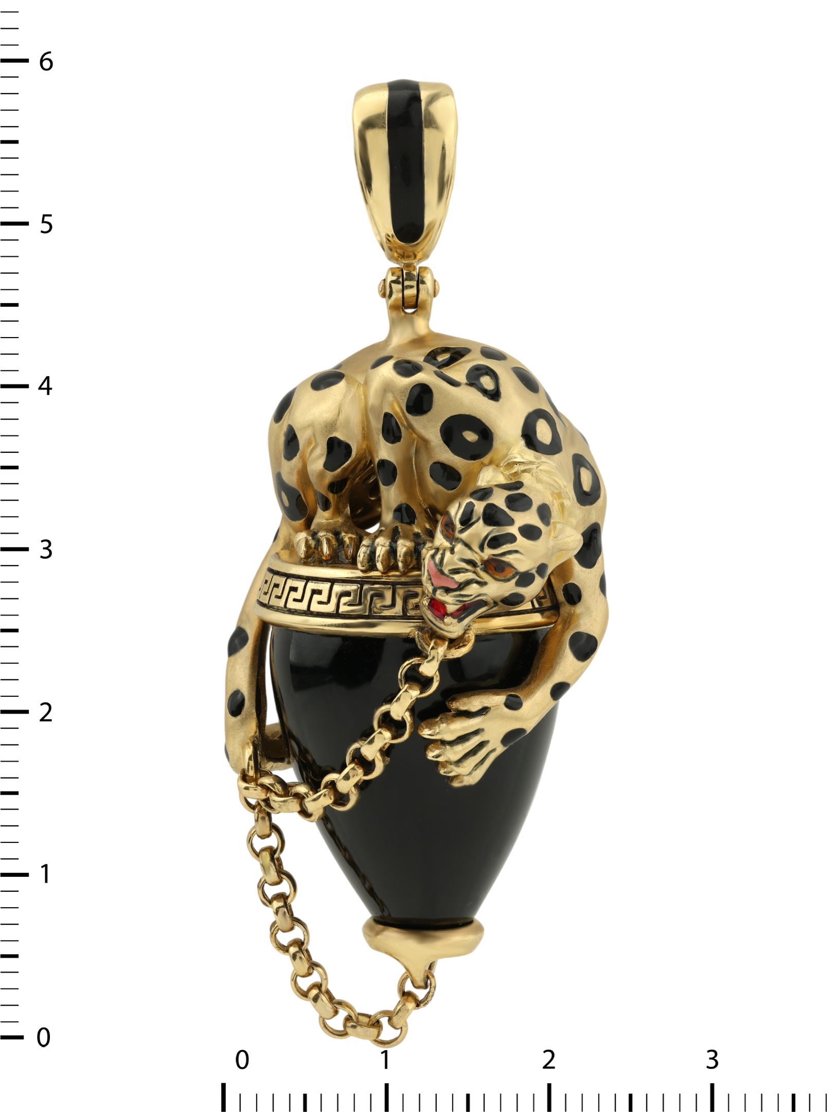 Особую художественную ценность изделию придает детальная проработка: пятнистый окрас хищника искусно передан с помощью ювелирной эмали, подчеркивающей природную красоту зверя. Сочетание лимонного золота с черными вставками и эмалевым декором делает эту подвеску акцентным аксессуаром, который добавит образу харизмы и статусности. Это украшение подойдет как для женщин, так и для мужчин, предпочитающих необычные и запоминающиеся ювелирные изделия.
