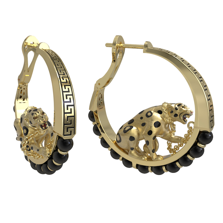 Серьги из лимонного золота 585 пробы c эмалью и ониксом