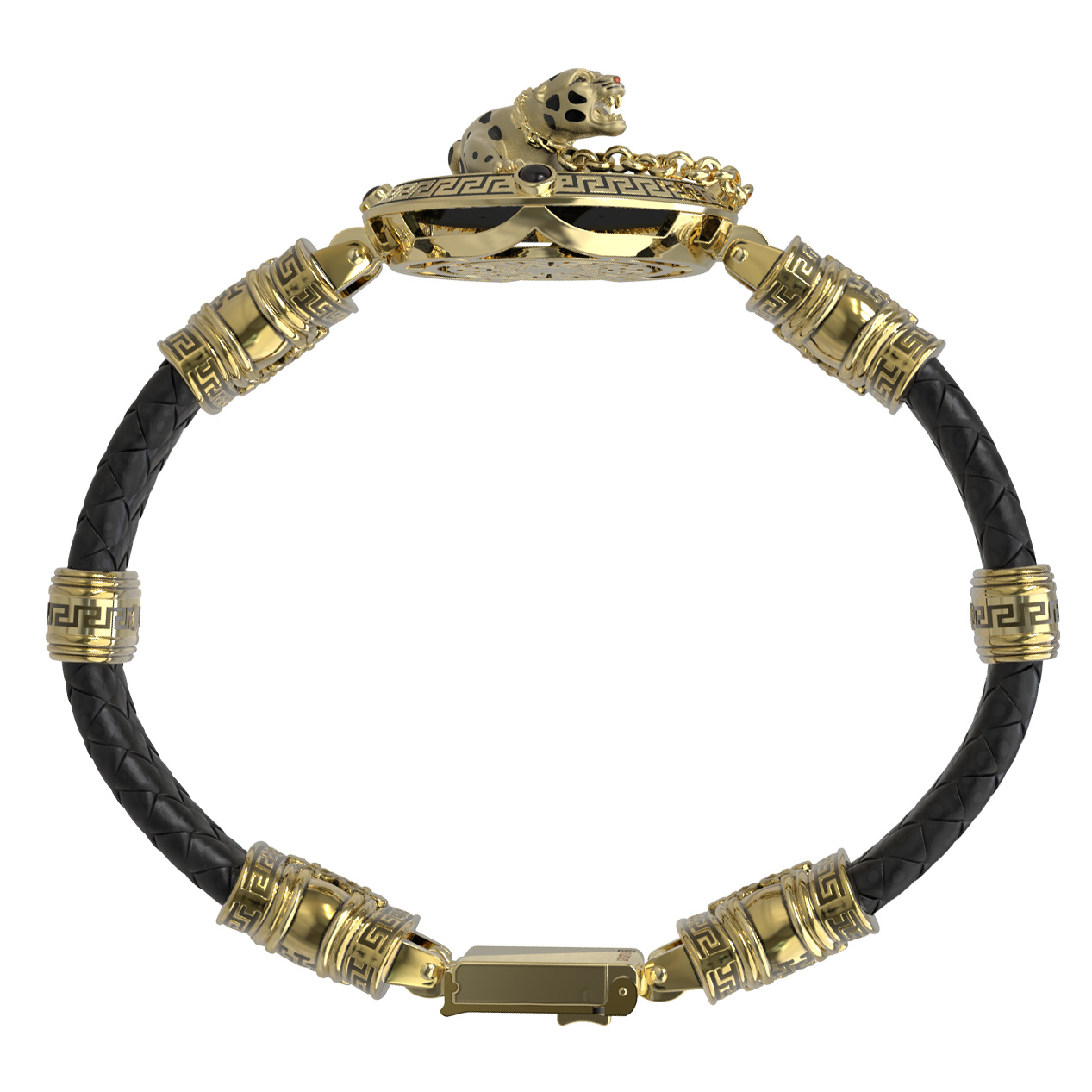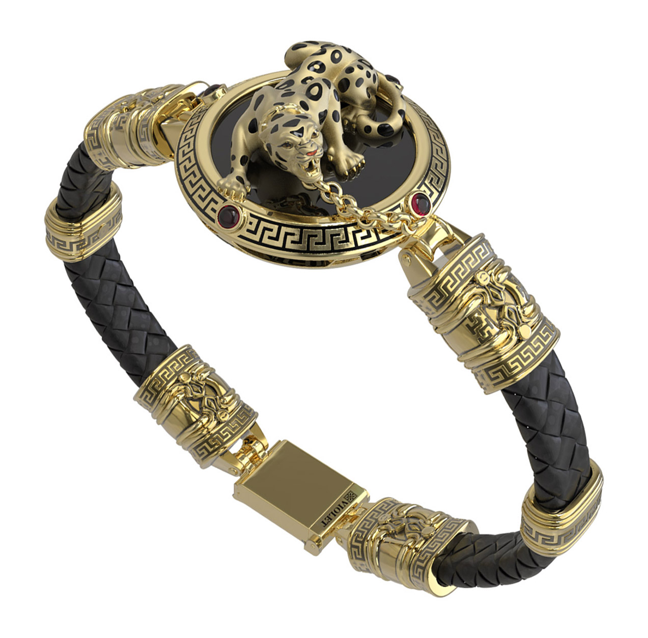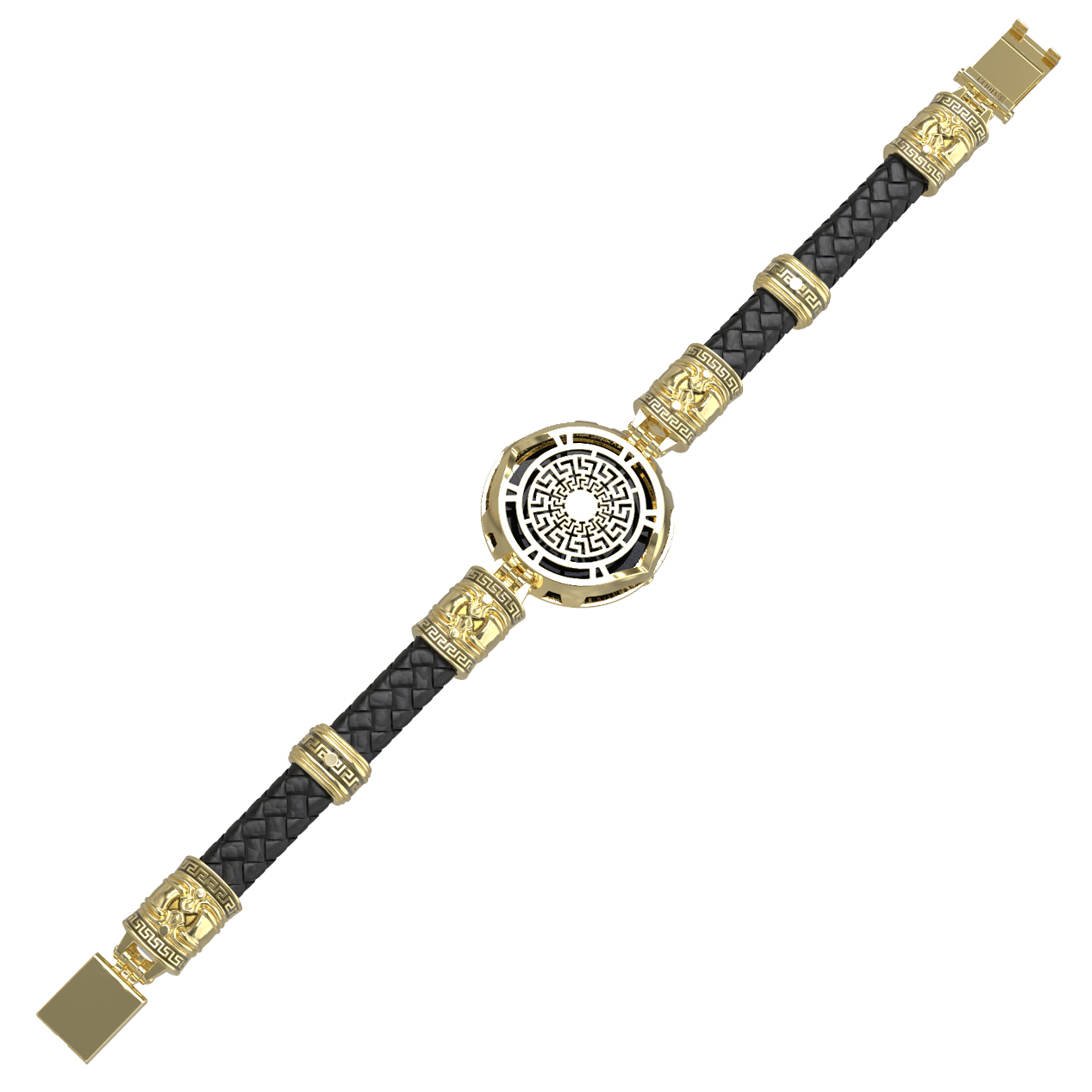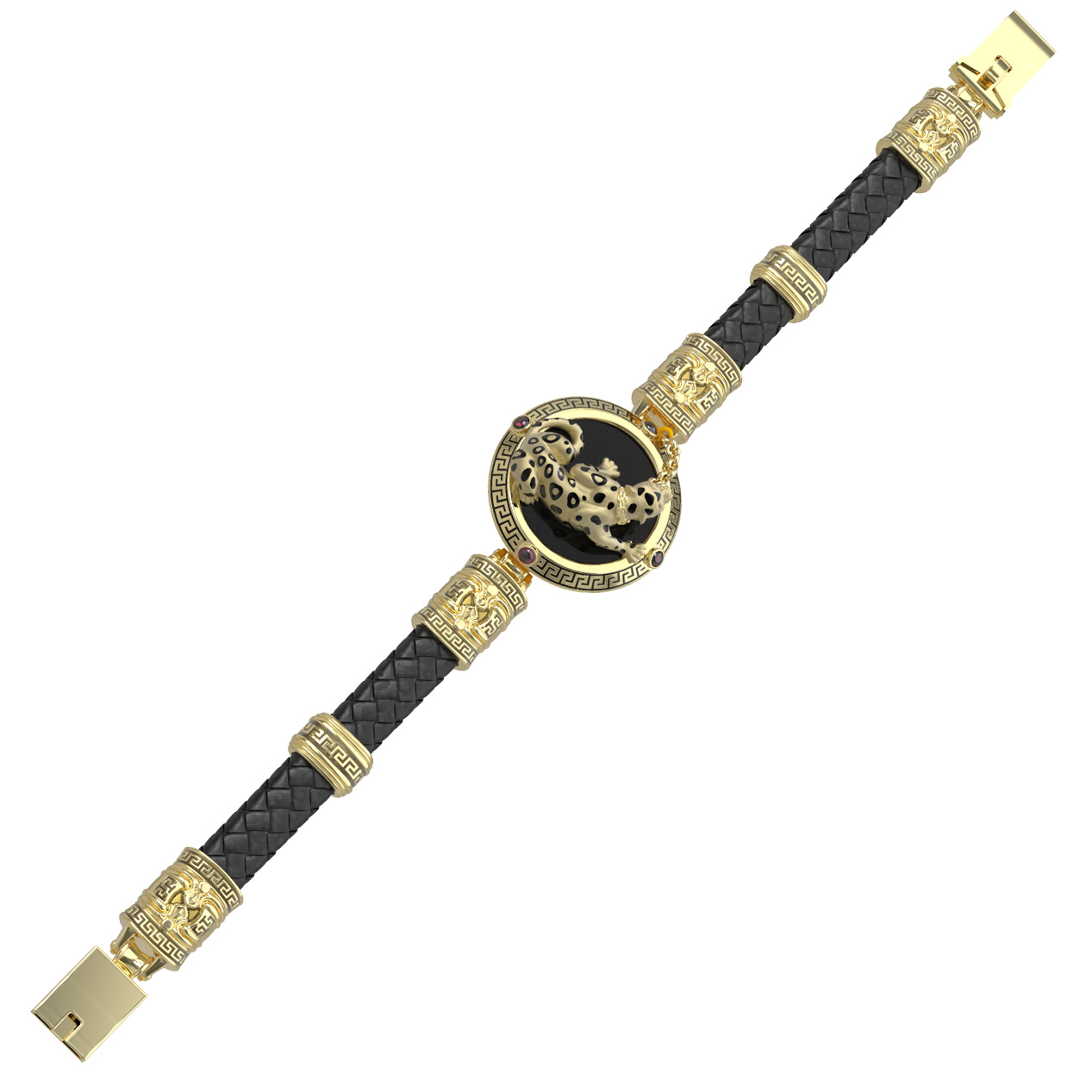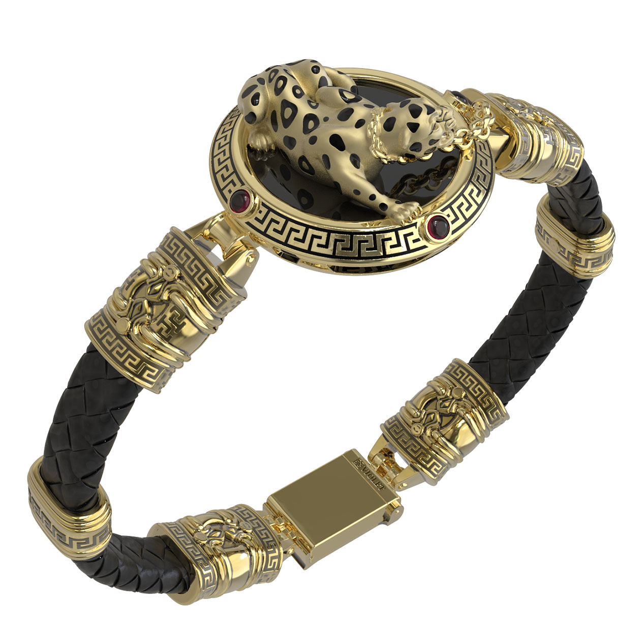 Браслет из лимонного золота 585 пробы c эмалью, шнурком, ониксом и рубином